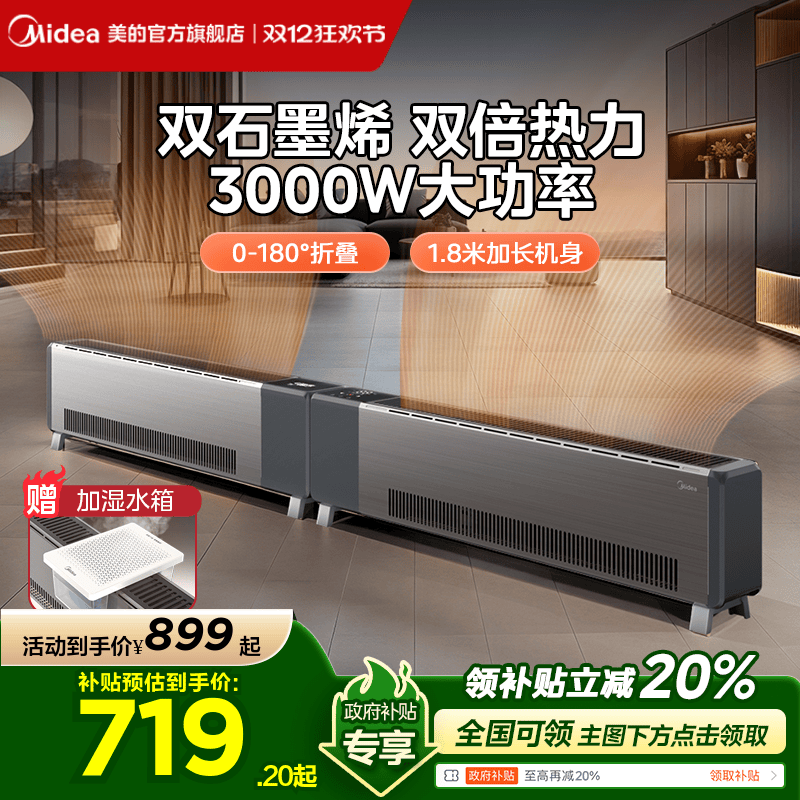 Midea 2024 Новый плинтус графен Ультра -двойной двойной
