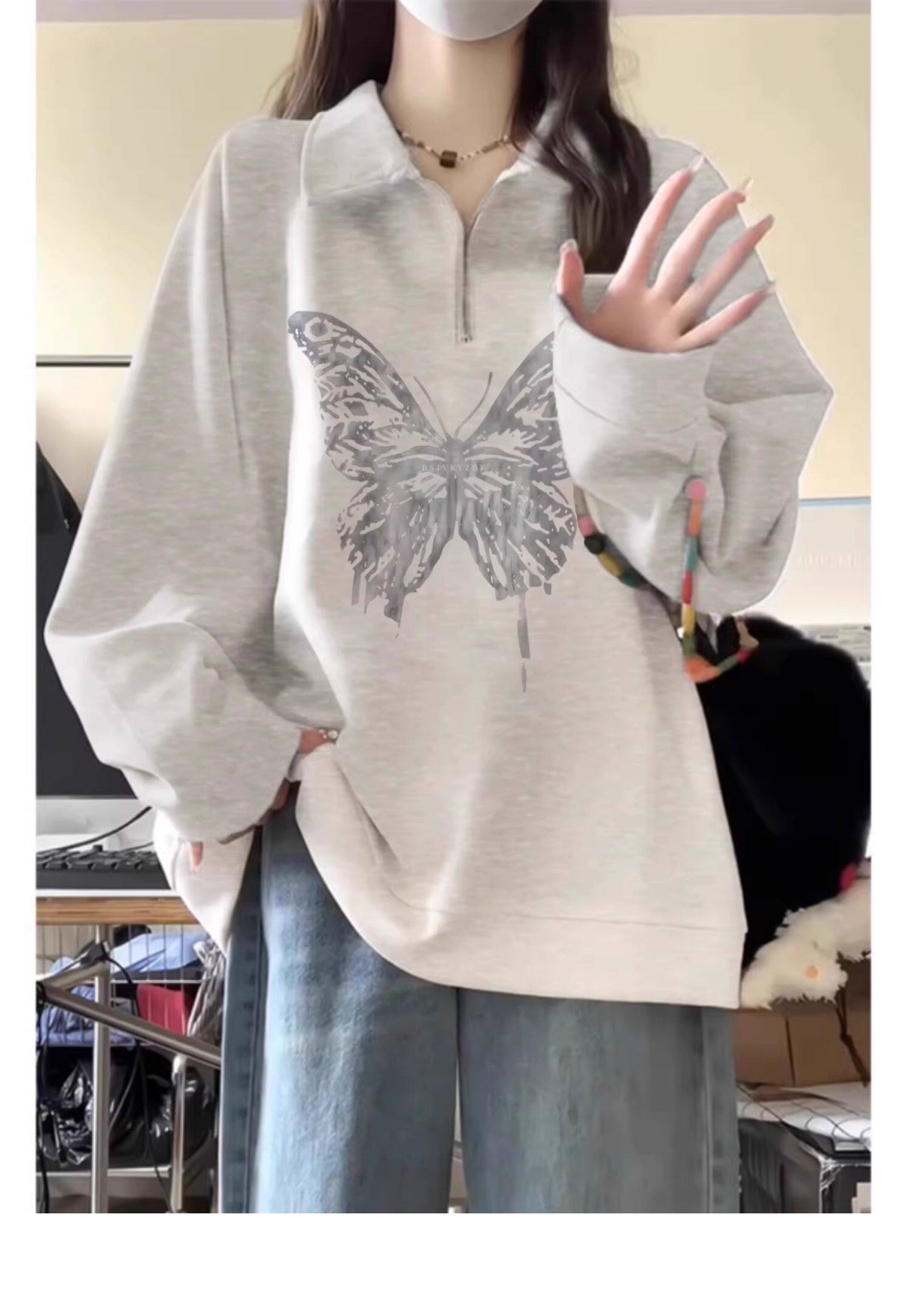 Осенняя толстовка с молнией, куртка, демисезонное термобелье, в американском стиле, на молнии, большой размер, свободный крой, воротник поло