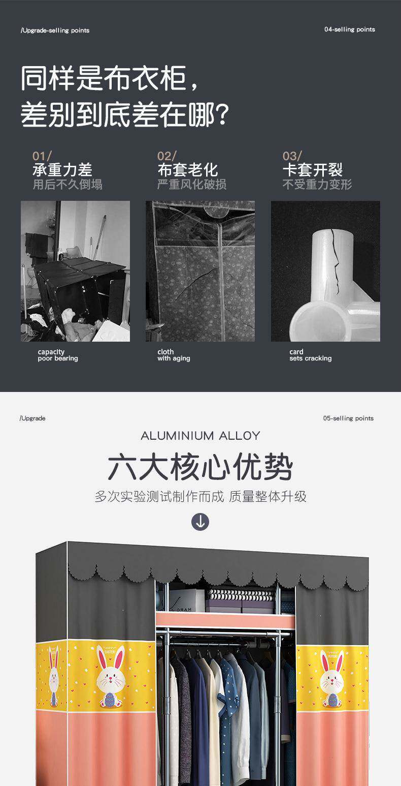 Простая гардеробная спальня Современная простота и экономика тканевая гардеробная стальная труба и грубый дом проката гардероба для хранения