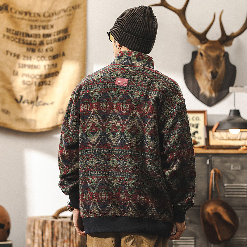 Этнический шерстяной свитер, демисезонный кардиган, демисезонная ретро куртка, этнический стиль, увеличенная толщина, большой размер