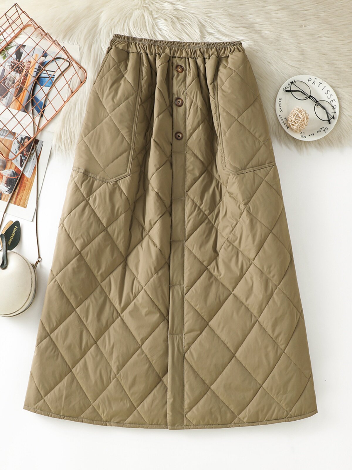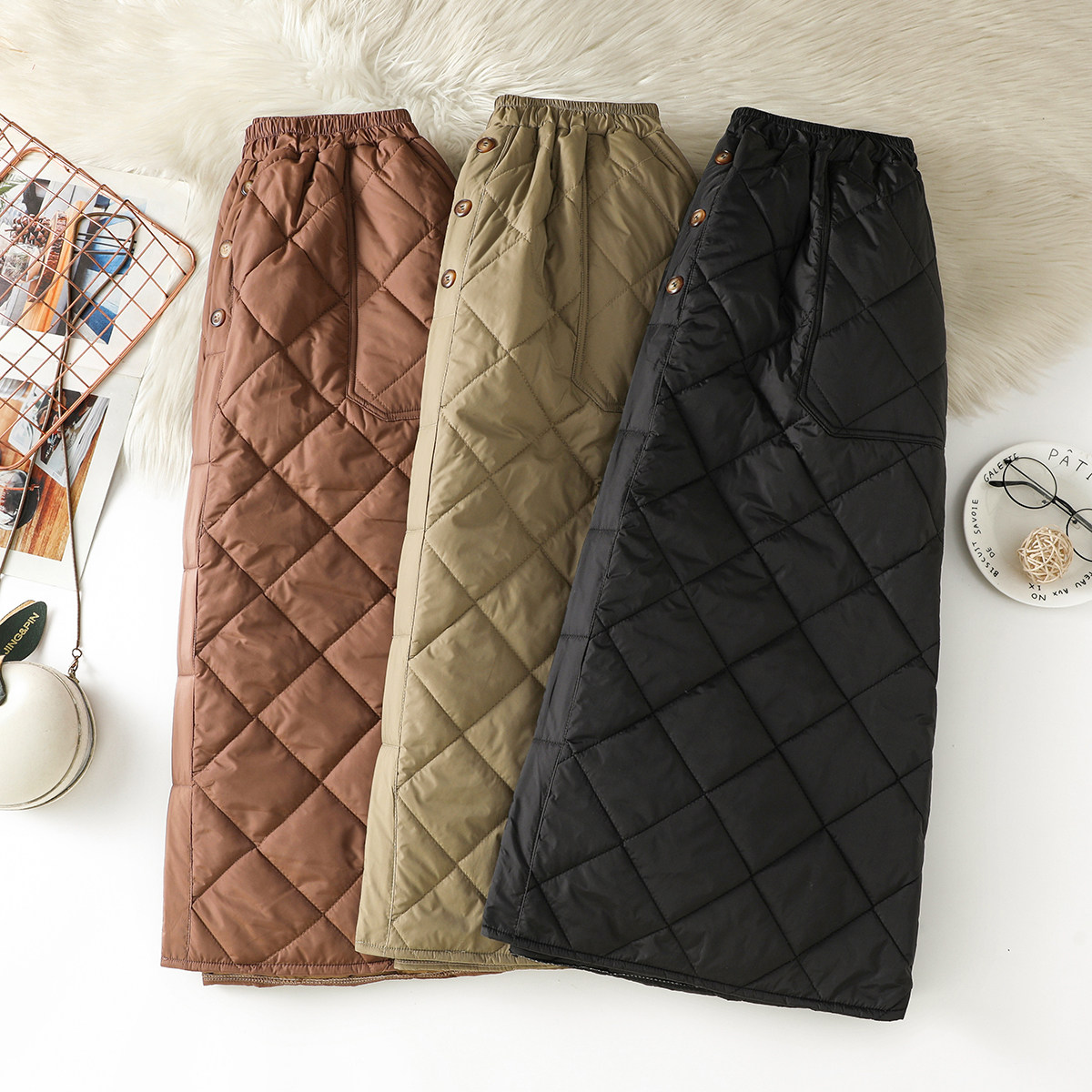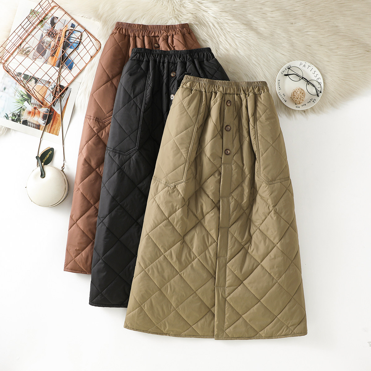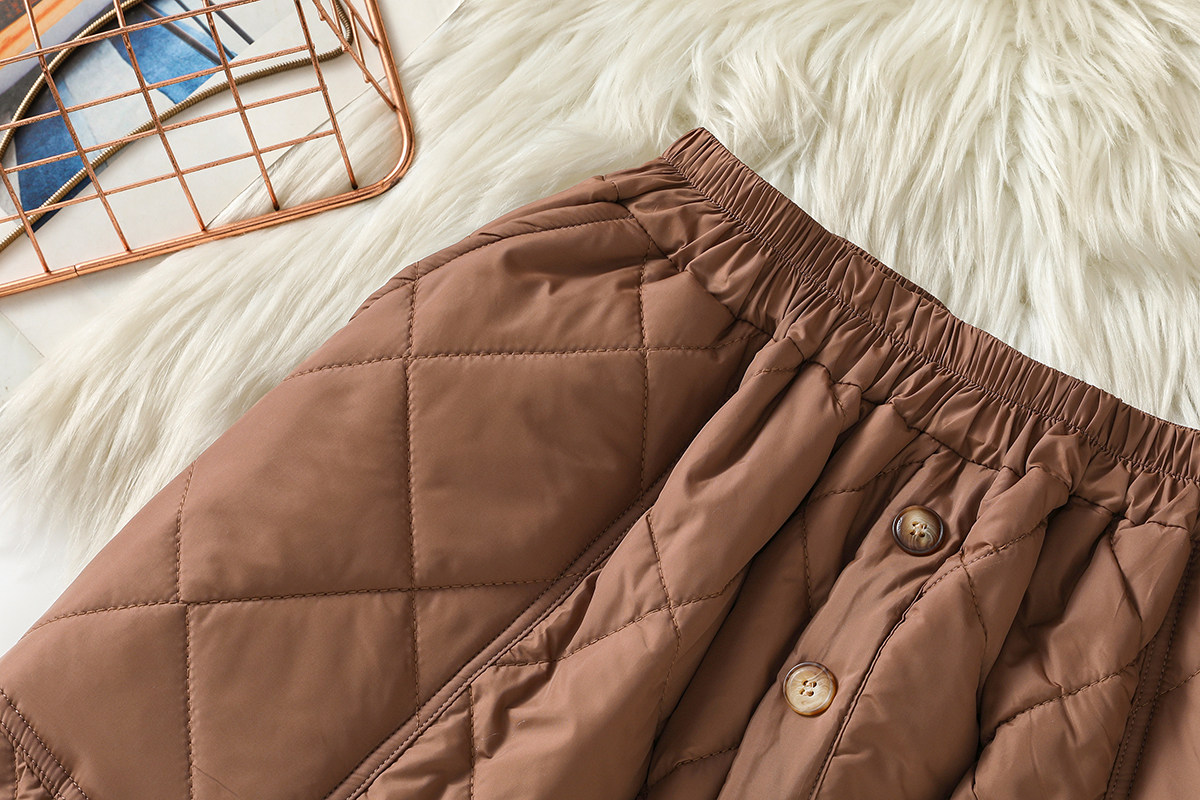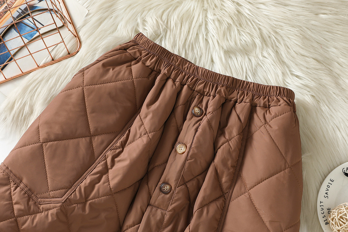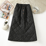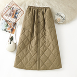 Модная стеганая юбка с ромбовидным узором, ветрозащитный удерживающий тепло длинный пуховик, увеличенная толщина, А-силуэт, свободный прямой крой