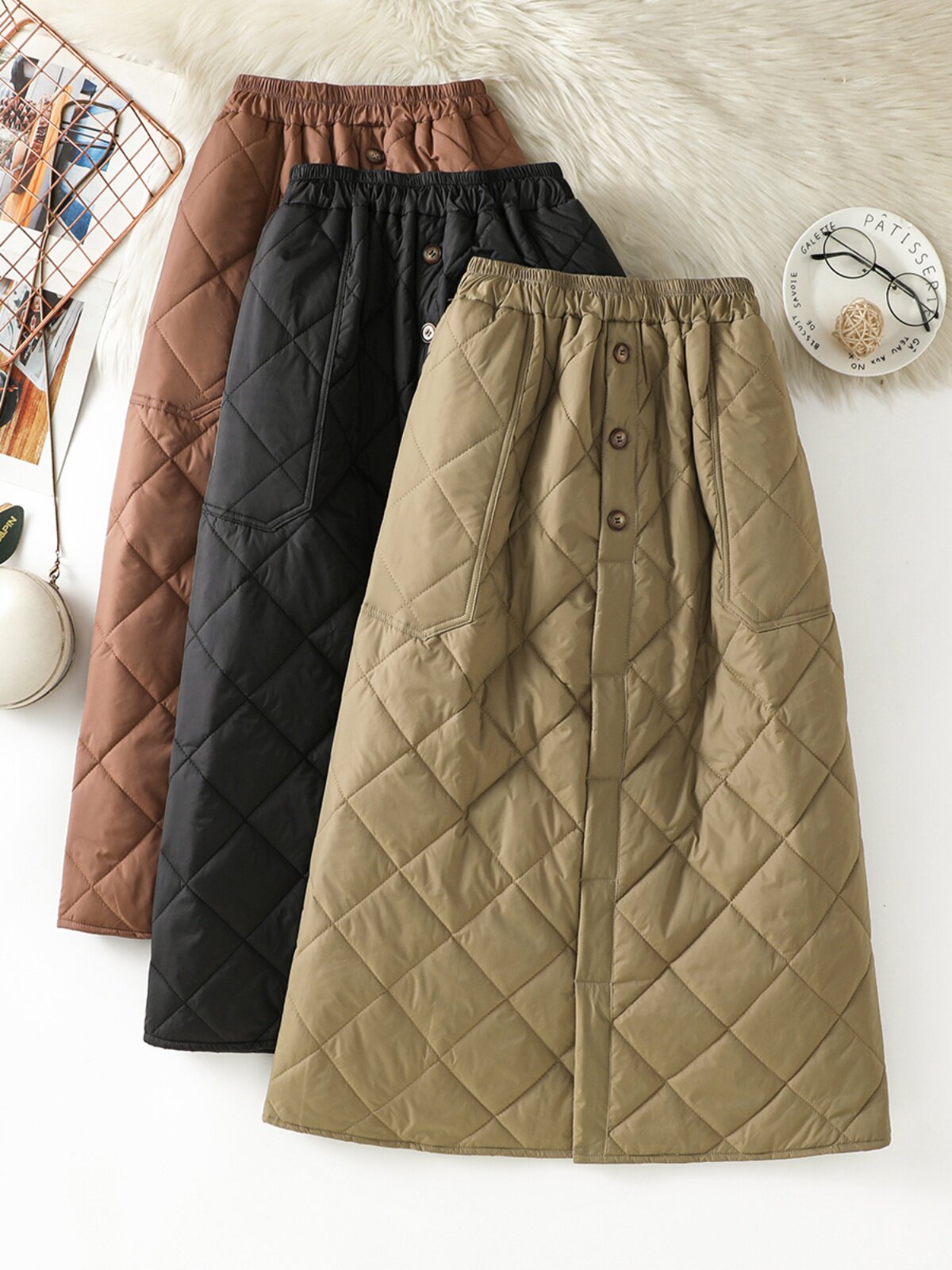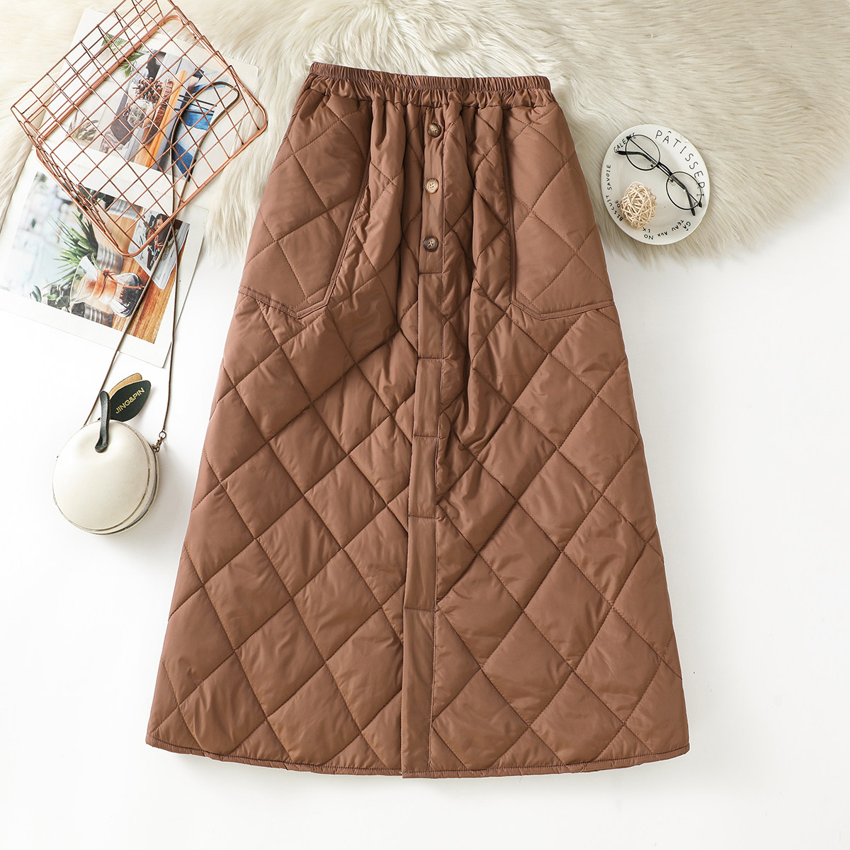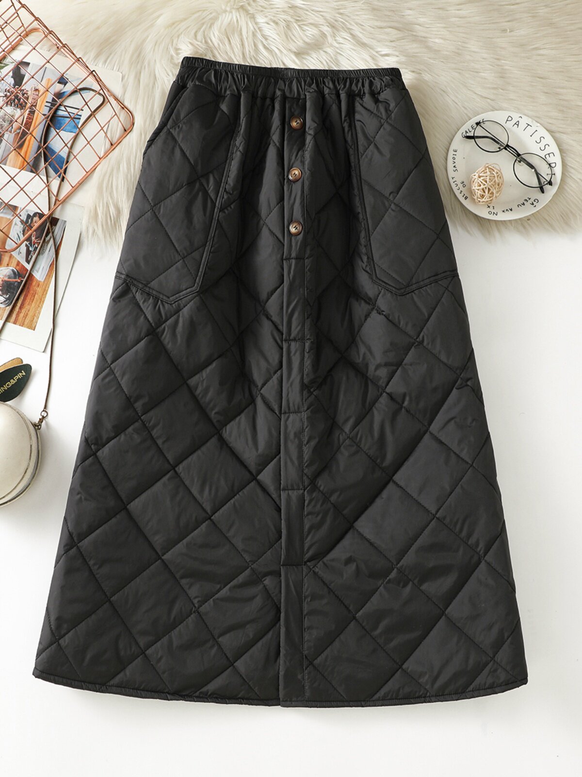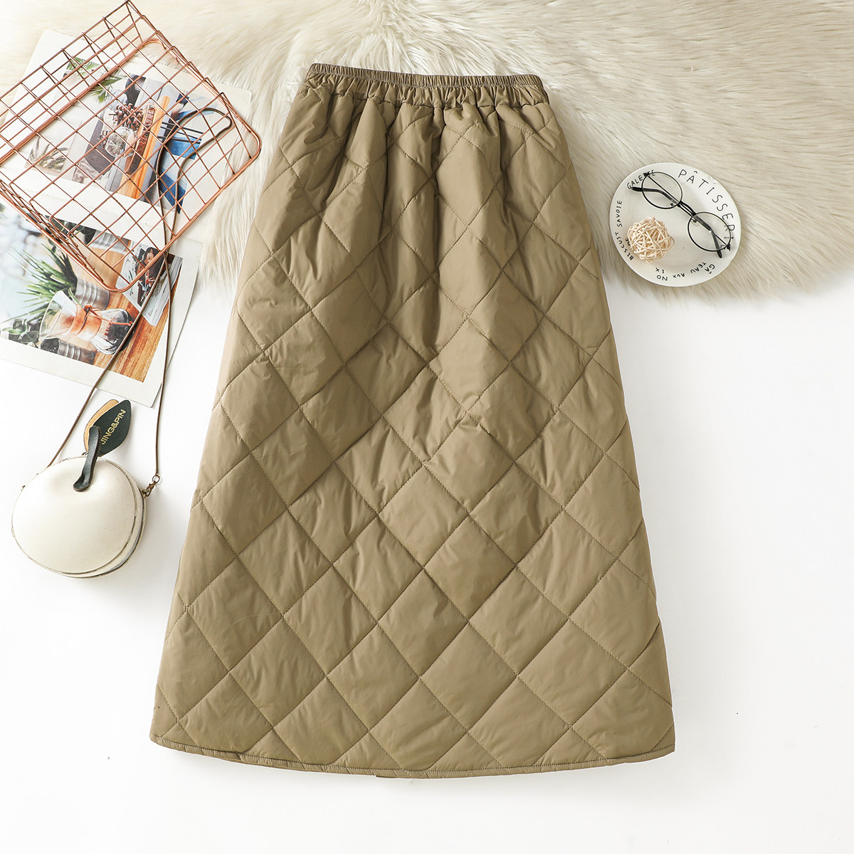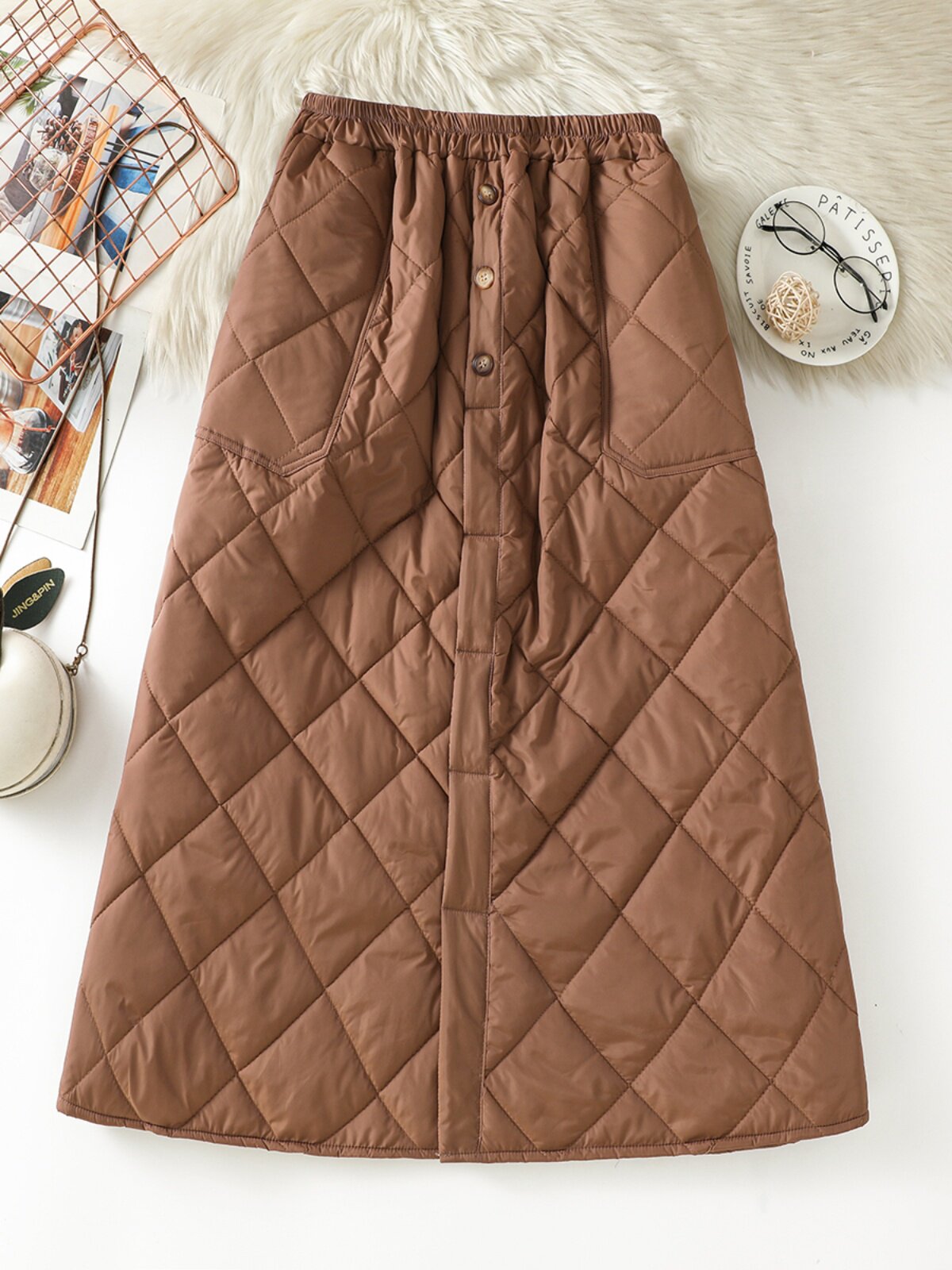Модная стеганая юбка с ромбовидным узором, ветрозащитный удерживающий тепло длинный пуховик, увеличенная толщина, А-силуэт, свободный прямой крой