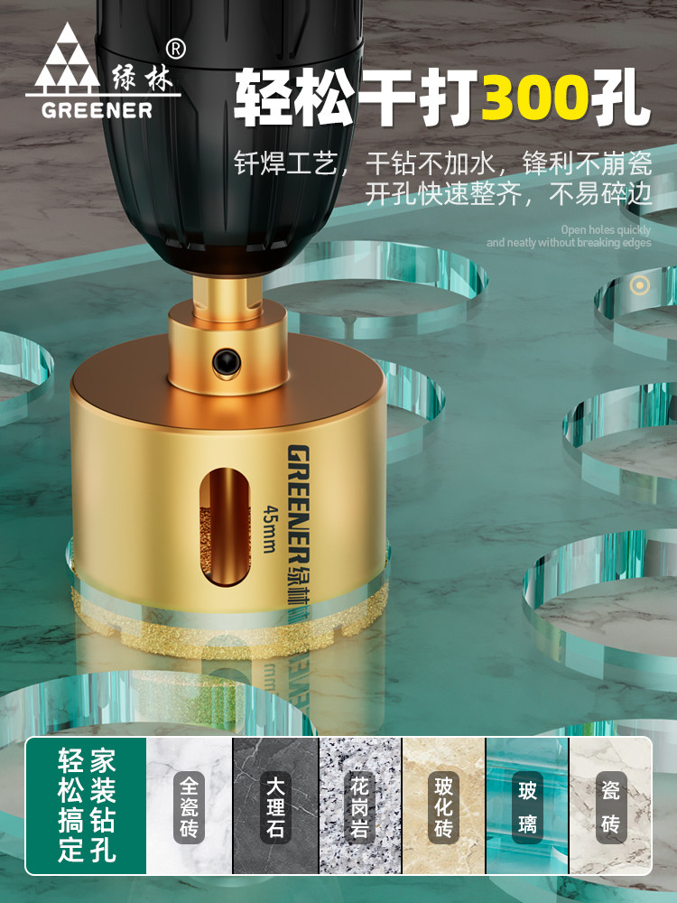 Зеленое лесное стекло позиционирование отверстия. Керамическая плитка сверло бит специальное бурение