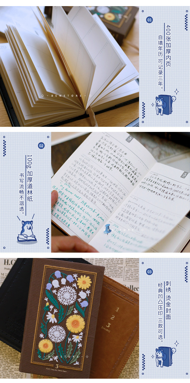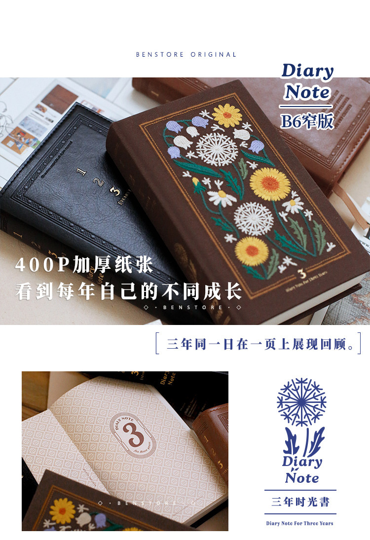 Книга книг для многих вещей в 2025 году Трехлетняя книга, 3-летняя дневник, Руководство по росту B6, Обложка Древняя вышивка Руководство
