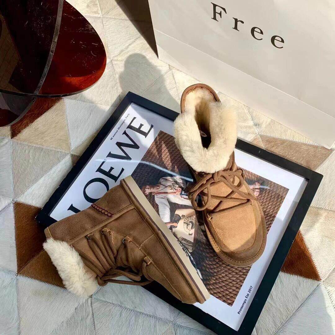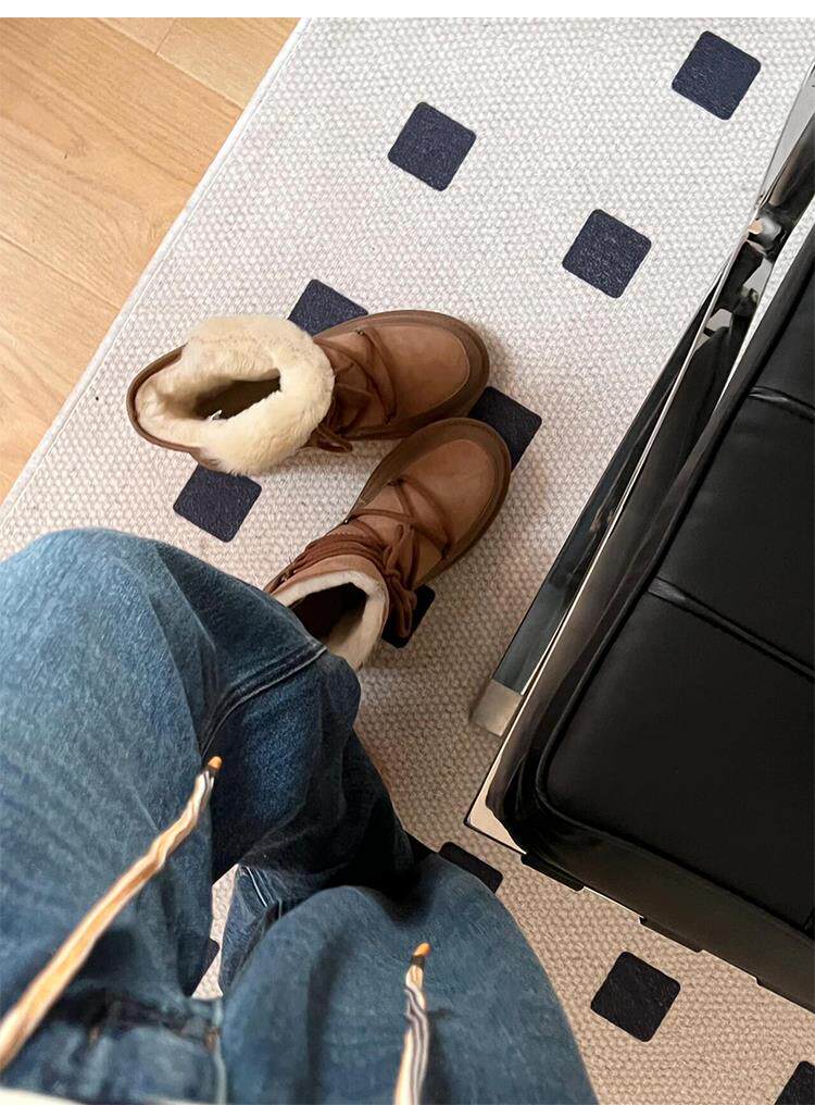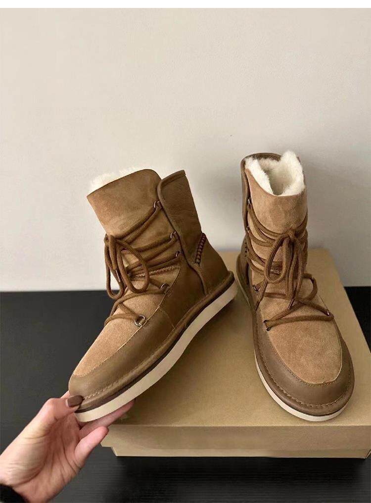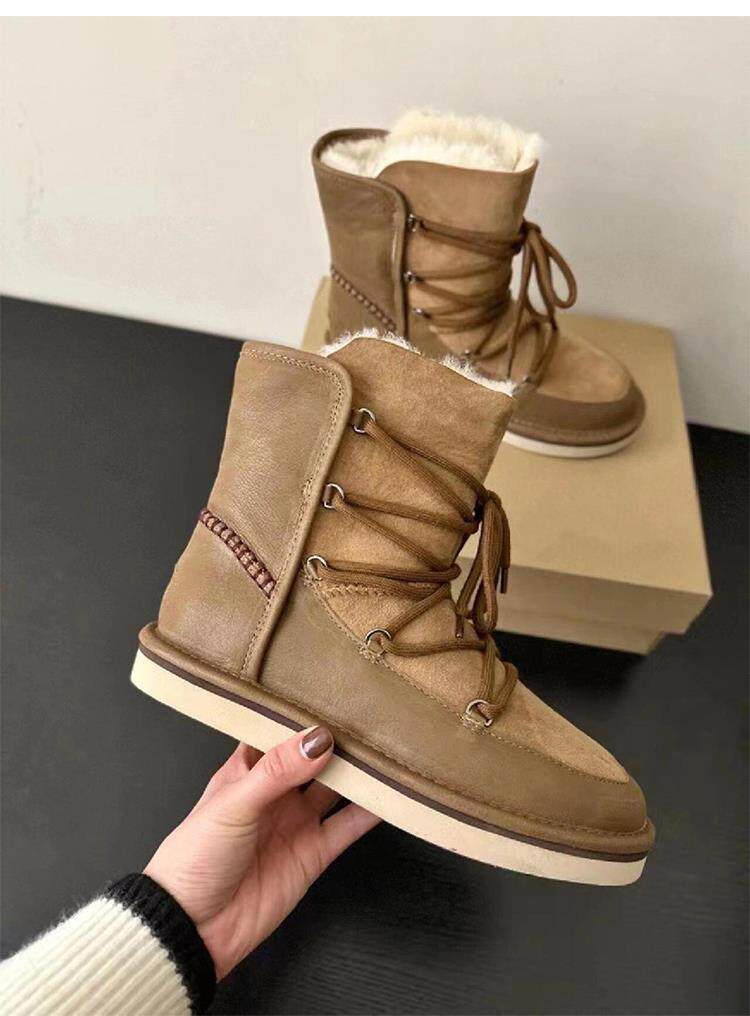 Версия из воловьей кожи ~ классические женские зимние ботинки до середины икры, женские универсальные нескользящие нескользящие северо-восточные теплые хлопковые ботинки и хлопчатобумажные туфли.