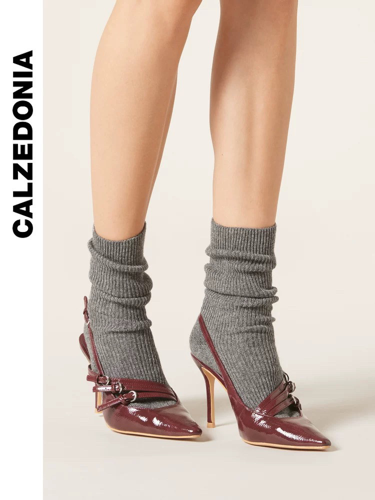 Женские кашемировые носки Calzedonia, 24 зимних тонких полоски из темной блестящей овечьей шерсти, теплые ворсовые носки dc0546