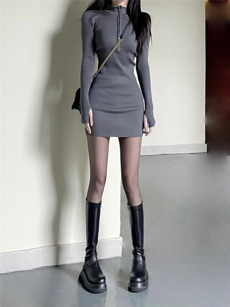 Черный лонгслив, демисезонное платье, французский стиль, изысканный стиль, городской стиль, с акцентом на бедрах
