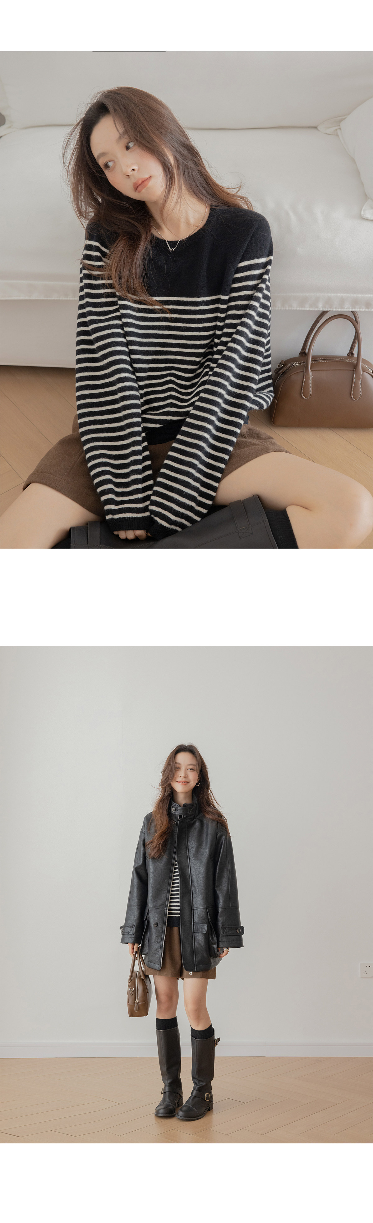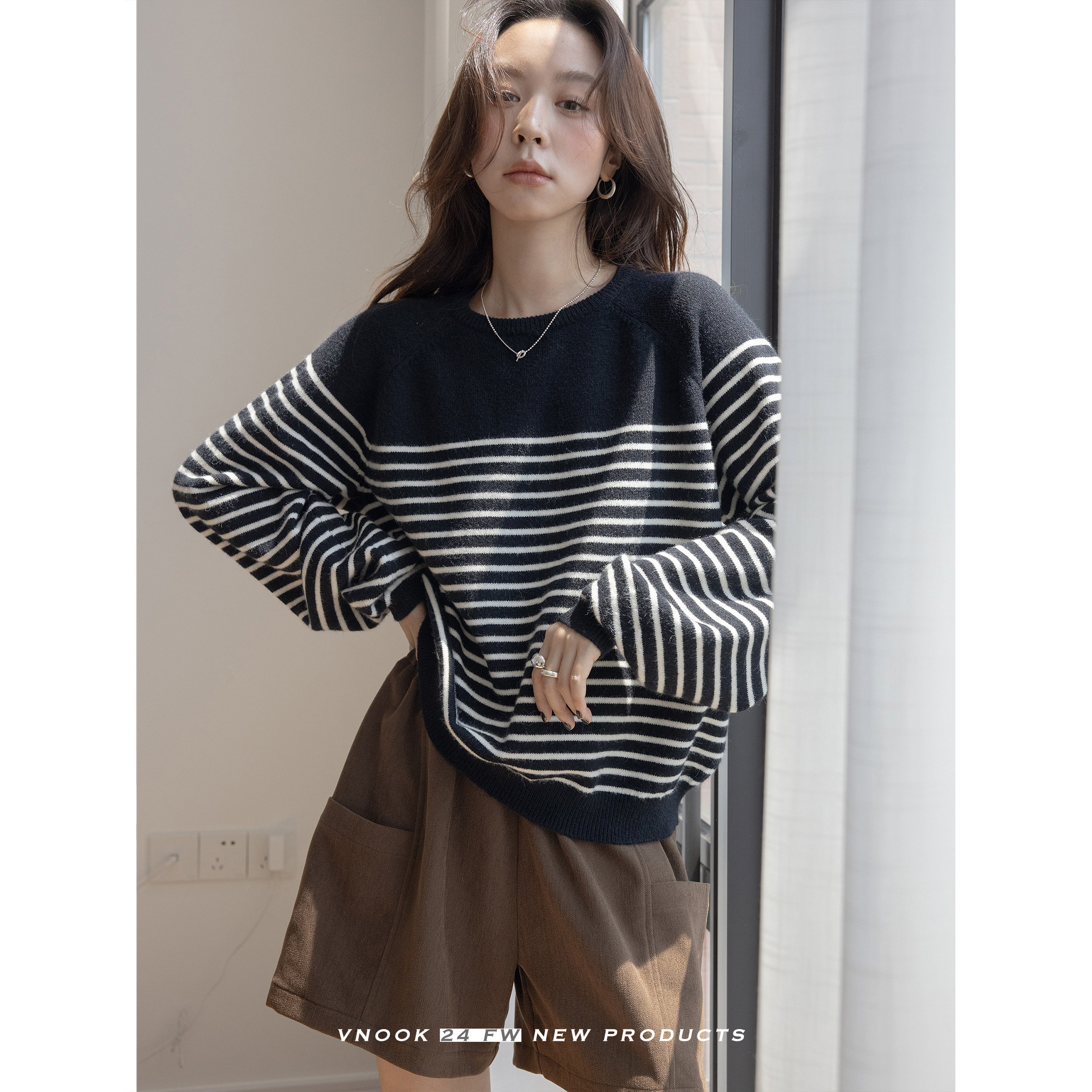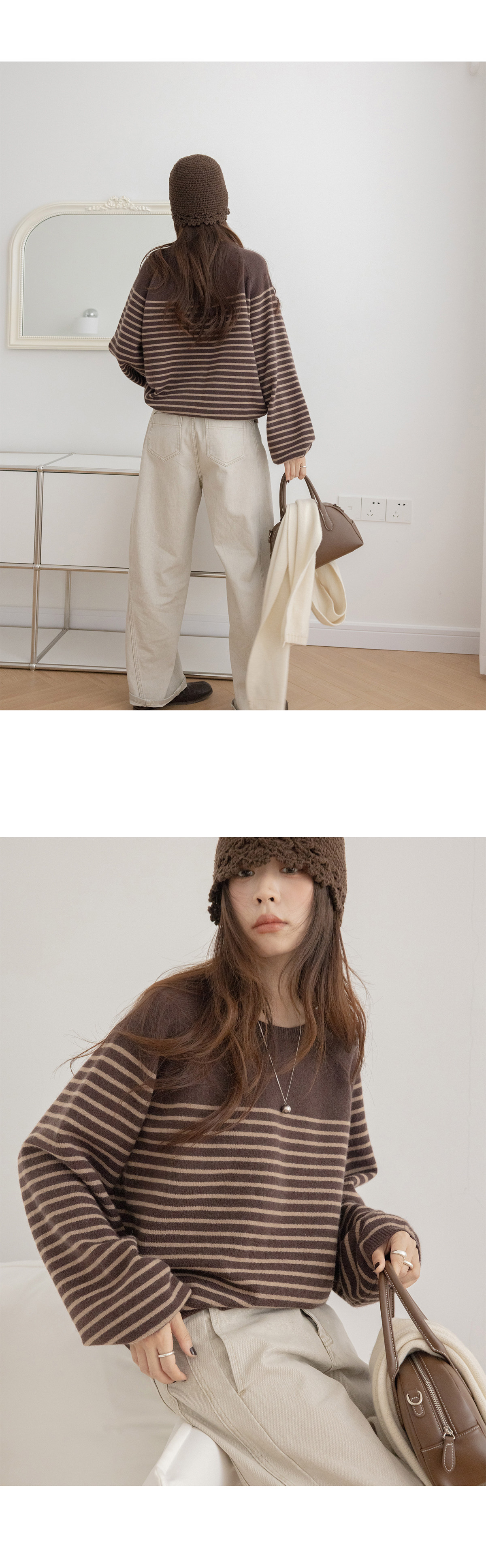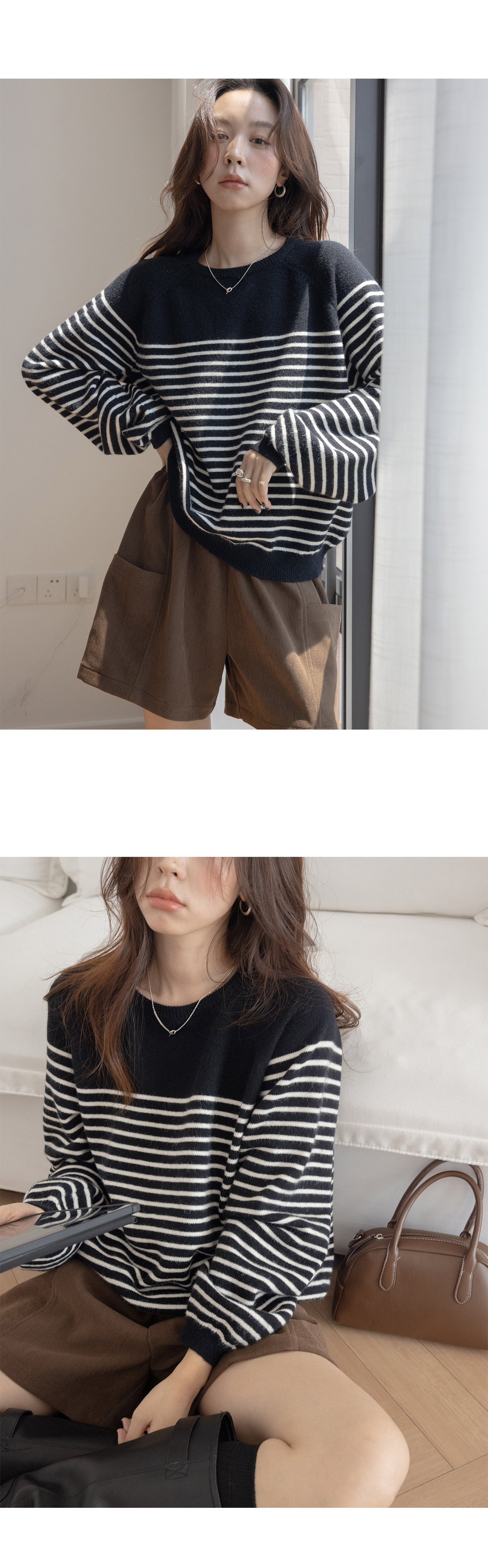 Трикотажный демисезонный свитер с круглым воротником, оверсайз, изысканный стиль