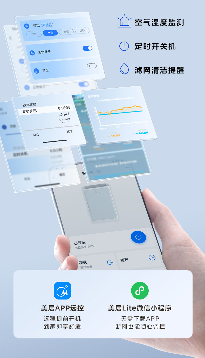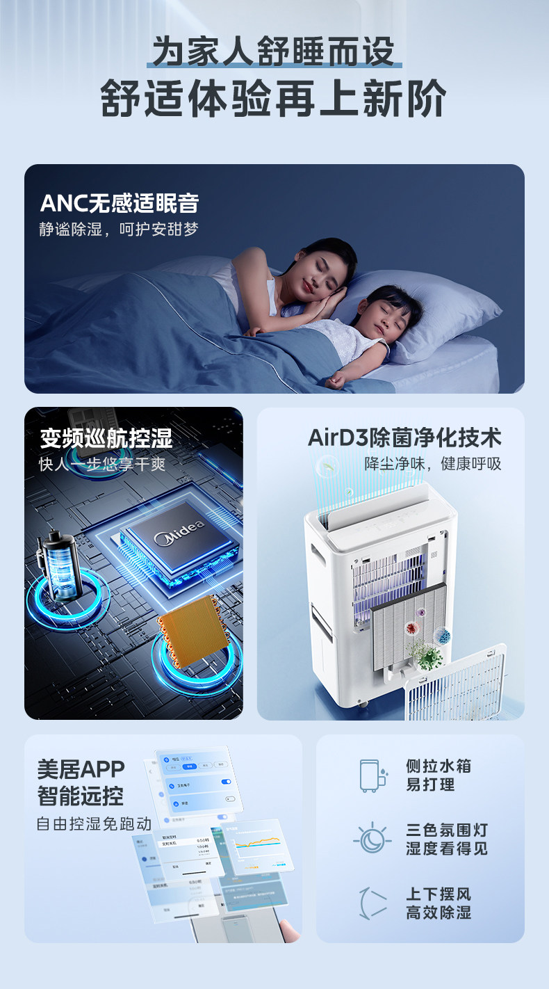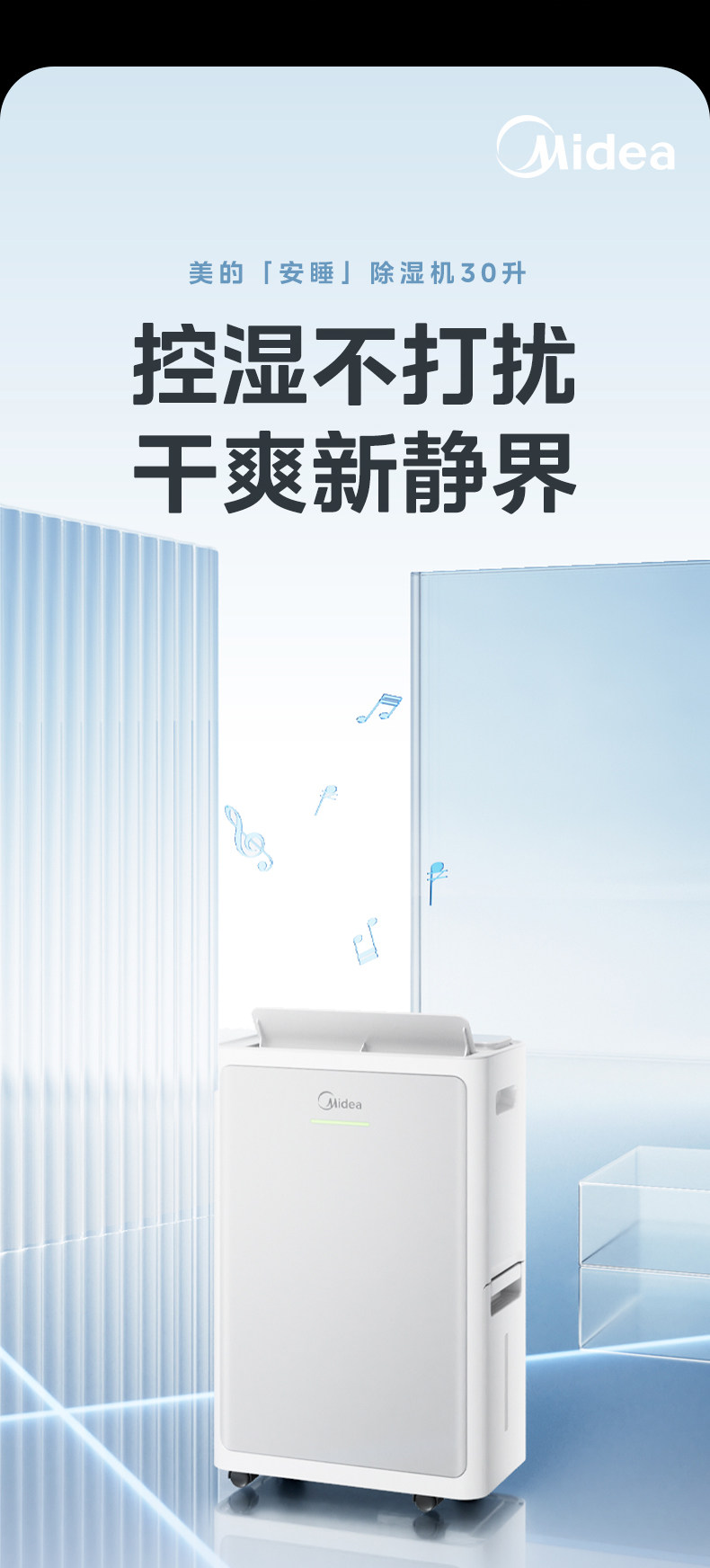 Осушитель Midea для сна, преобразователь частоты, свет, звук, 30 л, осушитель, очиститель воздуха, осушитель «два в одном», 30DI