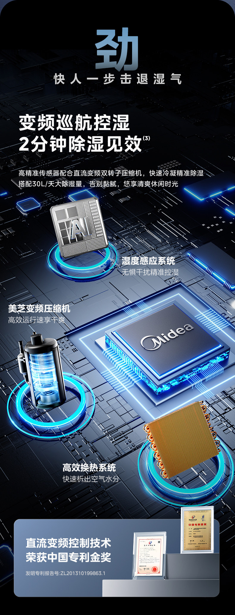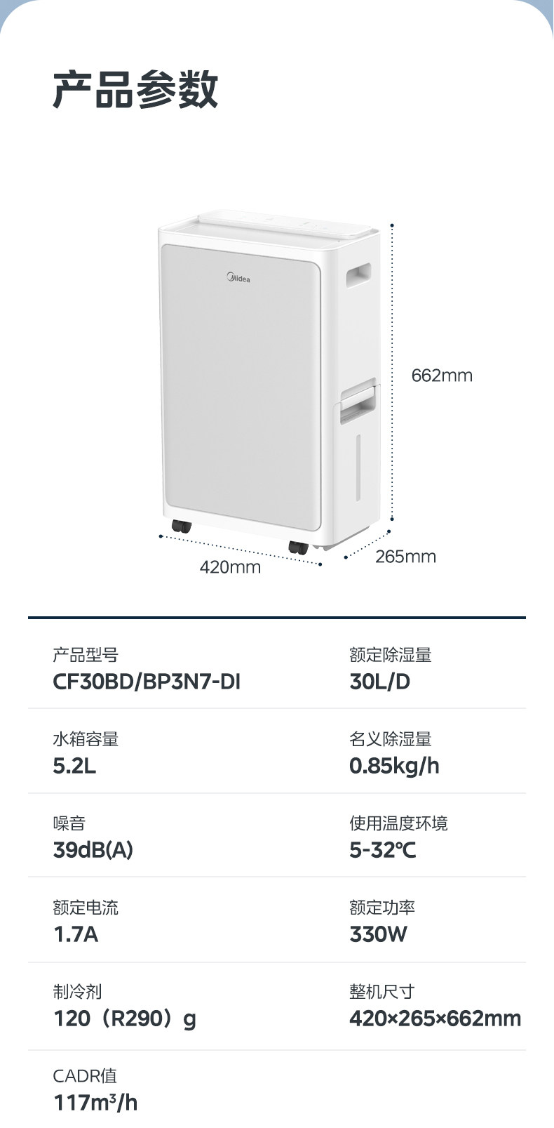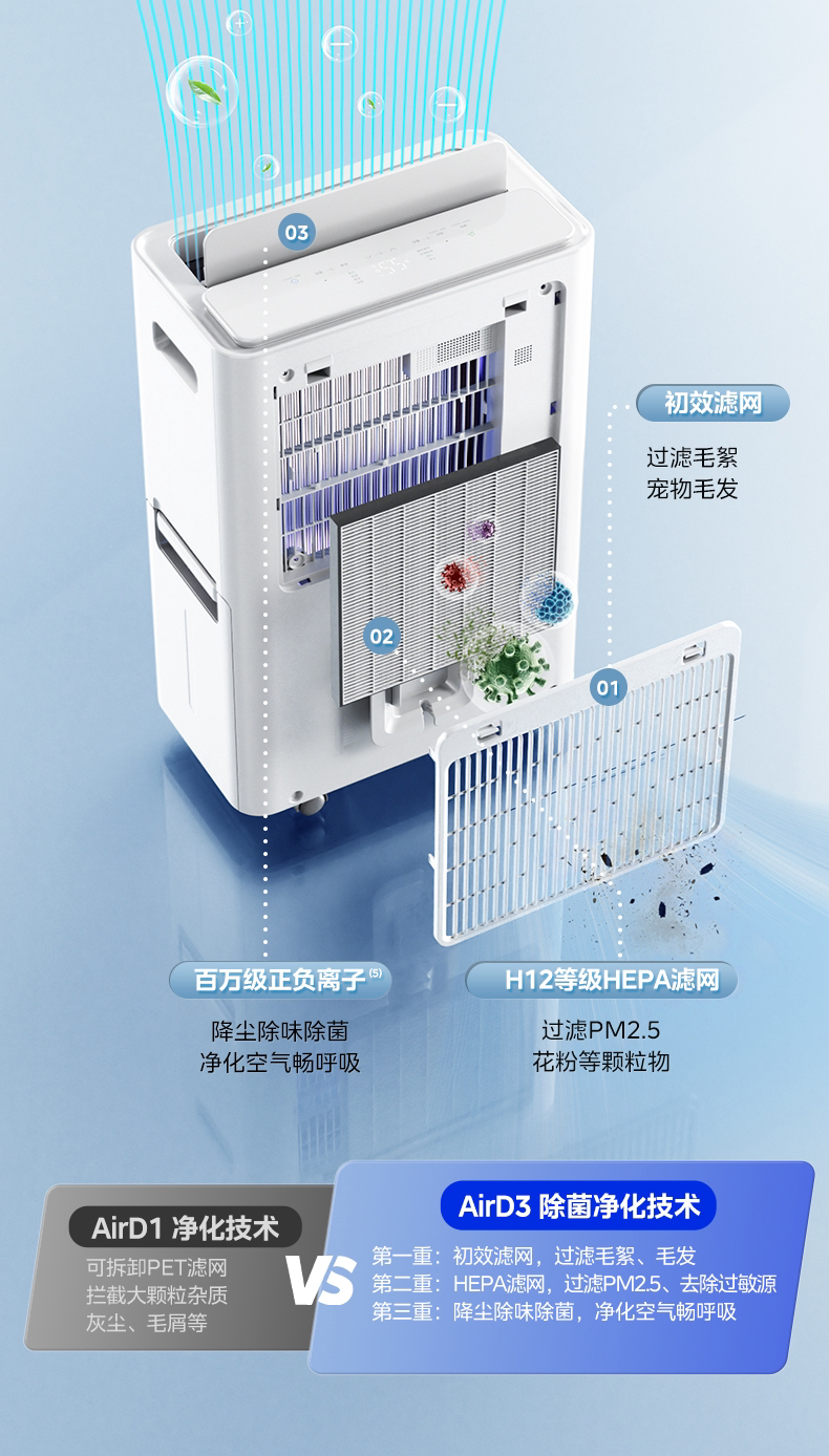 Осушитель Midea для сна, преобразователь частоты, свет, звук, 30 л, осушитель, очиститель воздуха, осушитель «два в одном», 30DI