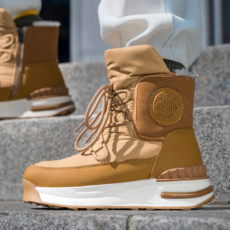 Зимние флисовые сапоги, нескользящая обувь, модные ботинки, средней длины