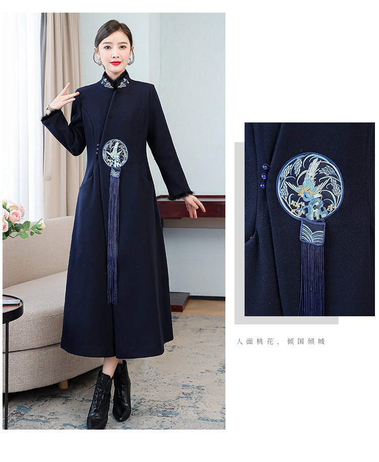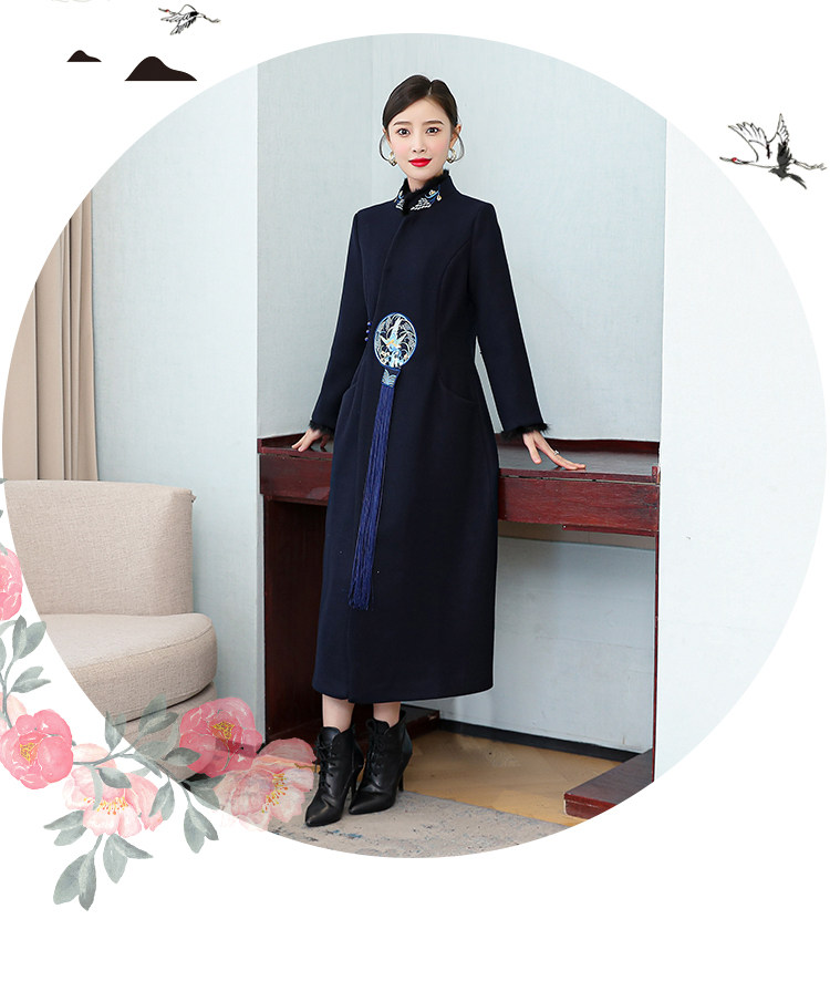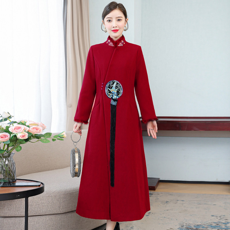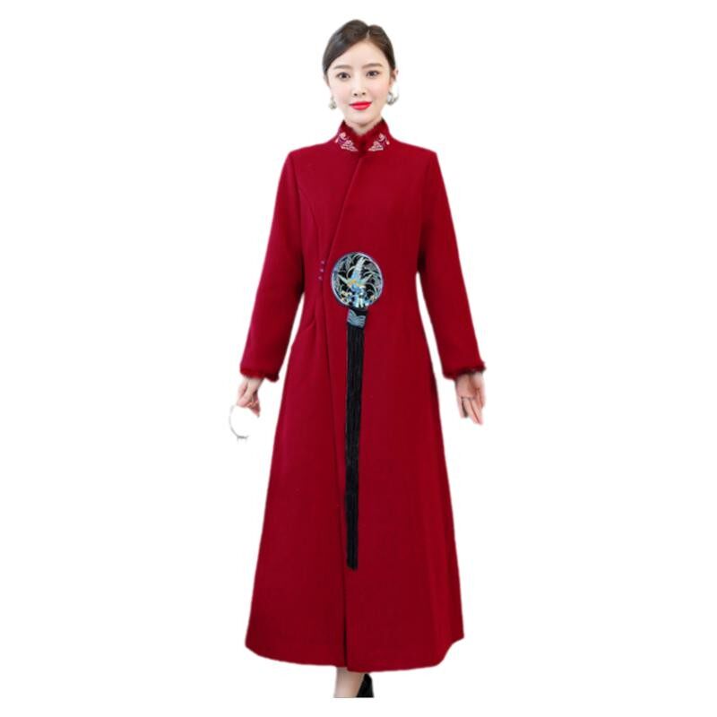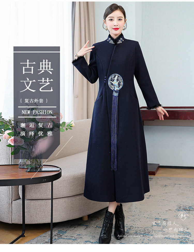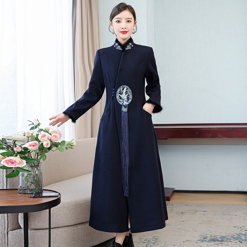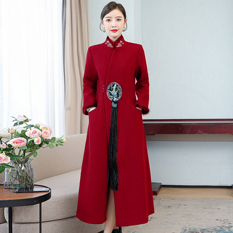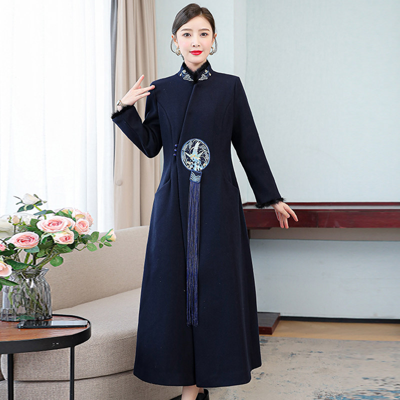 Демисезонное шерстяное пальто, куртка, ретро китайская вышивка, ципао, китайский стиль, изысканный стиль, большой размер, с вышивкой