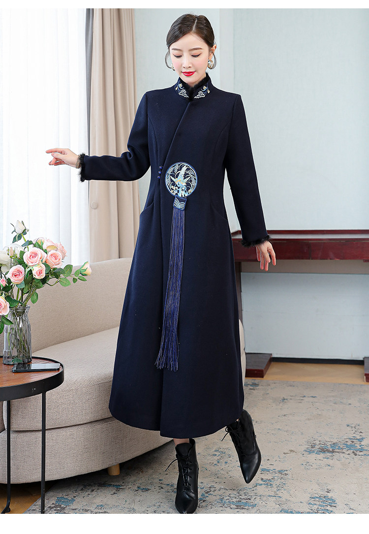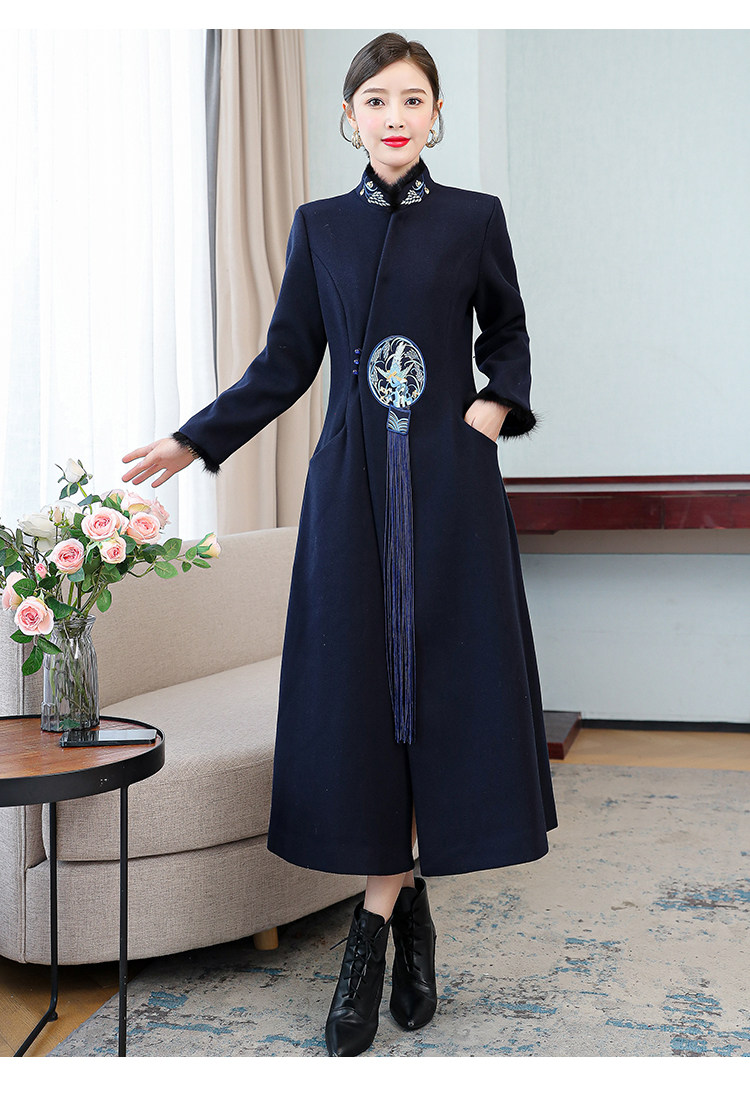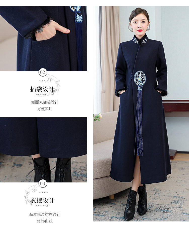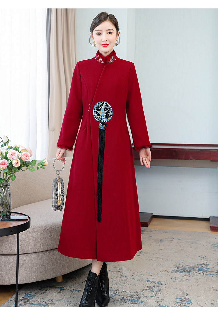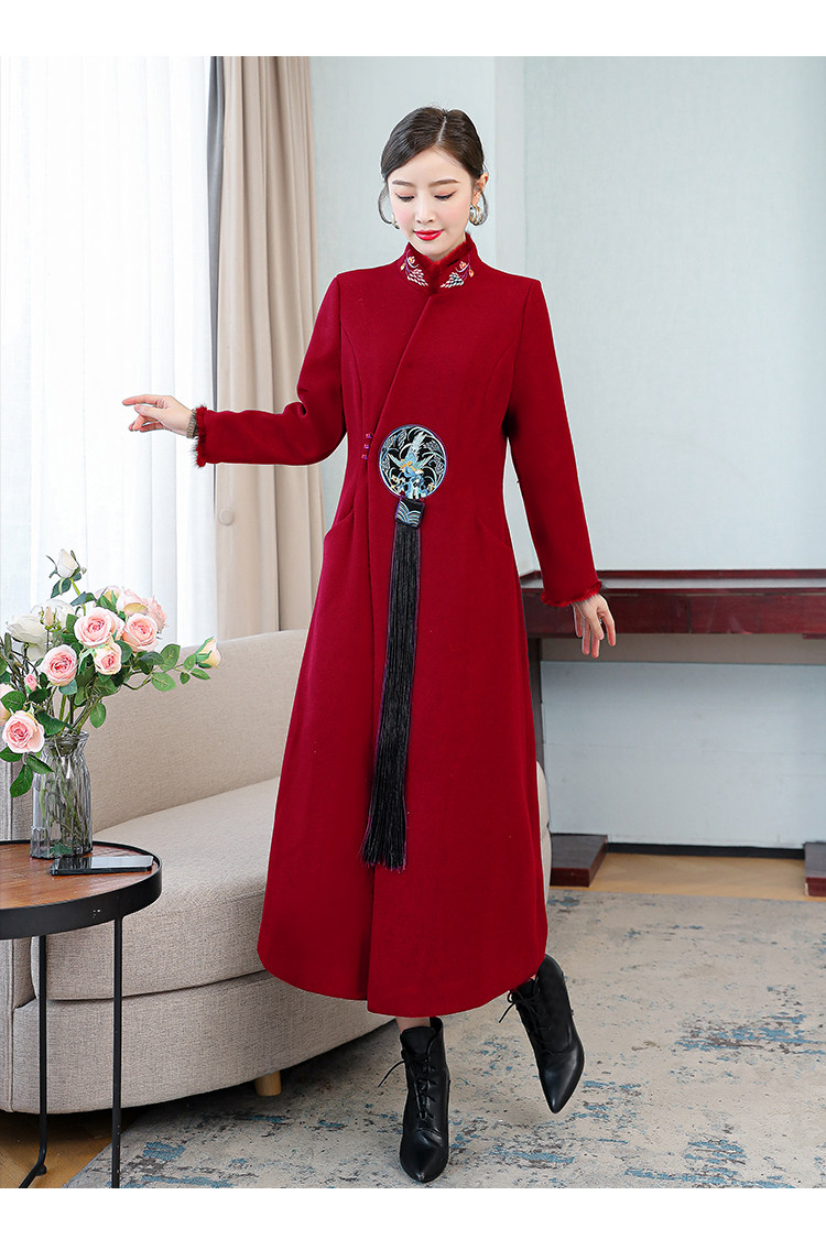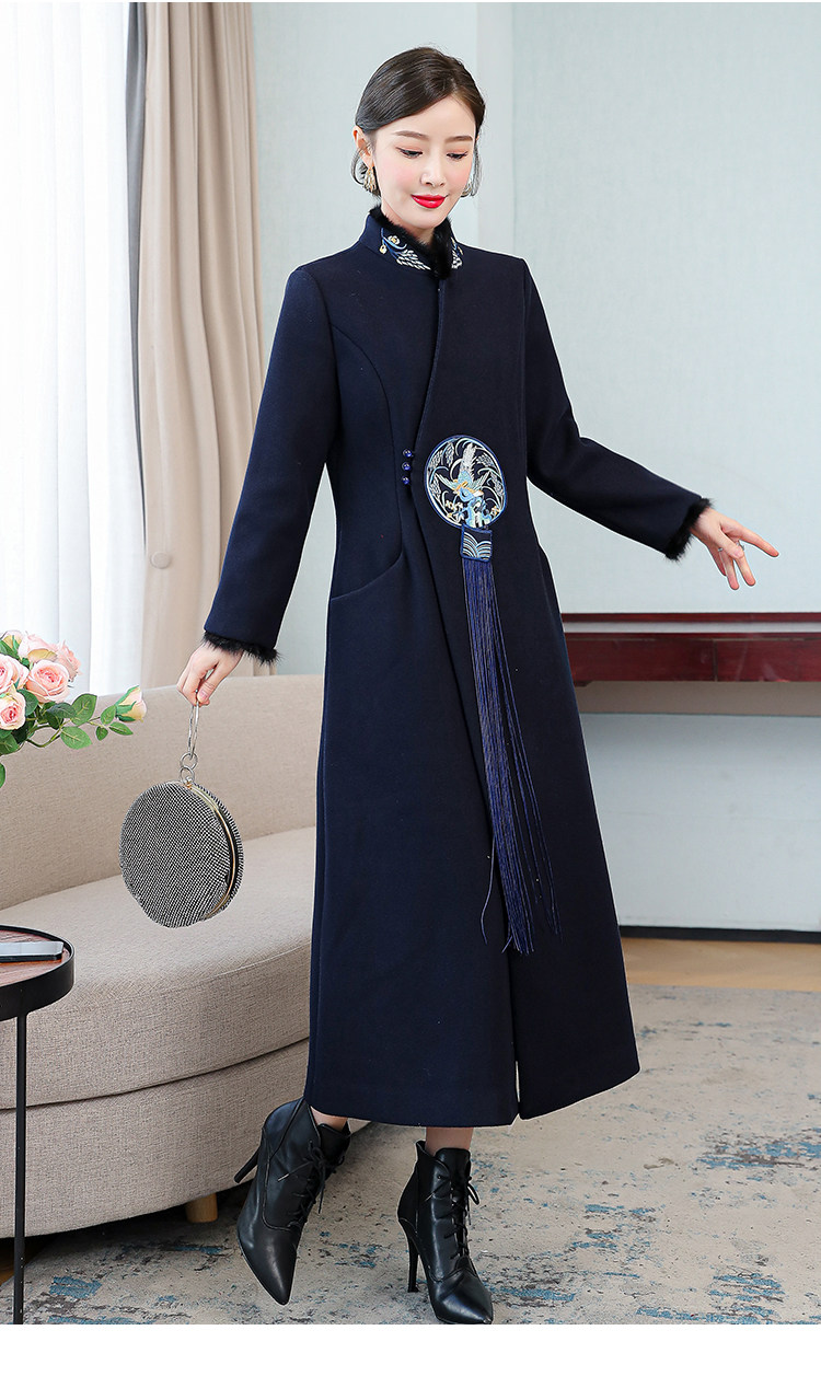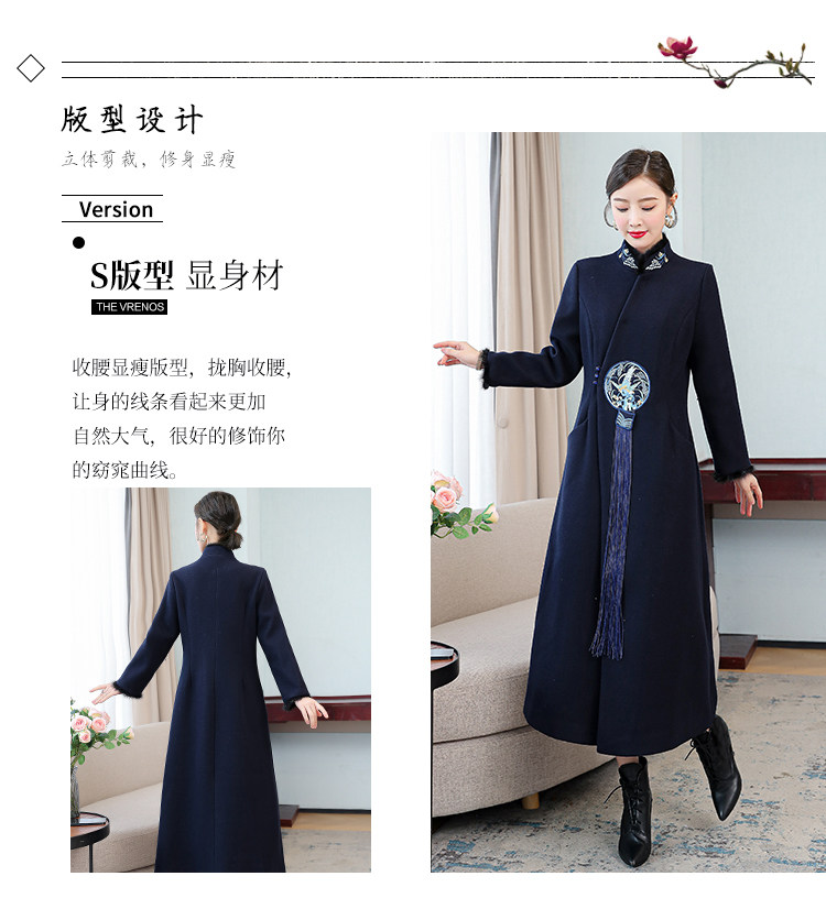 Демисезонное шерстяное пальто, куртка, ретро китайская вышивка, ципао, китайский стиль, изысканный стиль, большой размер, с вышивкой