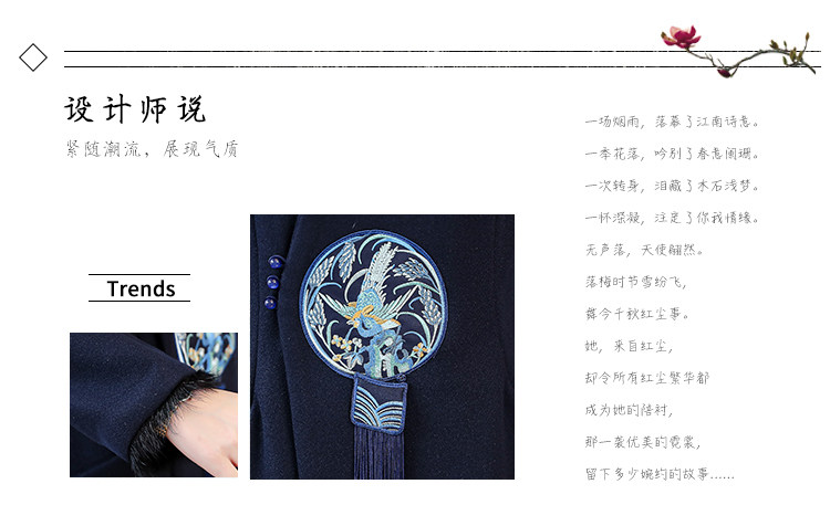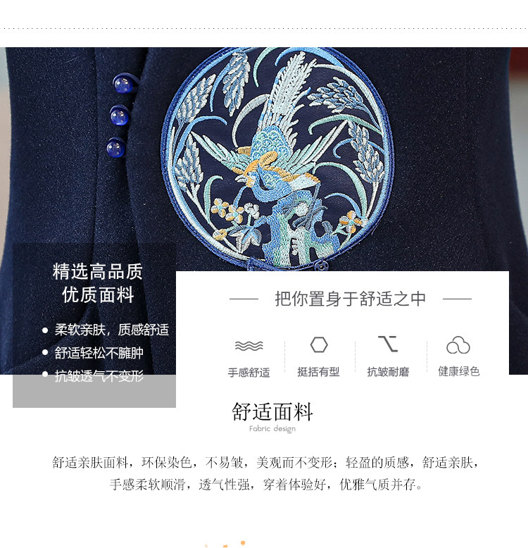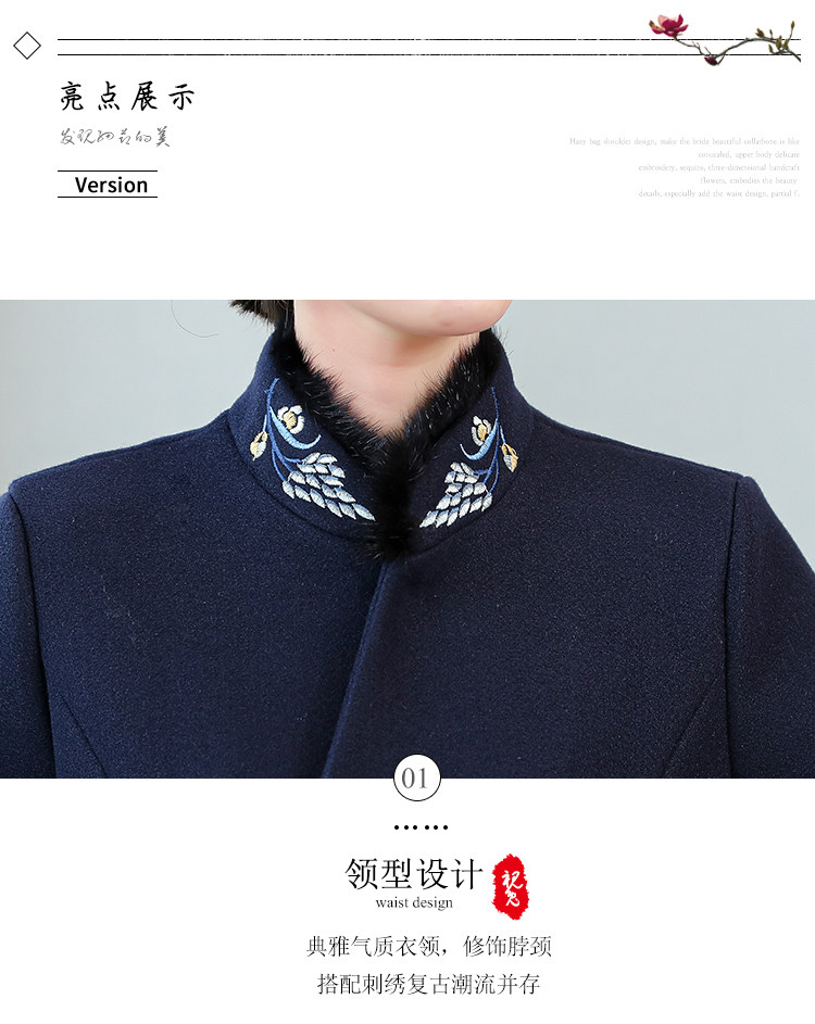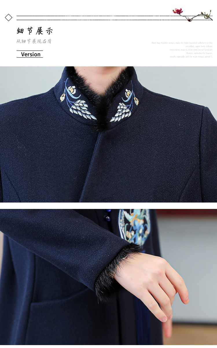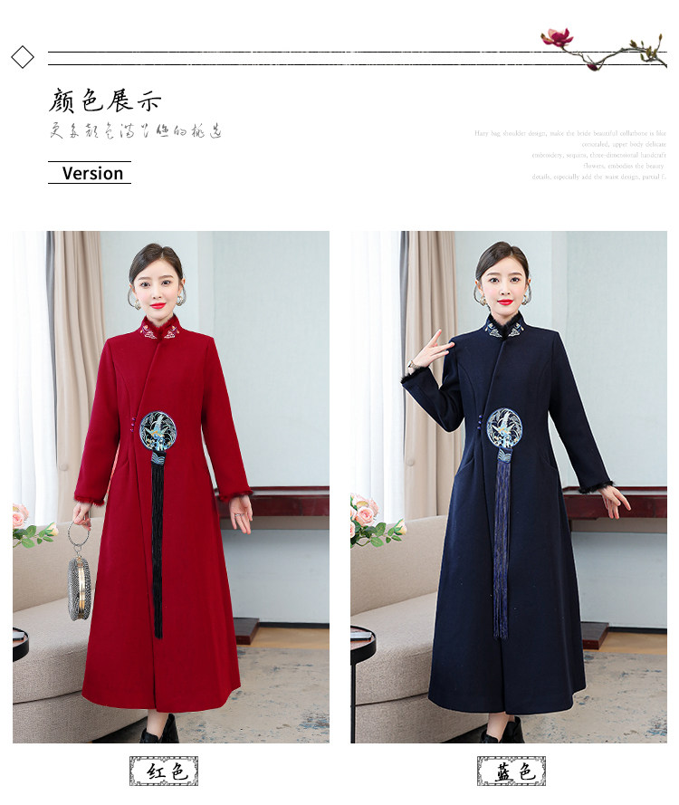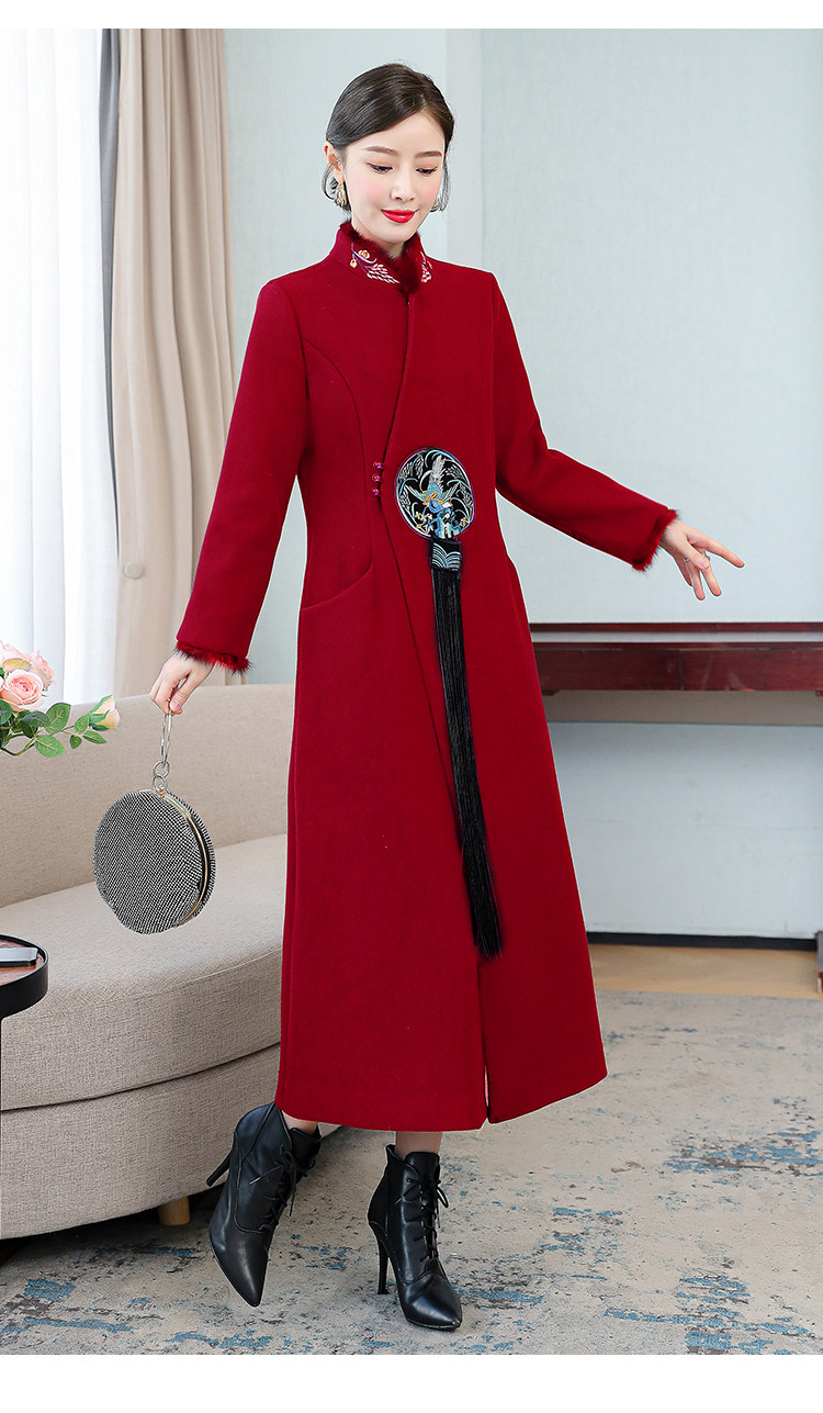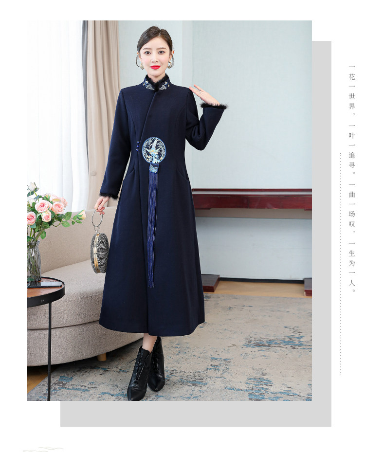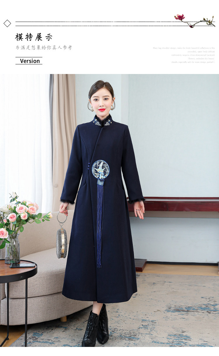 Демисезонное шерстяное пальто, куртка, ретро китайская вышивка, ципао, китайский стиль, изысканный стиль, большой размер, с вышивкой