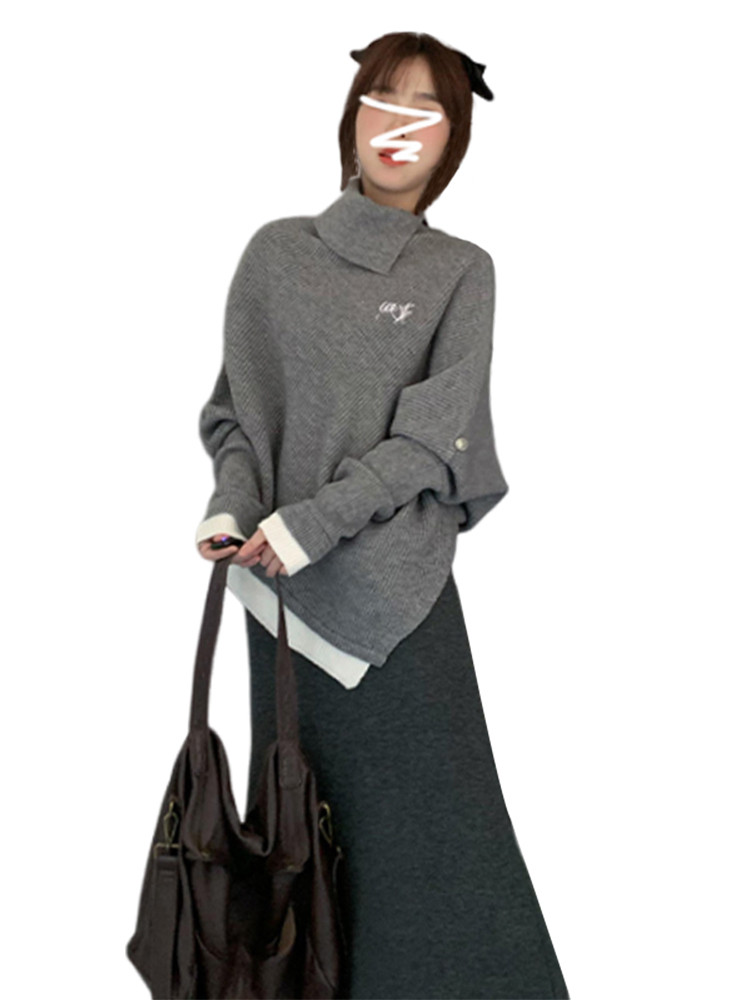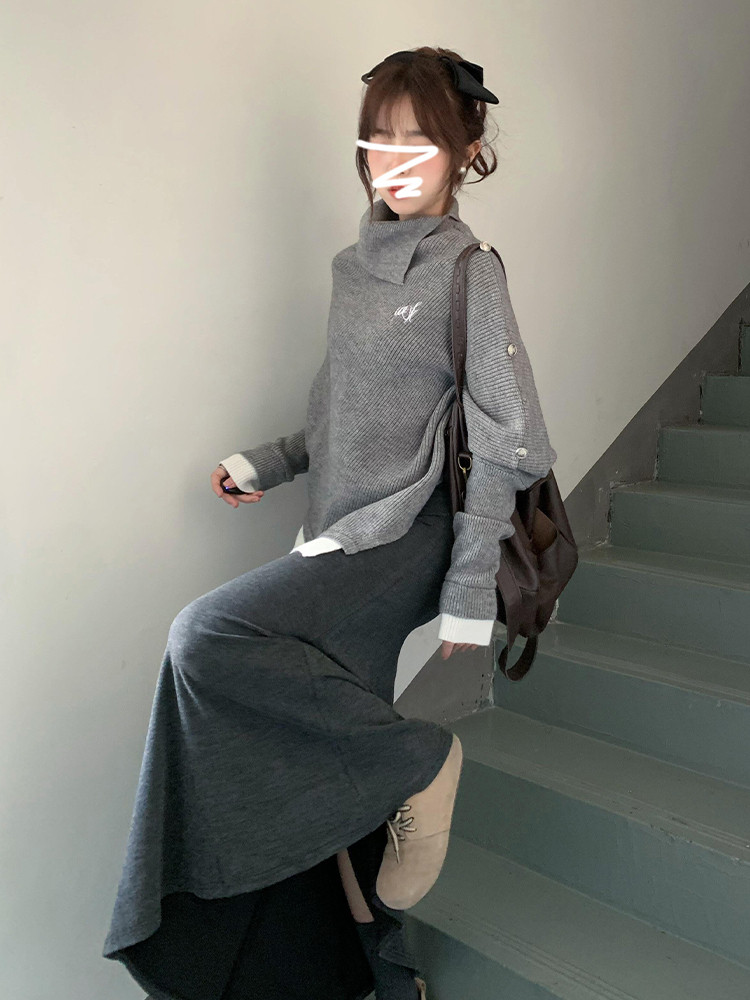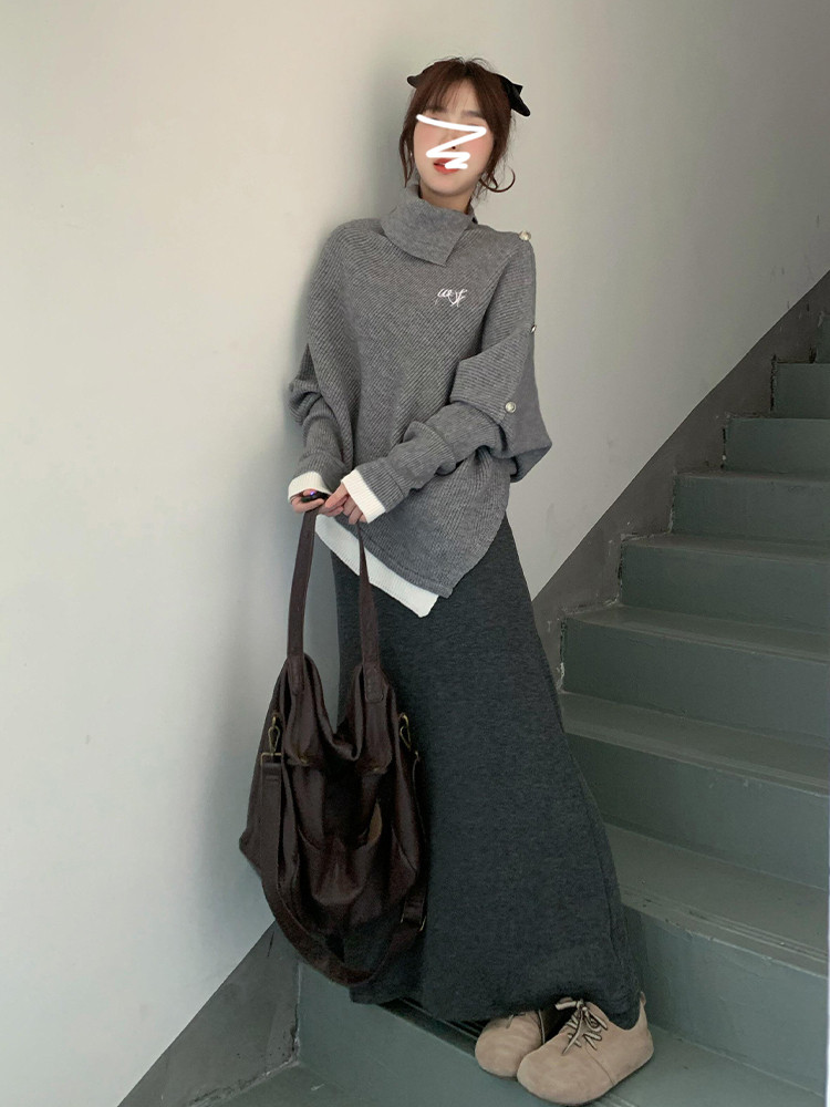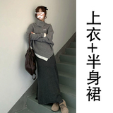 Трикотажный свитер, комплект, осенняя демисезонная юбка, французский стиль