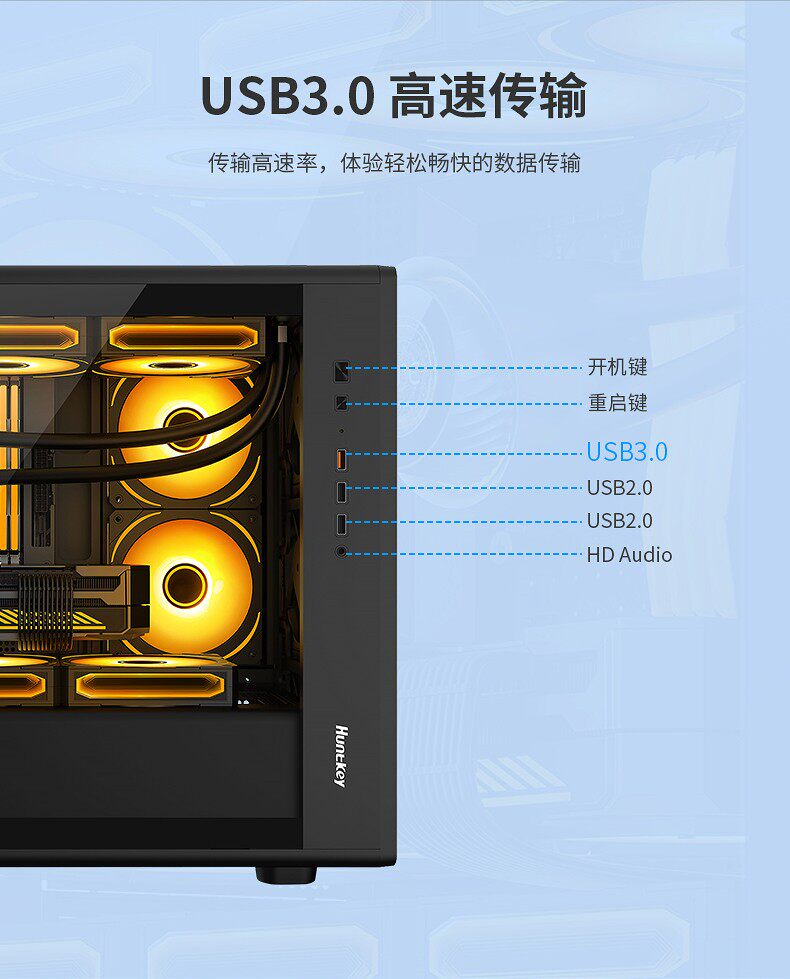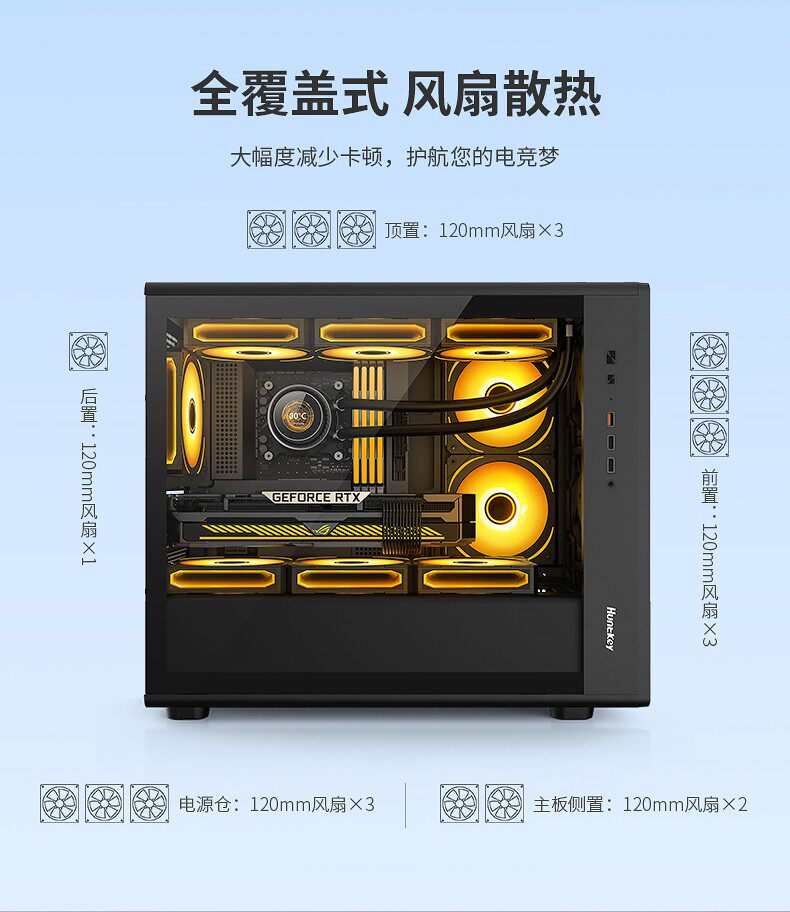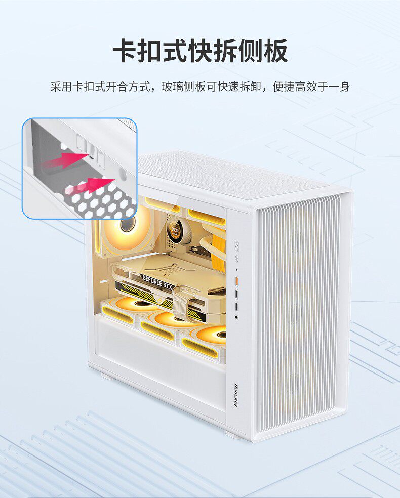 Основной корпус Huntkey G63 Battle 𢧐Основной корпус Ji для настольного компьютера MATX белый 360 с водяным охлаждением сбоку прозрачный игровой «сделай сам»