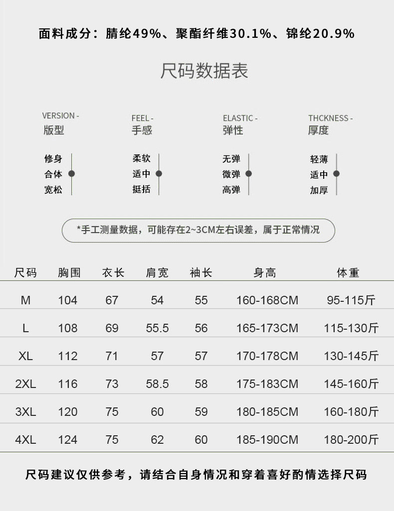 | Размер: | М рекомендуется 90-115 кот, L предложил 115-130 кот, XL рекомендовал 135-145 кот, 2xl Предложение 145-160 Catties, 3xl Предложение 160-180 кот, 4xl предложение 180-200 кот |