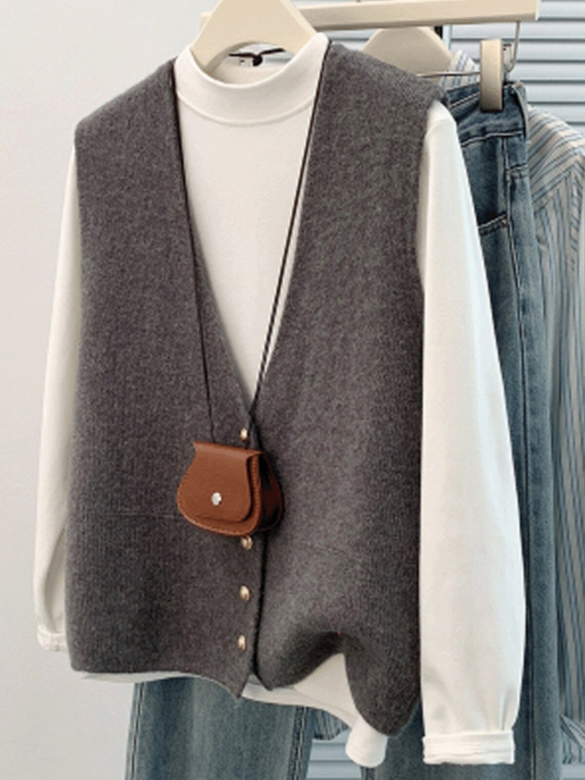 Трикотажный осенний жилет, осенняя майка топ, кардиган, свитер, в западном стиле, большой размер