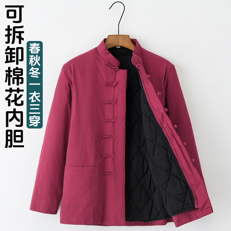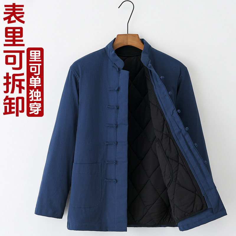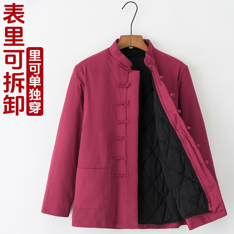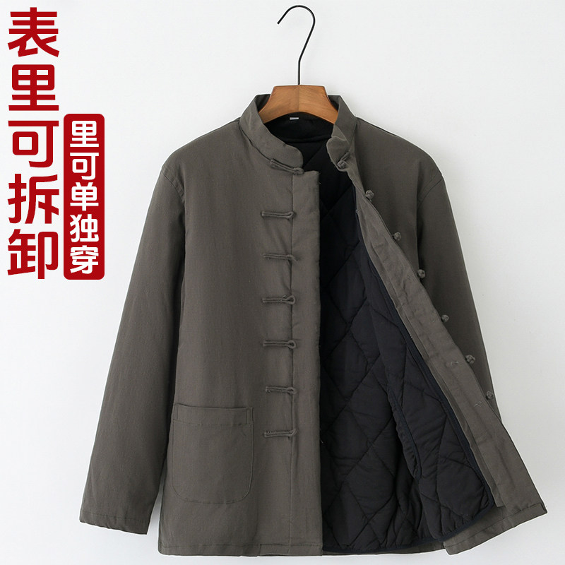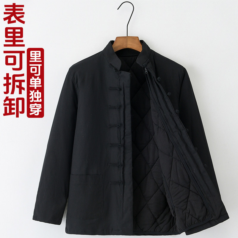 Демисезонная съемная утепленная цепочка для пожилых людей для мальчиков с молнией, хлопковый пуховик, куртка, средней длины, китайский стиль