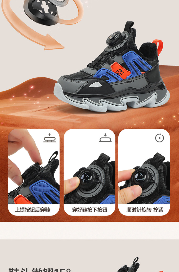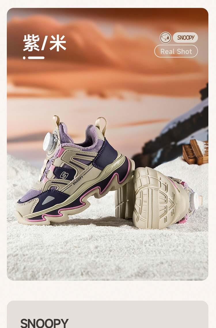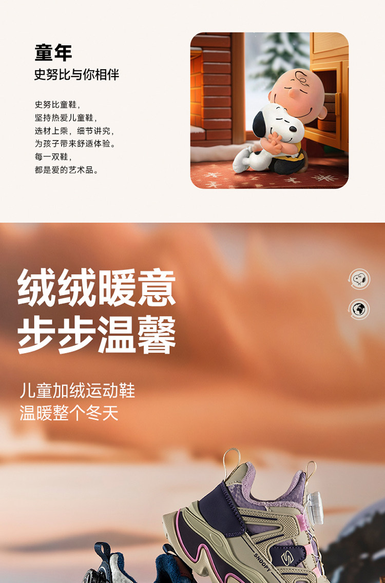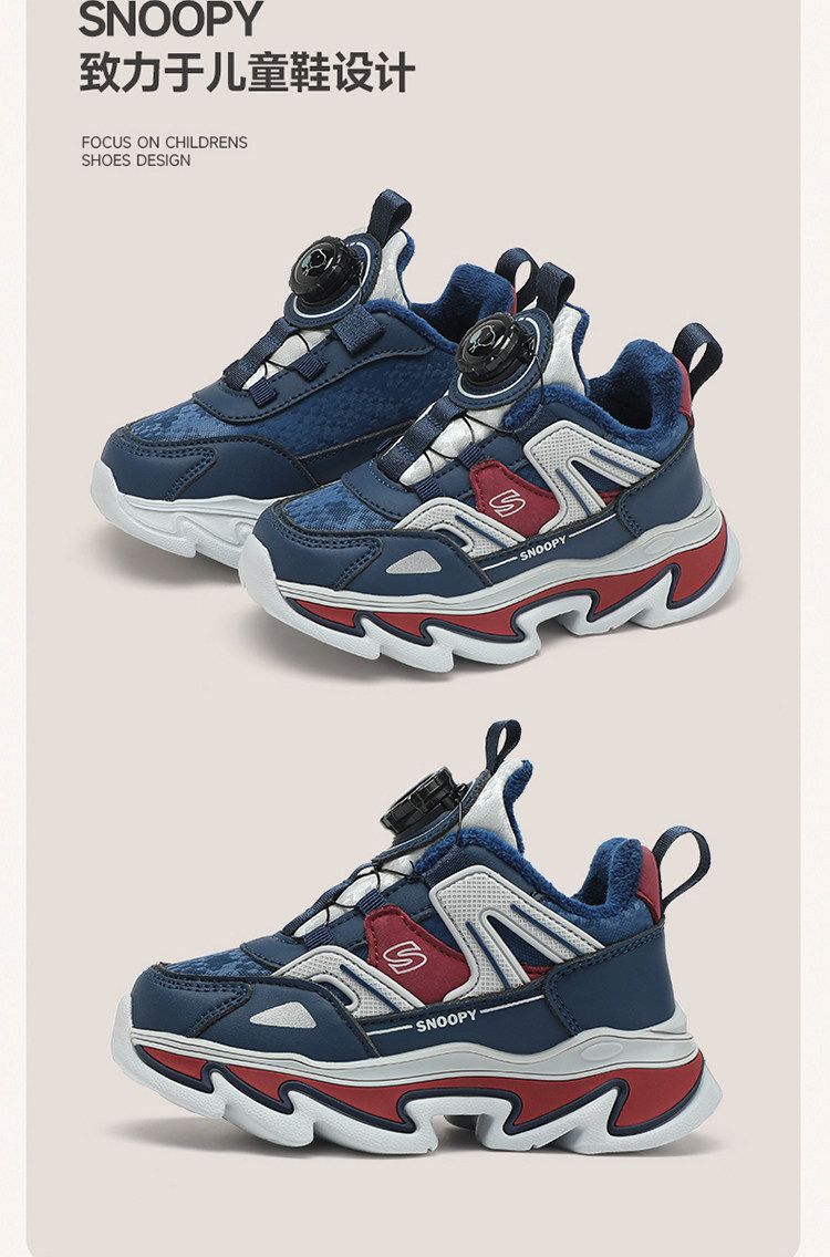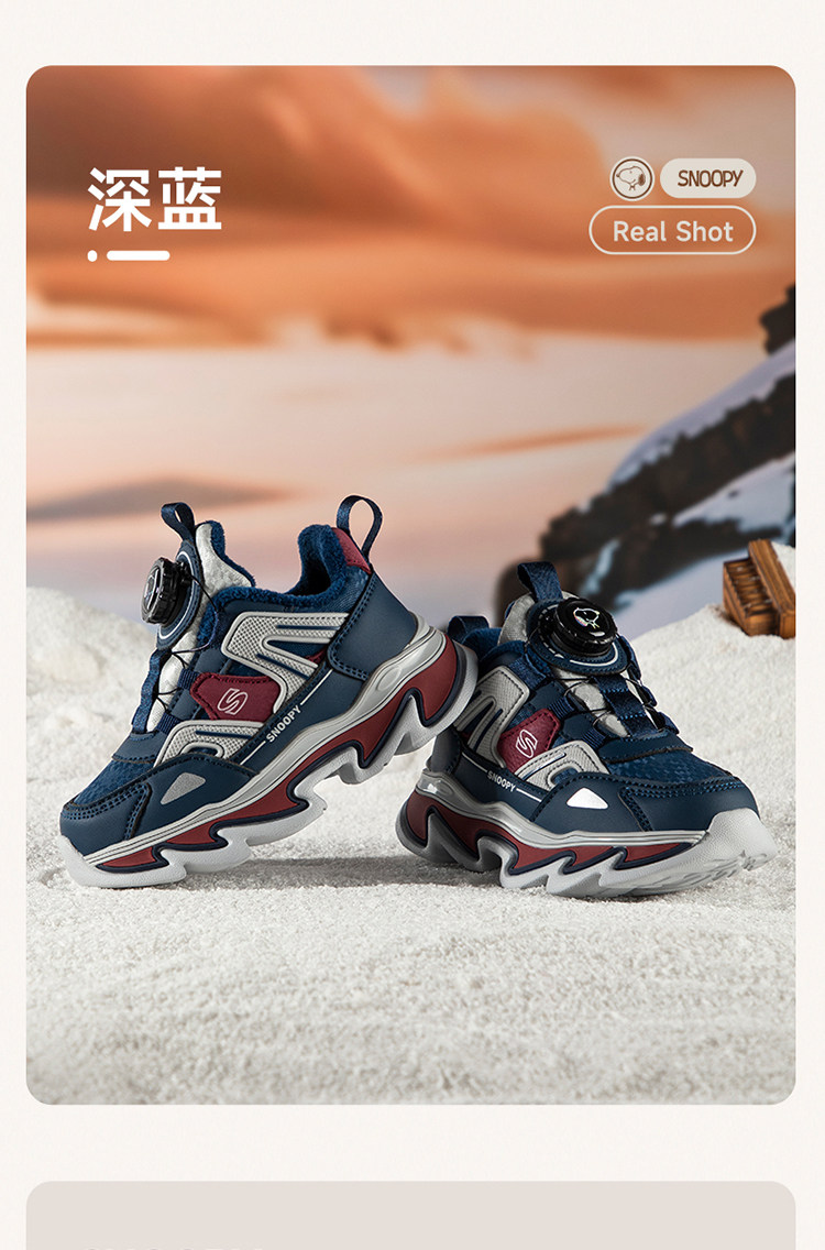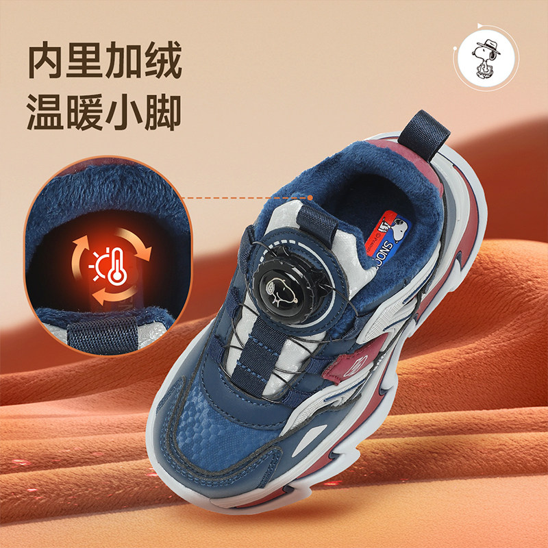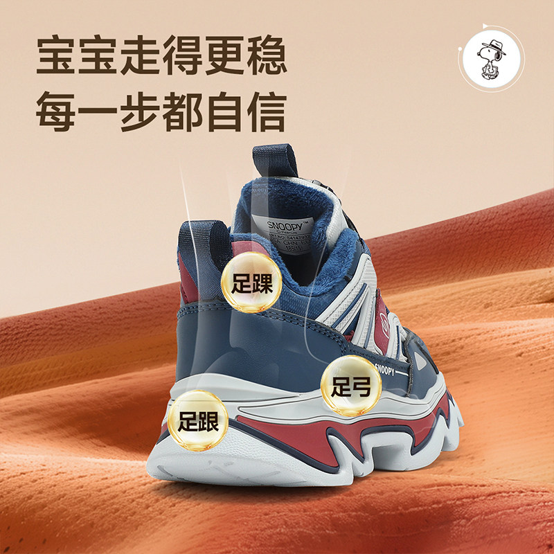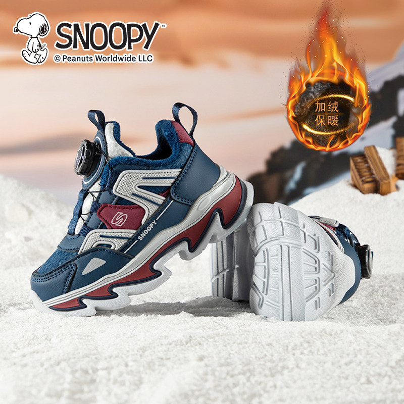 Детская спортивная обувь Snoopy, хлопчатобумажная обувь для мальчиков, а также бархатные, теплые и нескользящие походные туфли для улицы, новые зимние туфли для девочек.