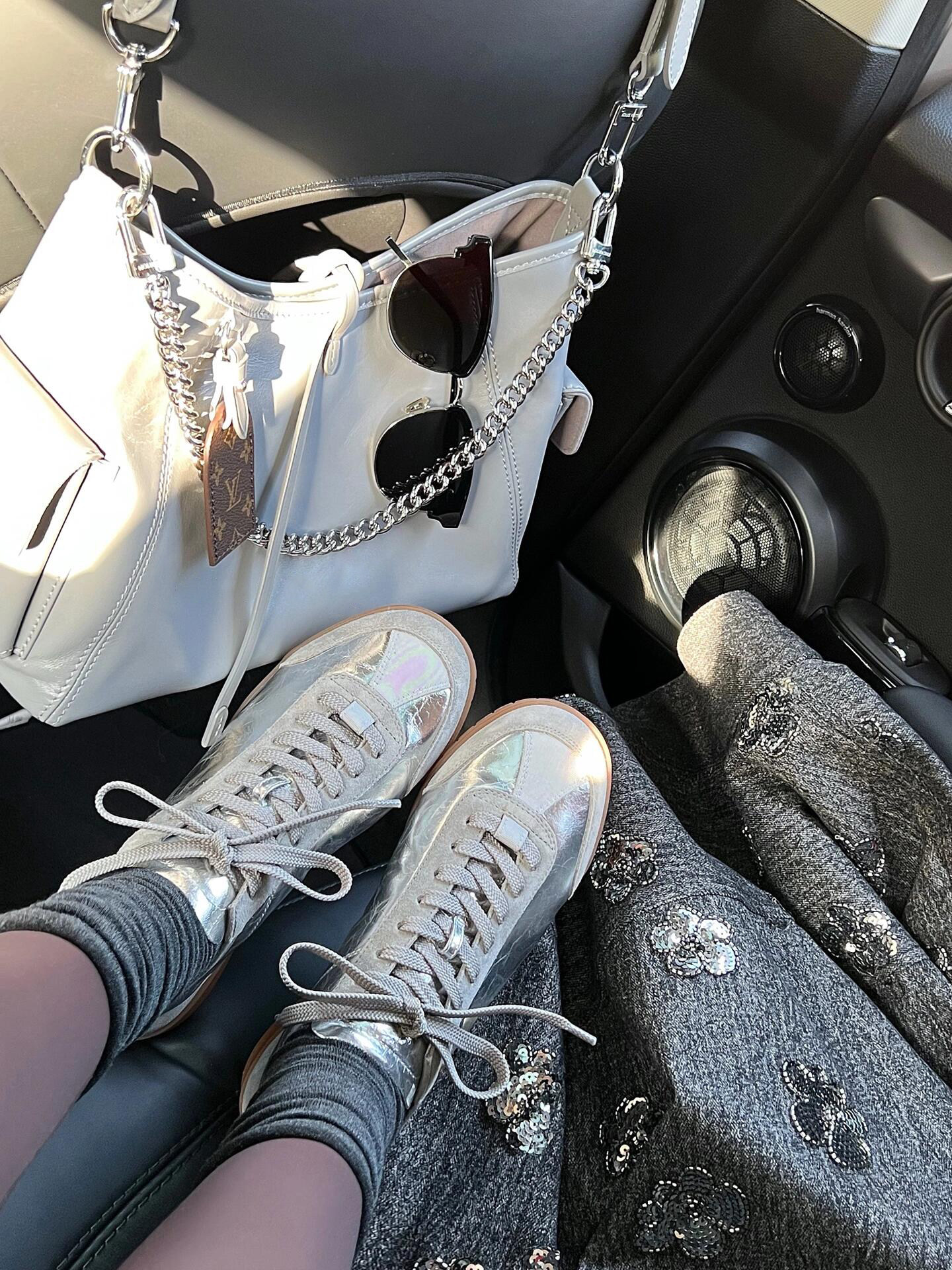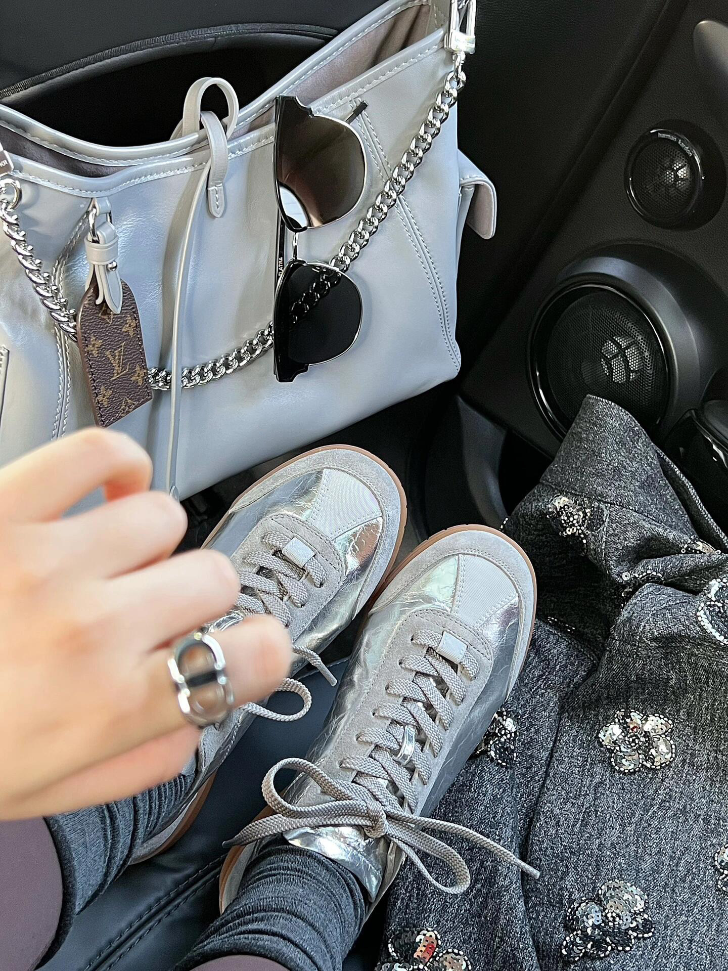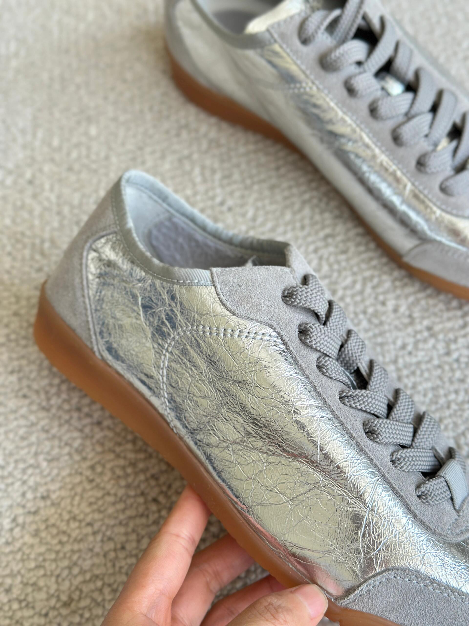 Серебряная плоская подошва спортивная обувь на платформе для отдыха, небольшая сумка для кожаной обуви, стиль, из натуральной кожи