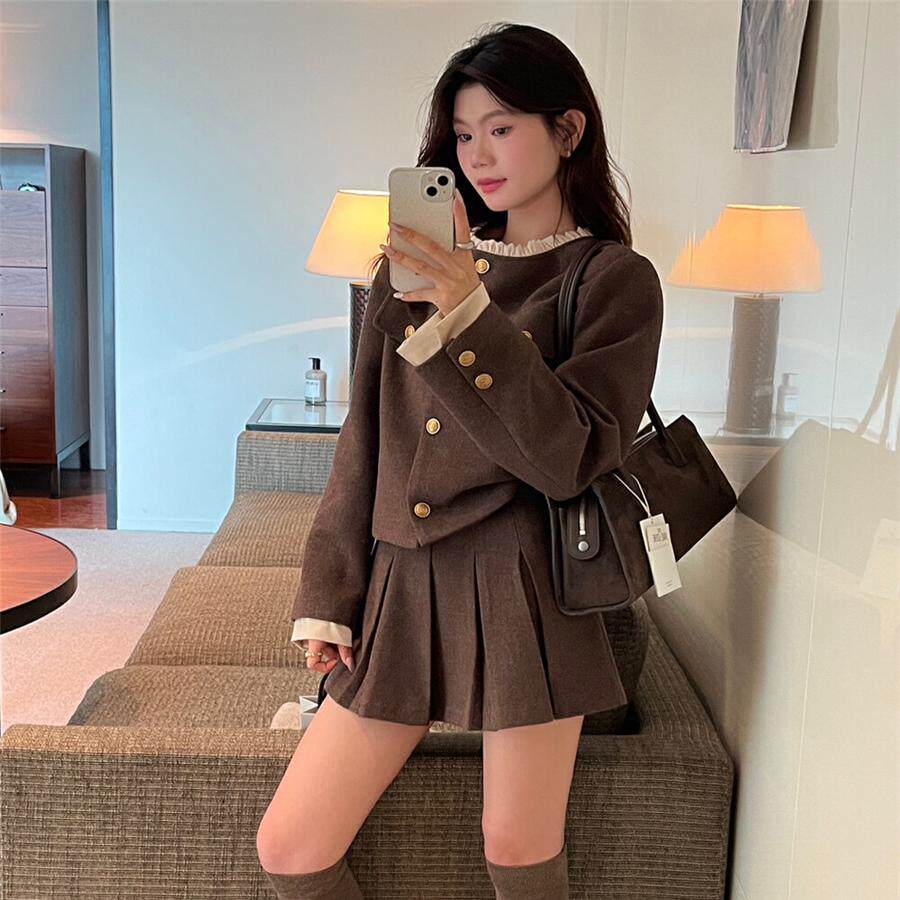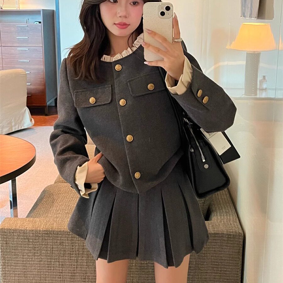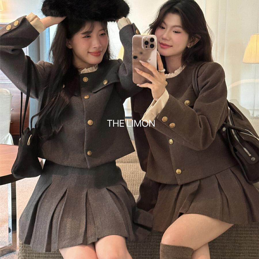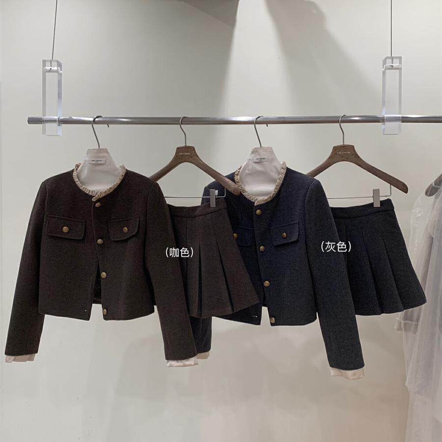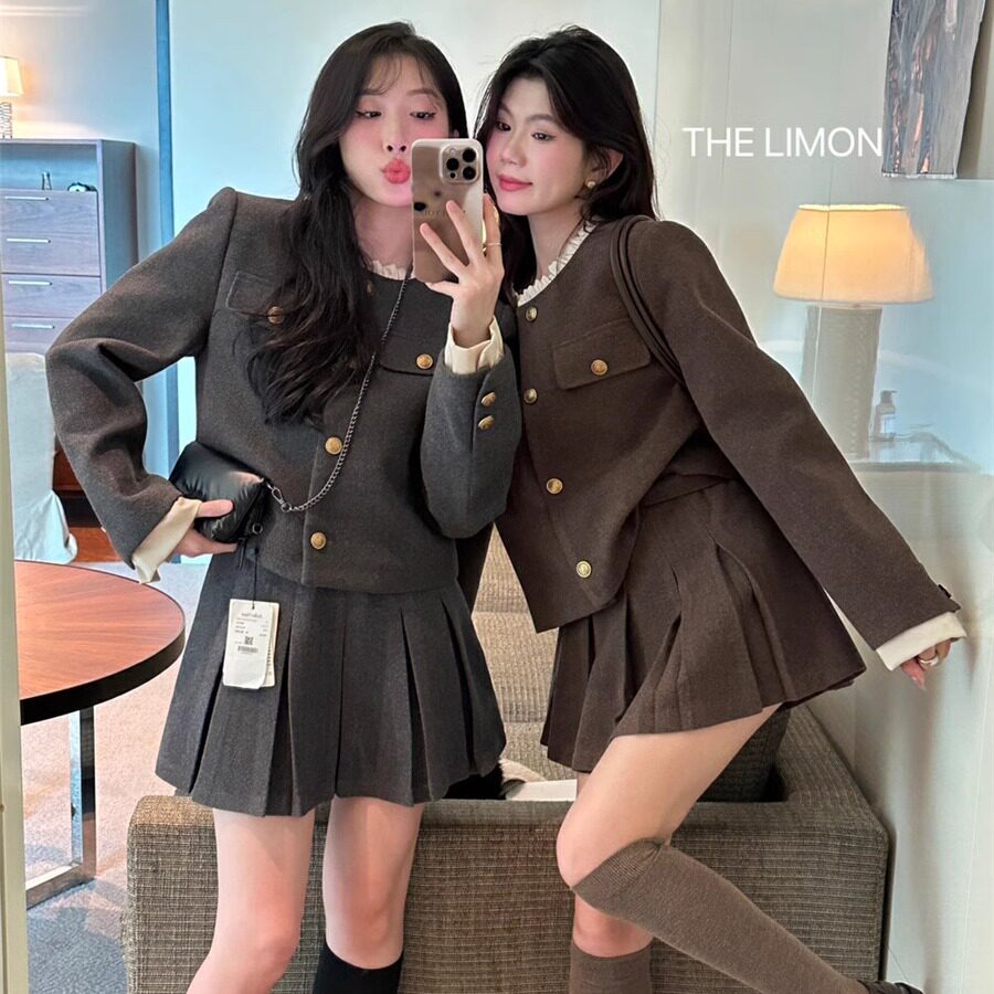 Лимонный демисезонный небольшой зеленый чай, стеганая шерстяная куртка, юбка в складку, комплект, в стиле Шанель