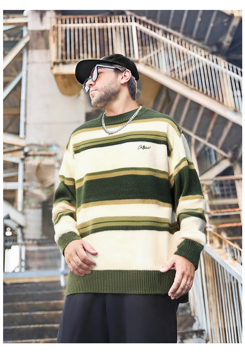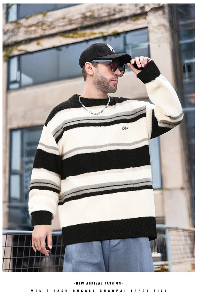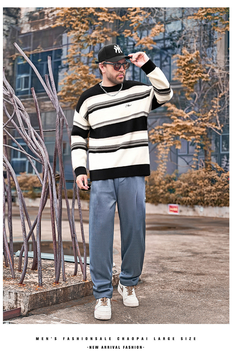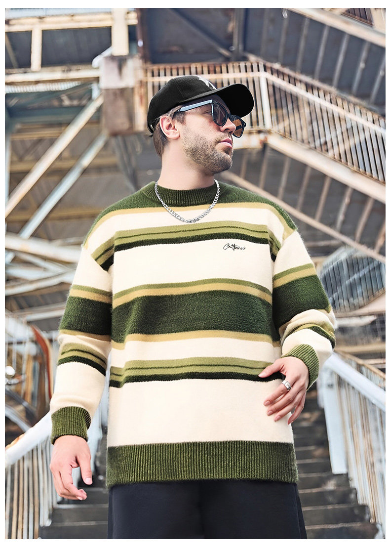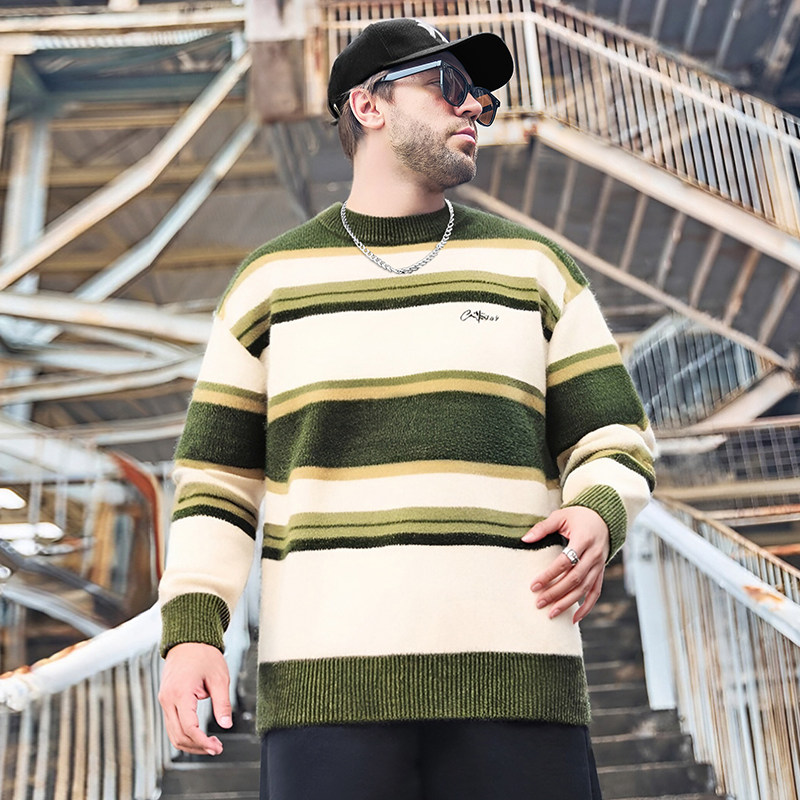 Мужской зимний трикотажный свитер с круглым воротником, большой размер