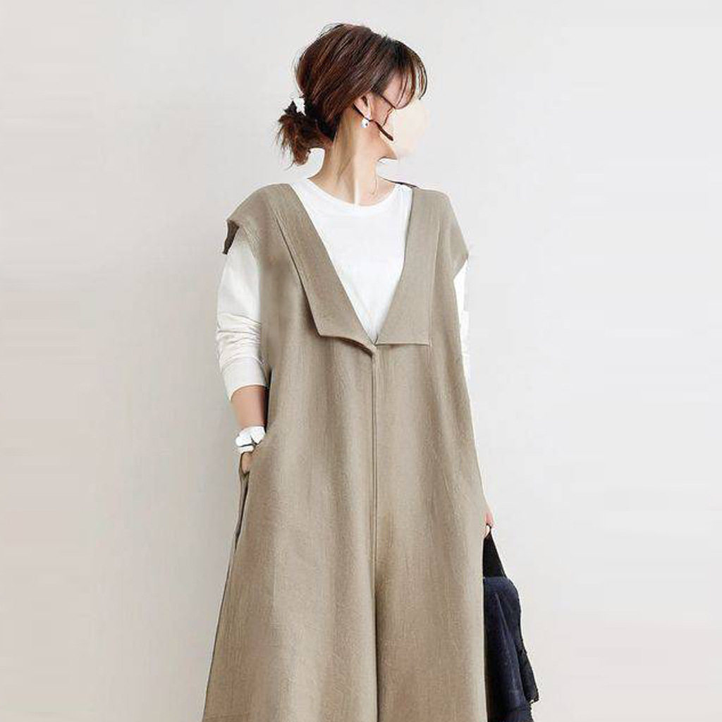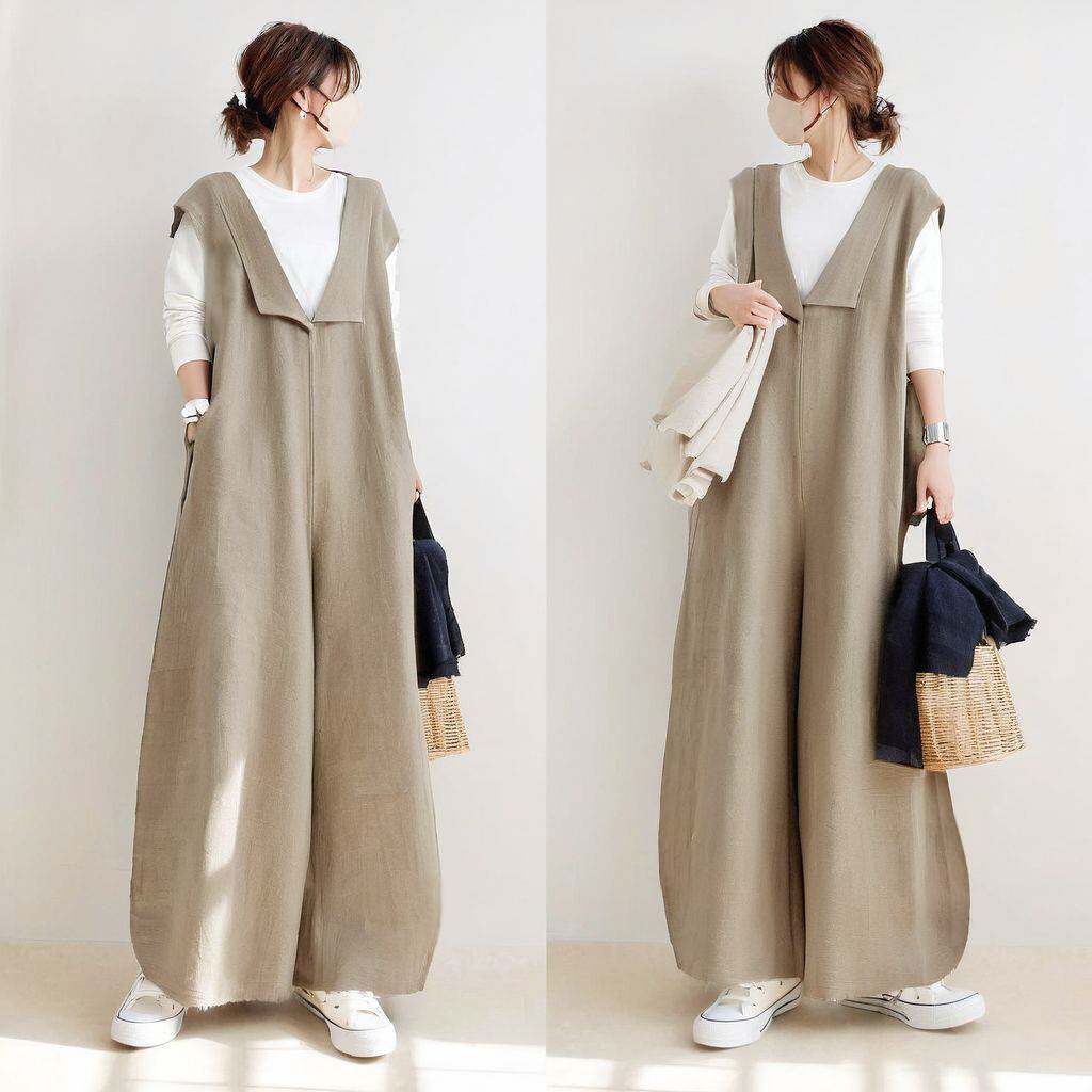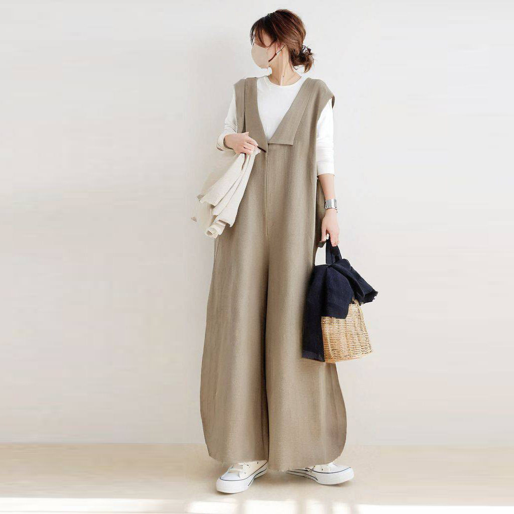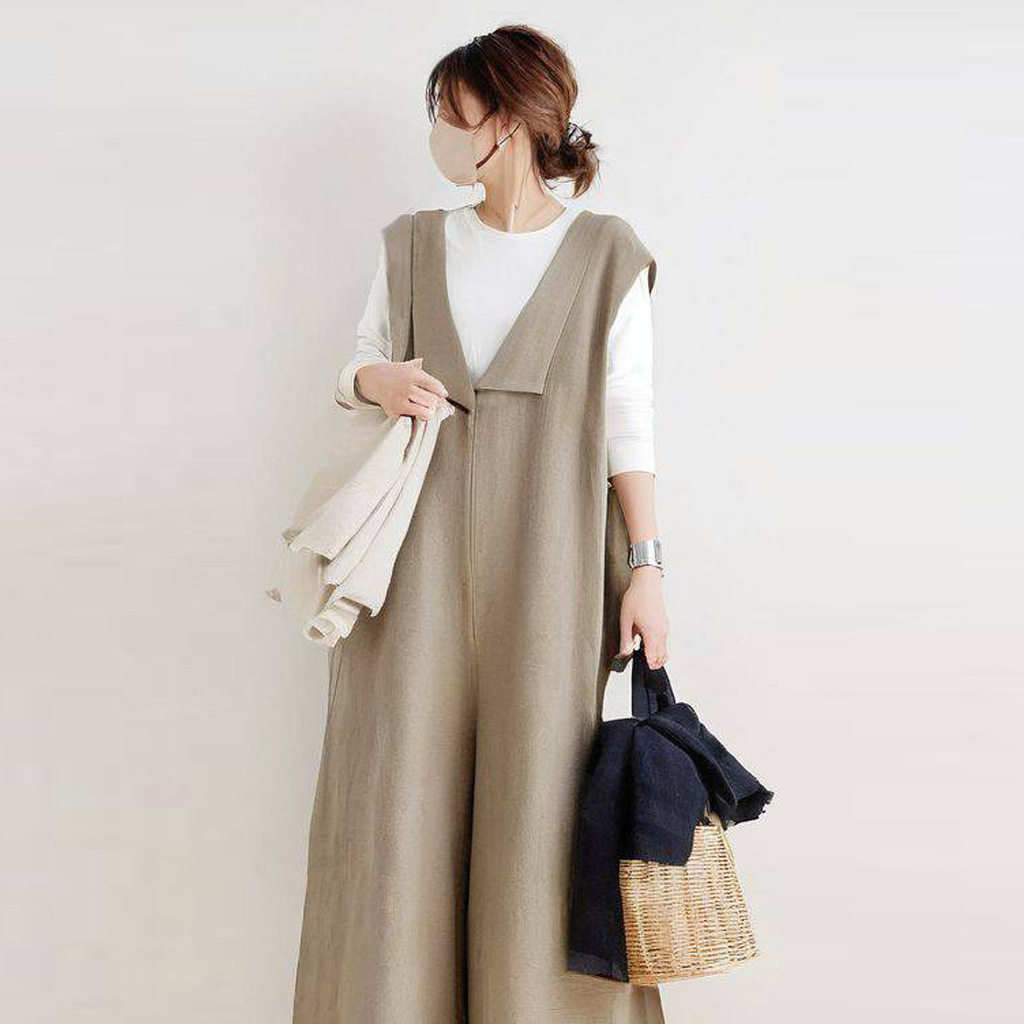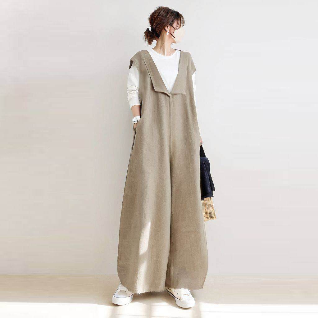(Трансграничная торговля), японский летний осенний комбинезон, из хлопка и льна