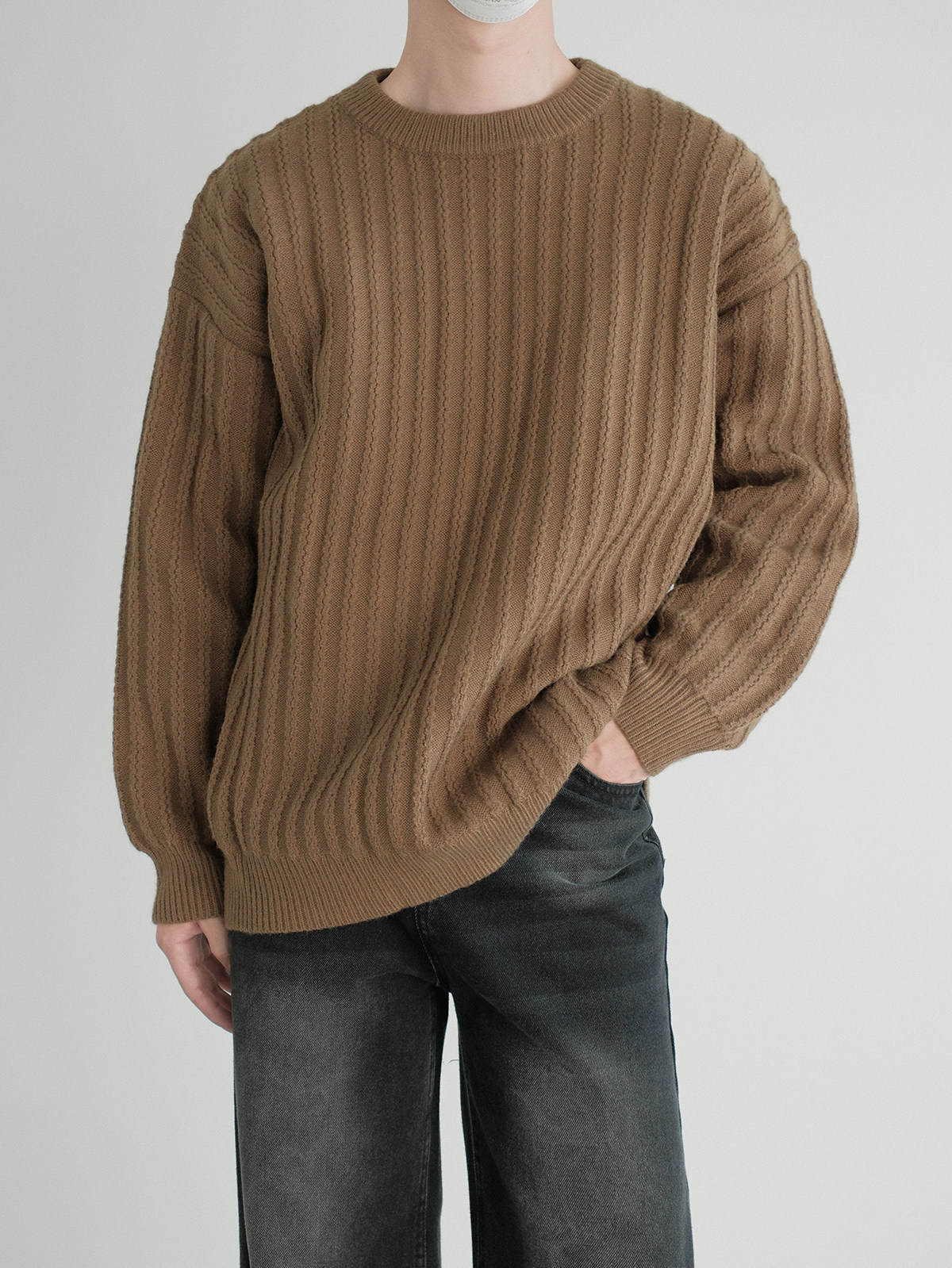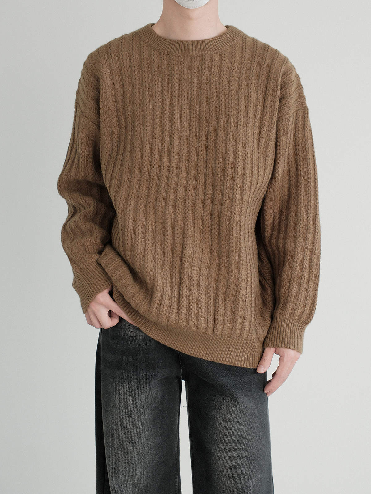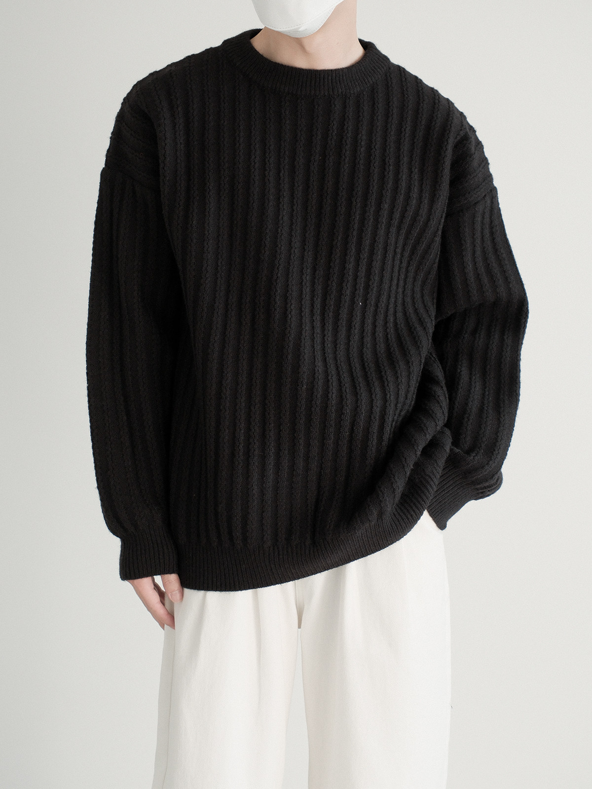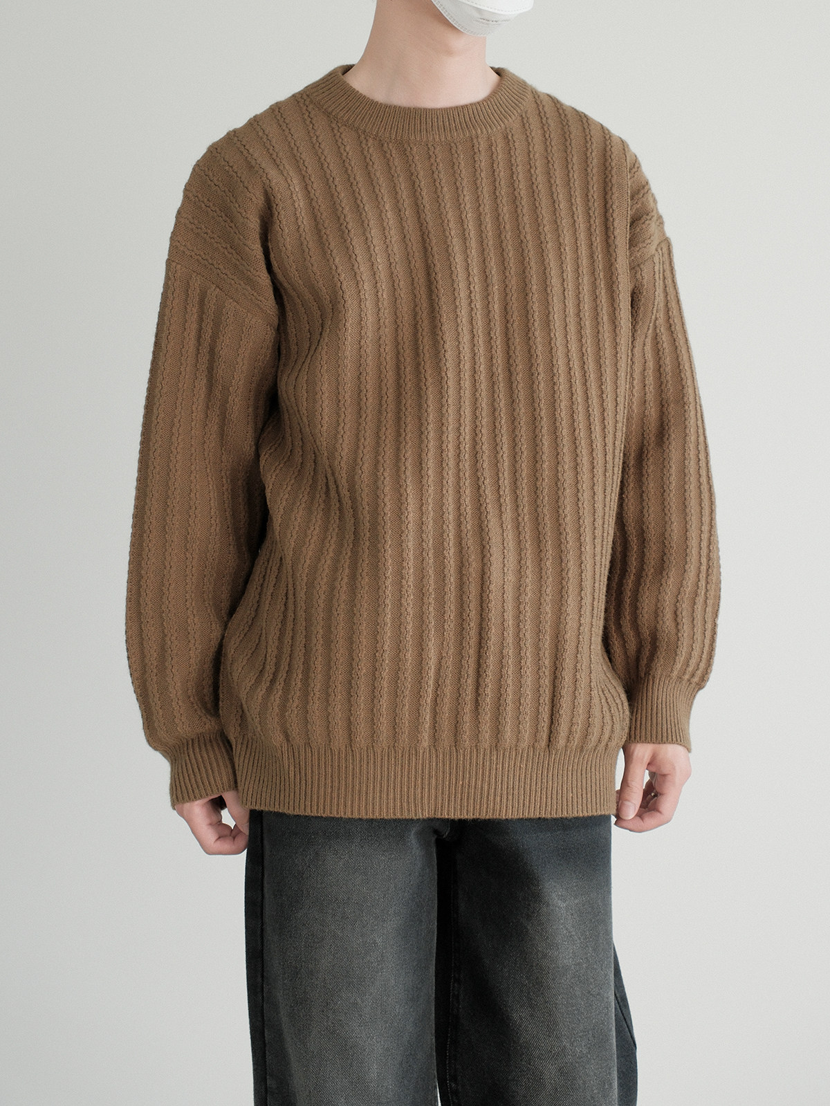 Dazo толстый солидный яма -полосатый краны с отходом из кранов мальчики с высоким уровнем холода холодного воздуха свободный текстура Сенсорный свитер