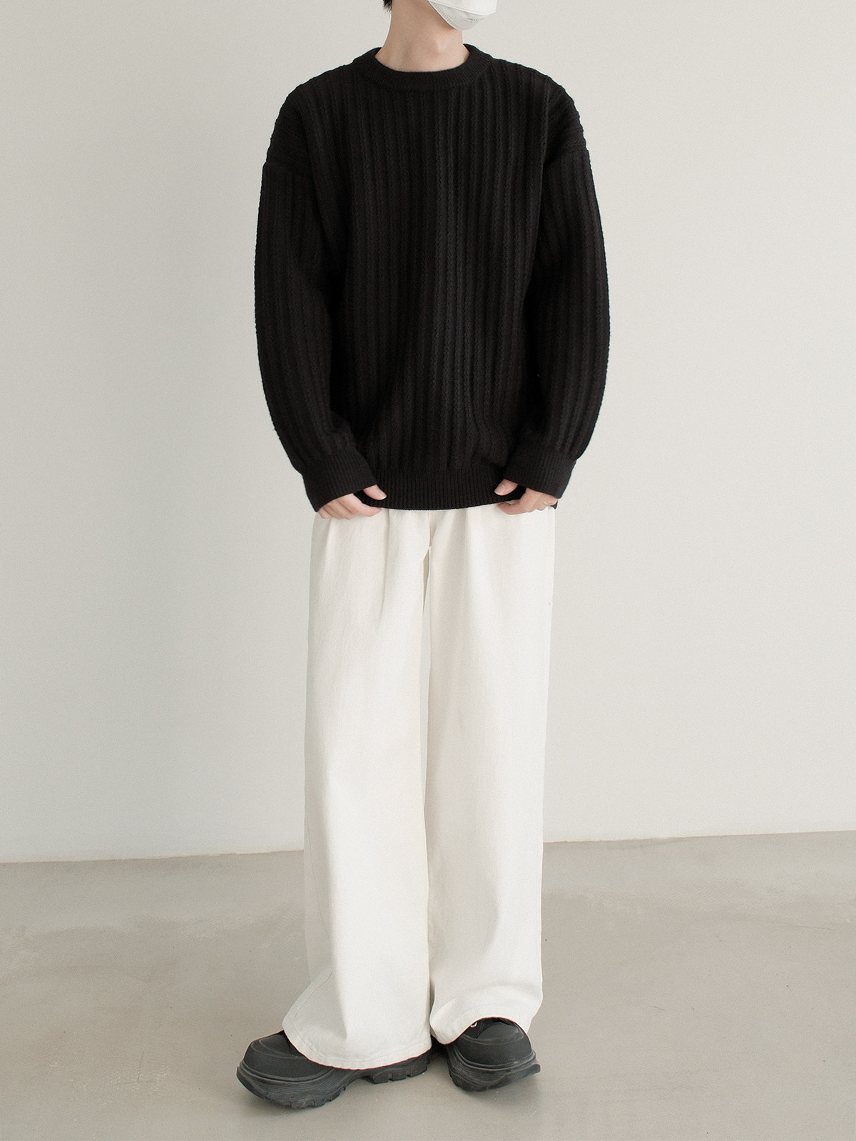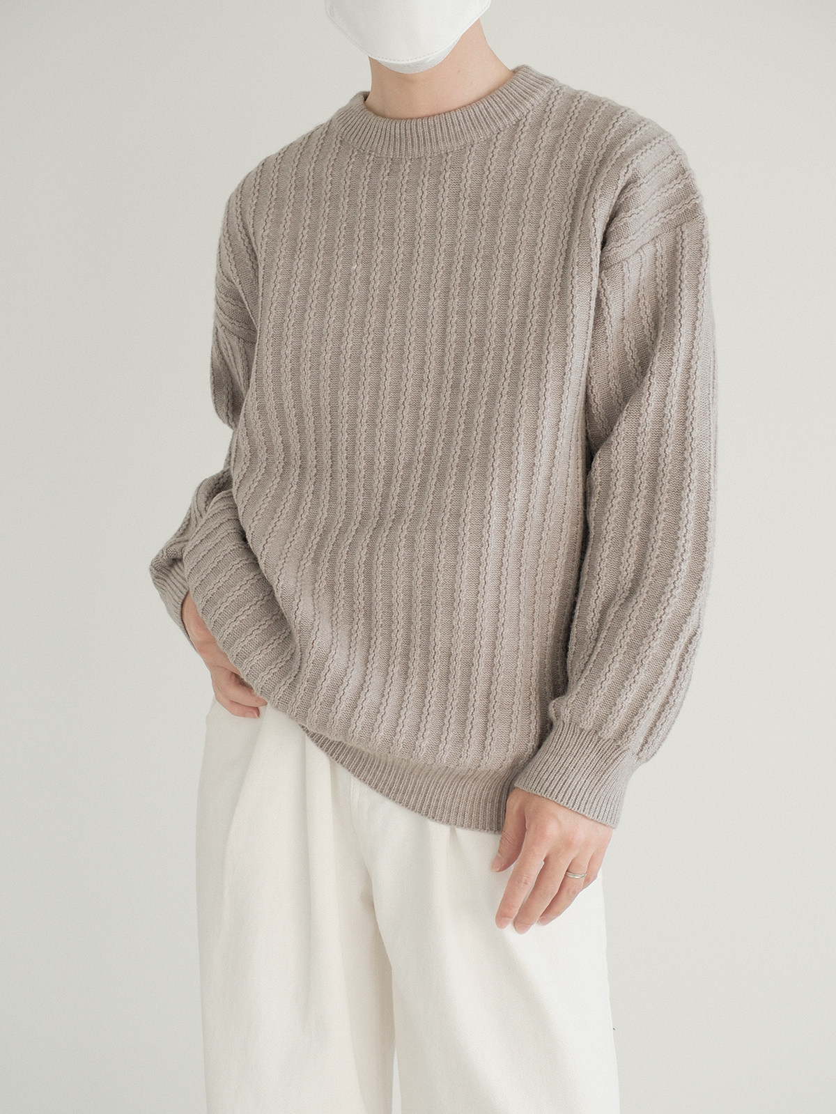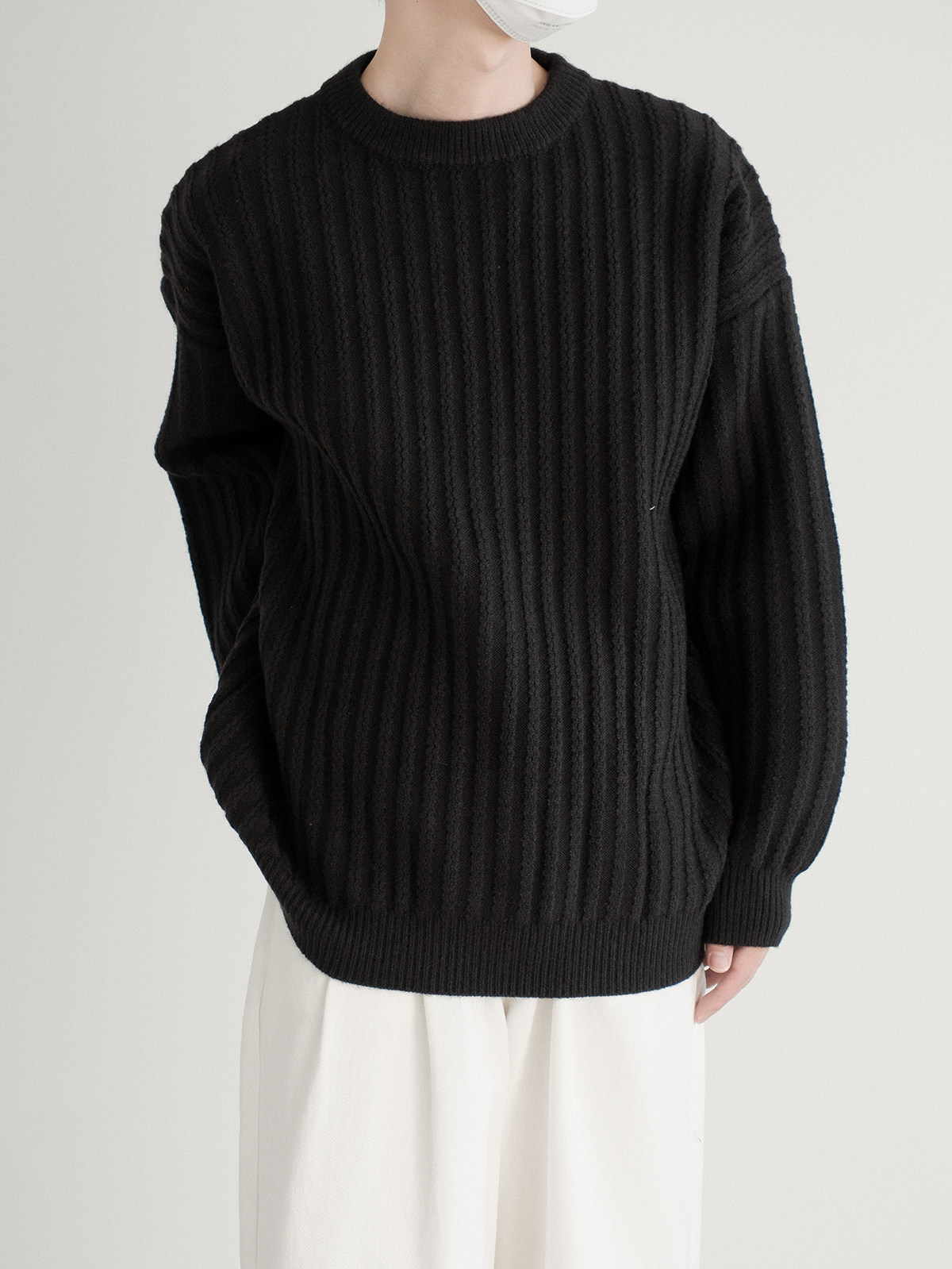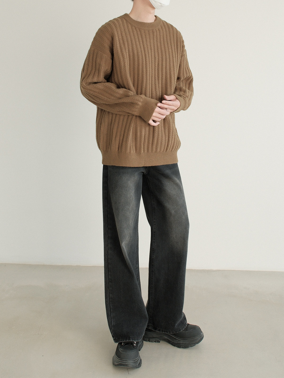 Dazo толстый солидный яма -полосатый краны с отходом из кранов мальчики с высоким уровнем холода холодного воздуха свободный текстура Сенсорный свитер