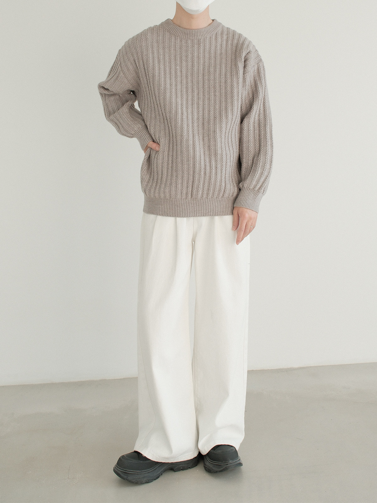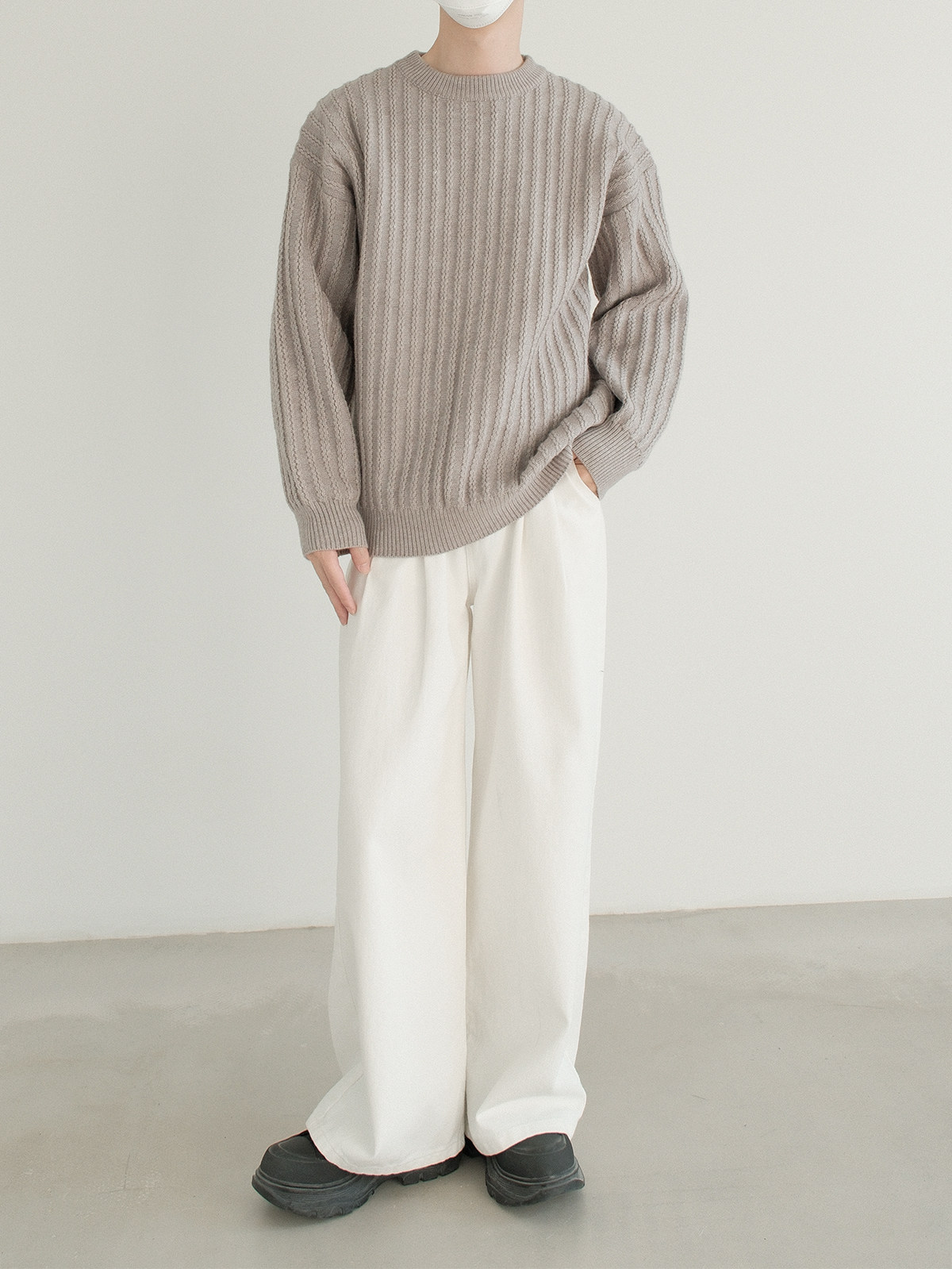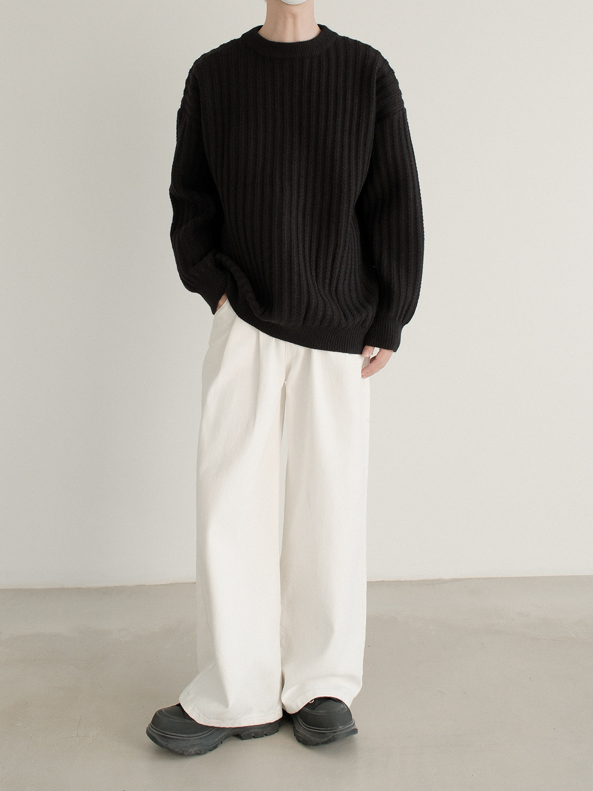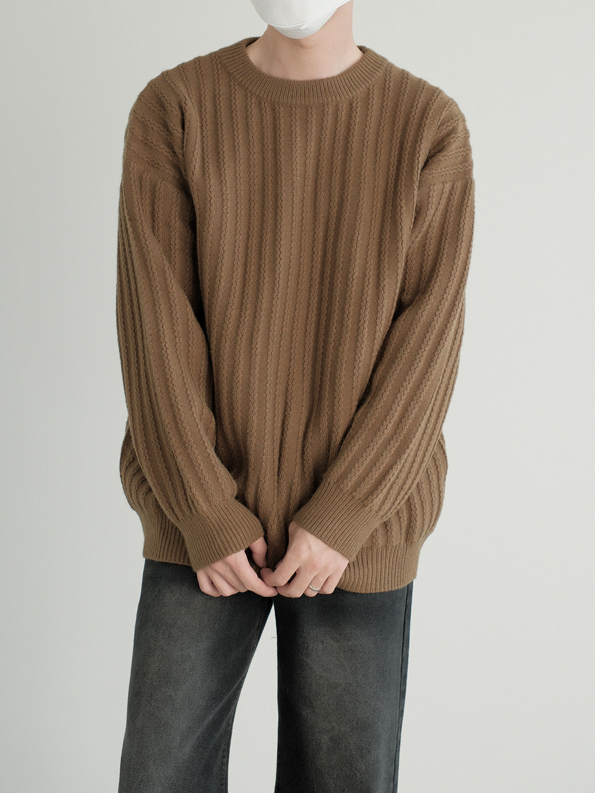 Dazo толстый солидный яма -полосатый краны с отходом из кранов мальчики с высоким уровнем холода холодного воздуха свободный текстура Сенсорный свитер