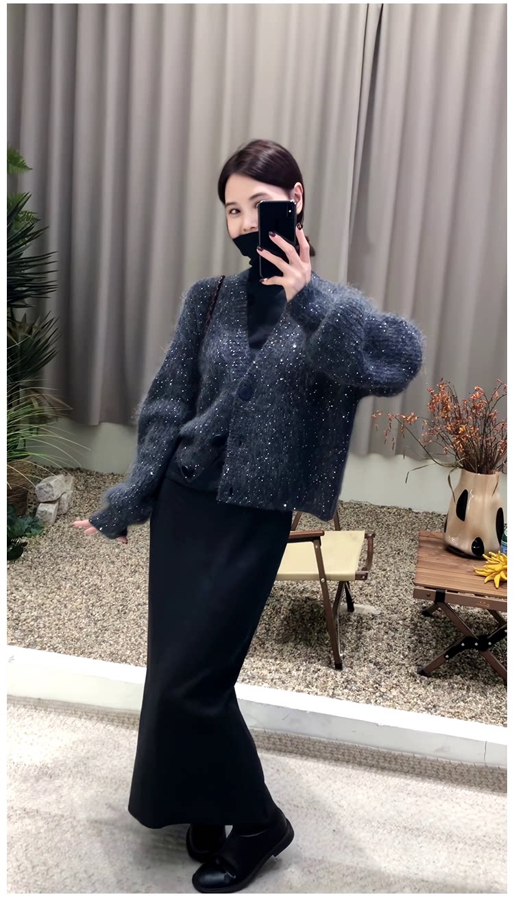 Блестки для ногтей, свитер, куртка, зимний трикотажный кардиган, V-образный вырез