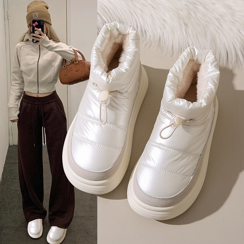 Зимние сапоги на платформе, водонепроницаемые нескользящие коньки с пухом, белая удерживающая тепло обувь