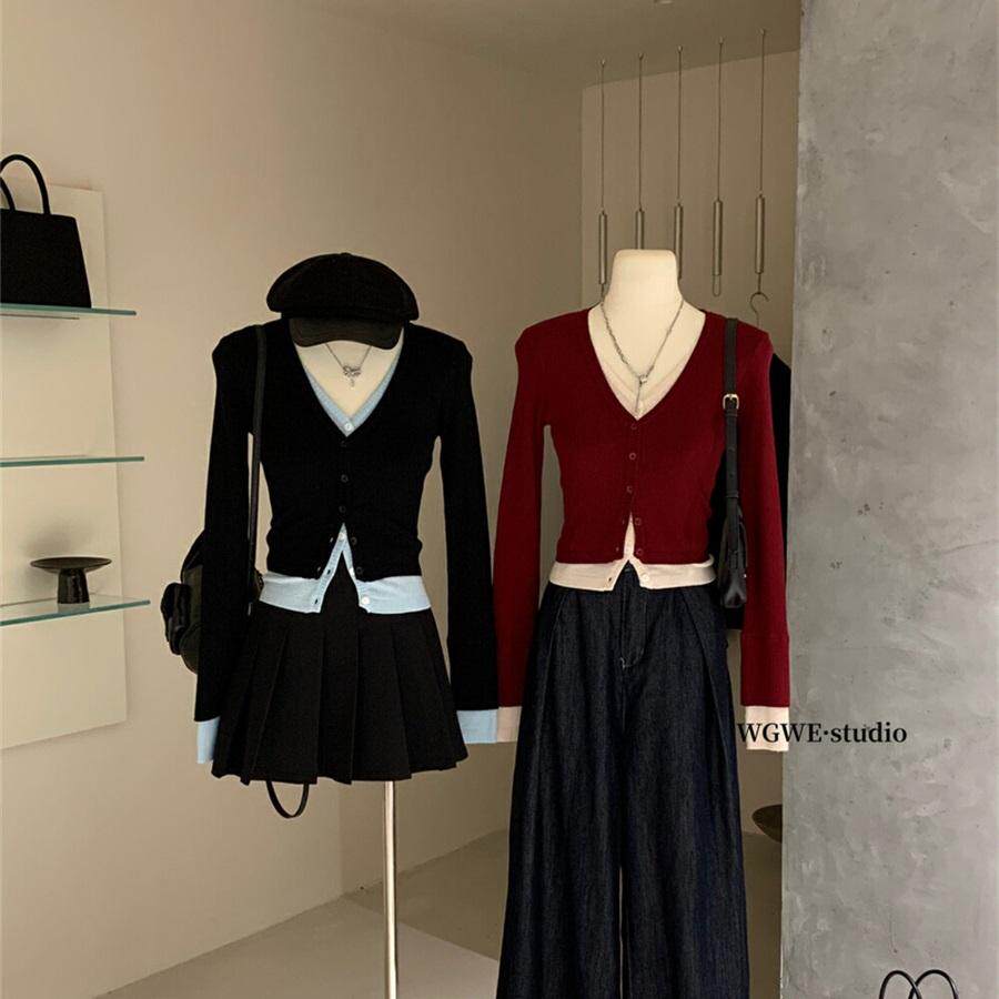 Эластичный дизайнерский комплект, короткий трикотажный демисезонный кардиган для отдыха, тренд сезона