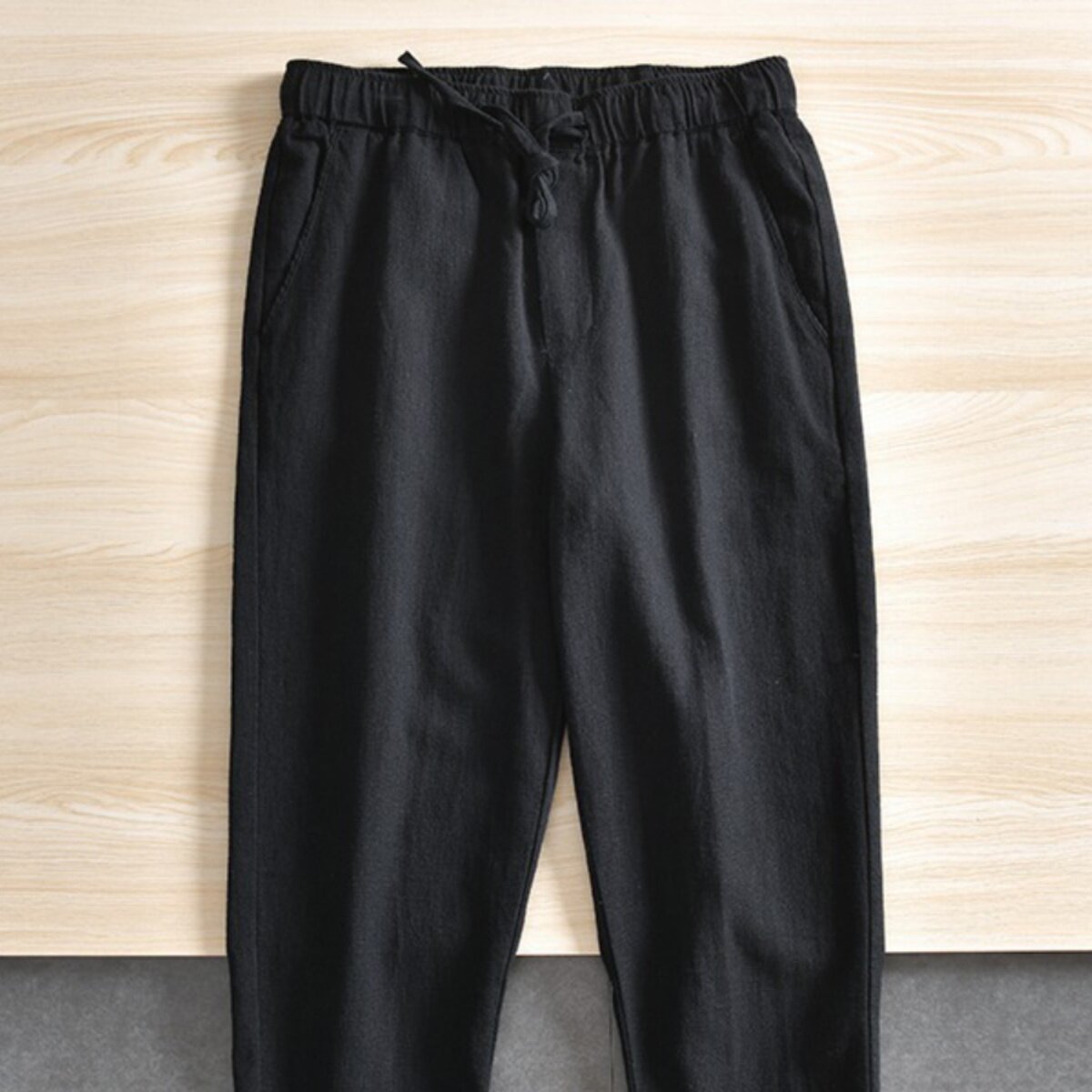 Дышащие комфортные летние тонкие штаны, из хлопка и льна, свободный прямой крой, эластичная талия