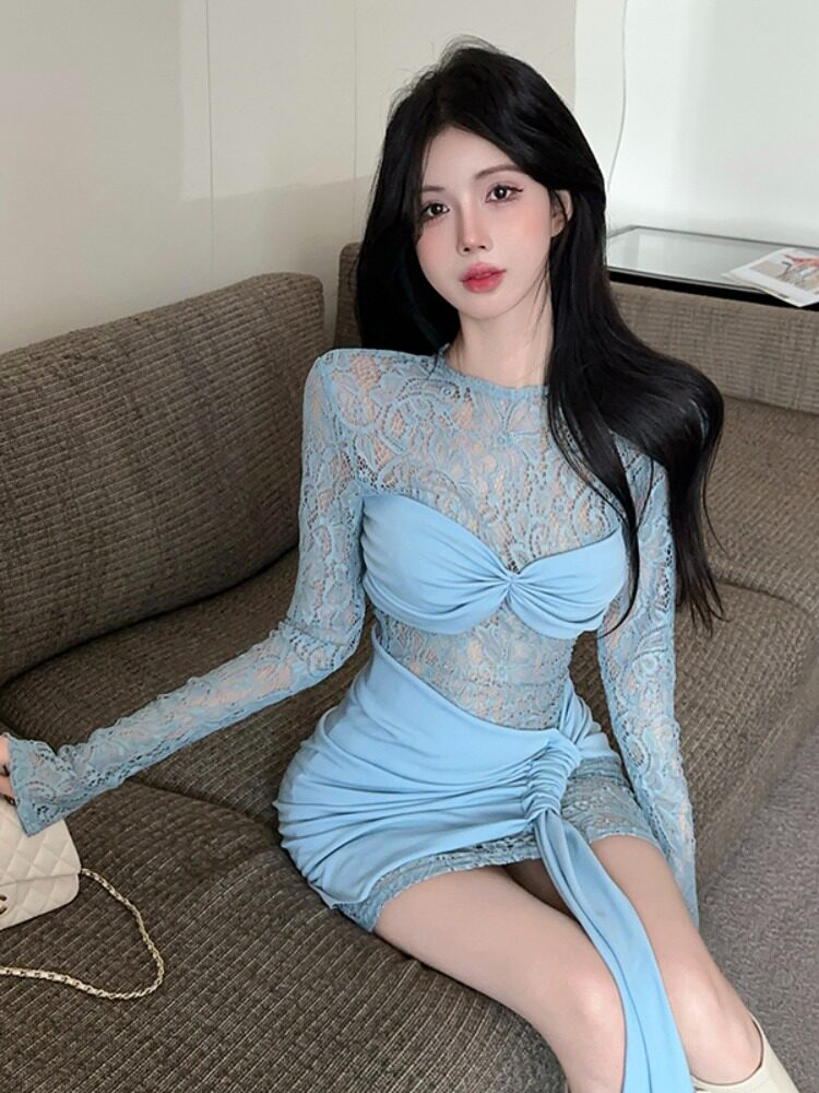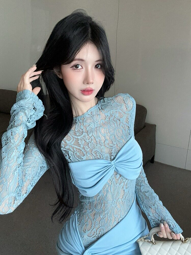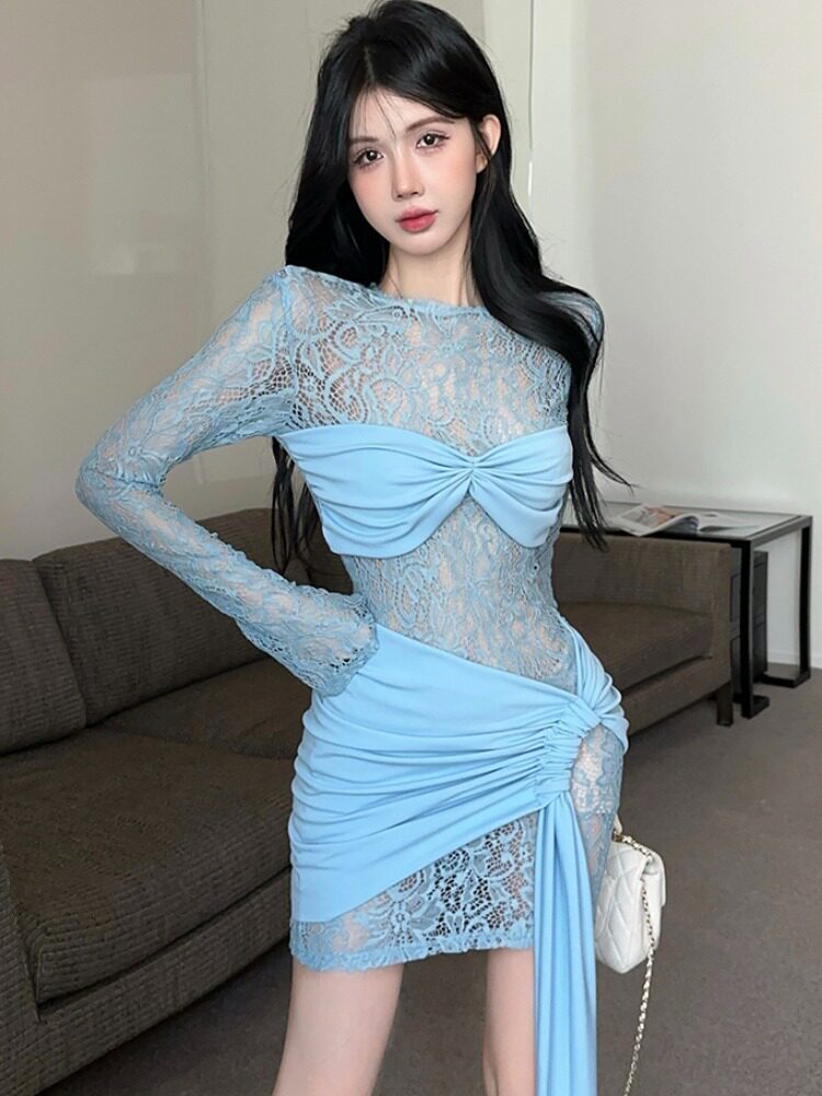 Дизайнерское кружевное сексуальное платье, тренд сезона, с акцентом на бедрах