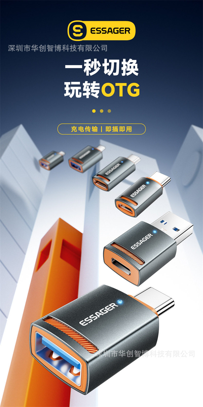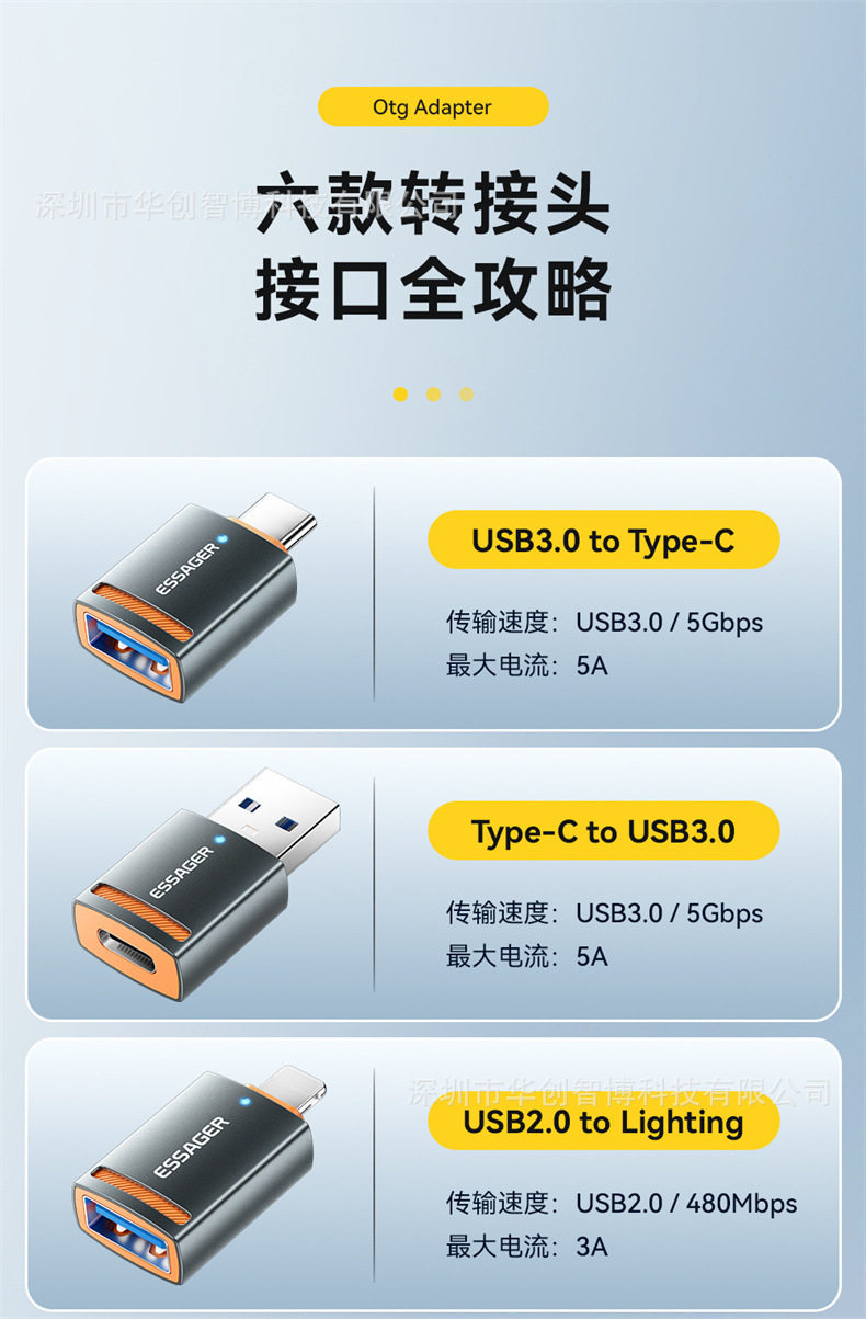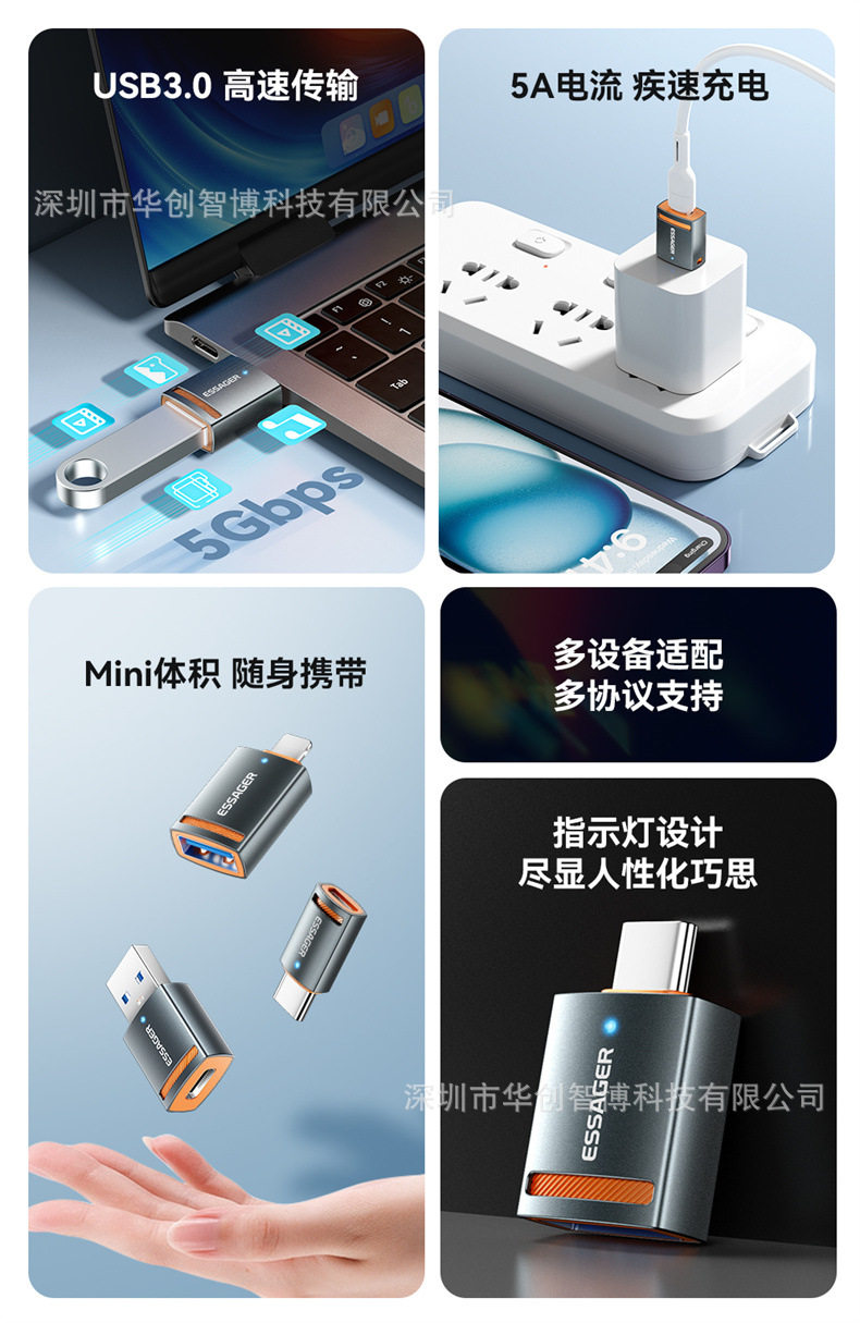 ESSAGER Адаптер серии тракторов OTG подходит для устройства для компьютера мобильного телефона USB3.0 Адаптер данных