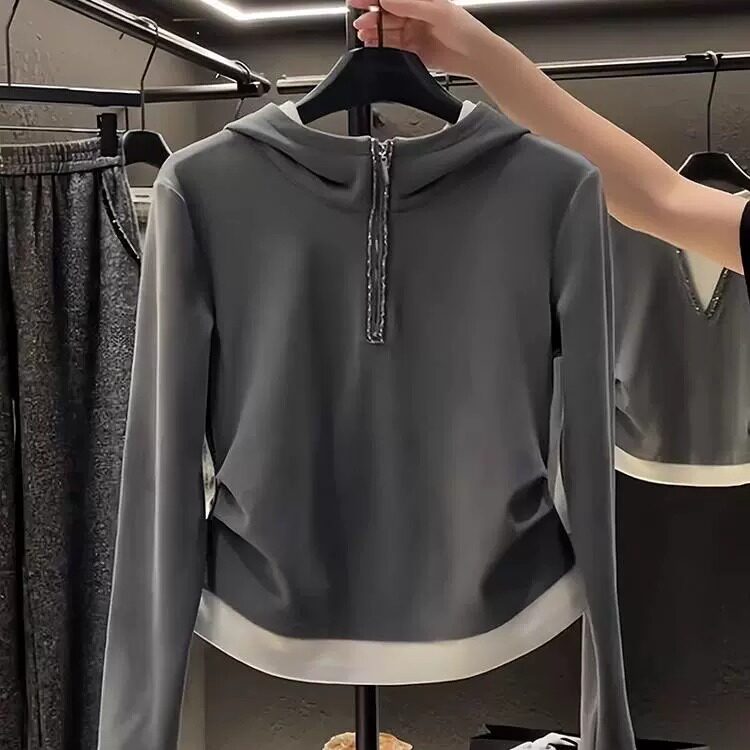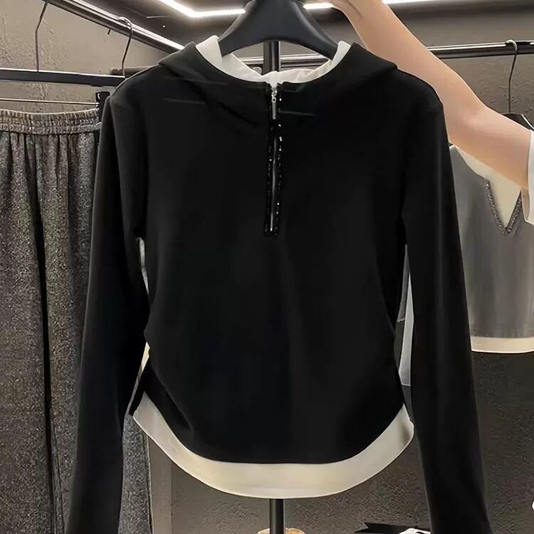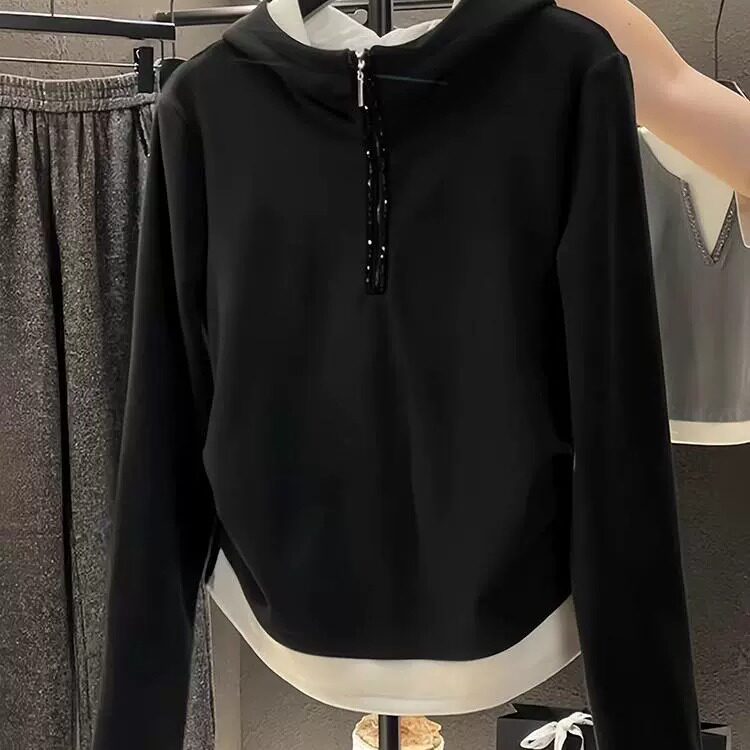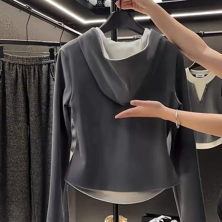 Комплект, демисезонная толстовка с капюшоном с молнией, модный дизайнерский универсальный лонгслив, большой размер, на молнии