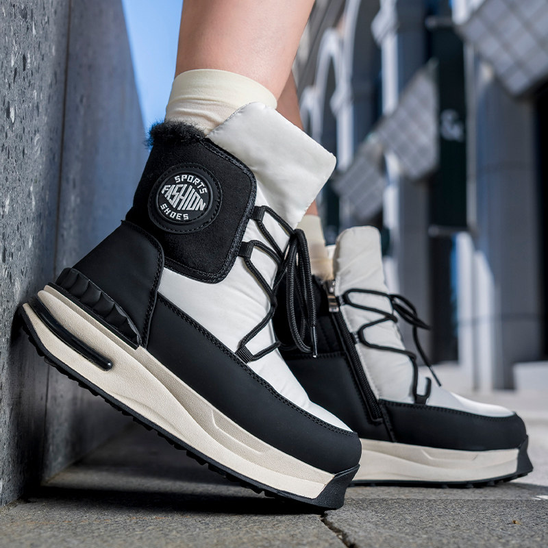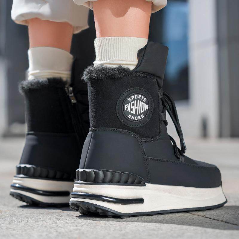 Удерживающие тепло флисовые нескользящие сапоги на платформе, модная альпинистская обувь