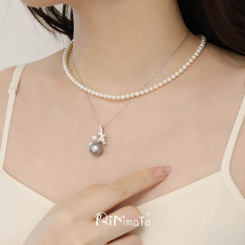 Ожерелье Rimmoto с морской водой и разноцветным таитянским жемчугом, кулон с цветком Авроры Акойя, серебро S925, универсальная пряжка