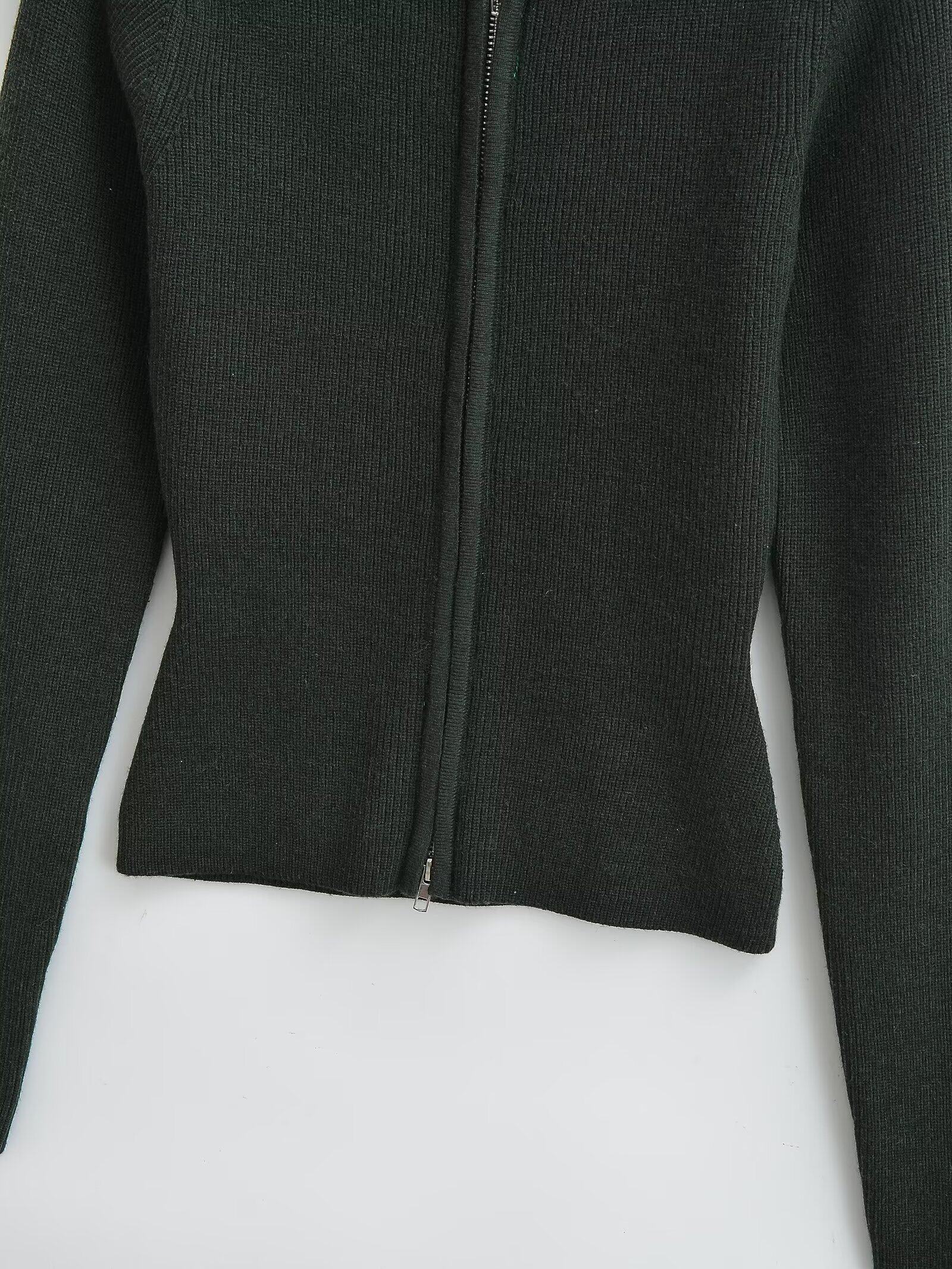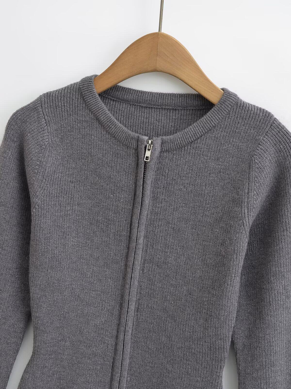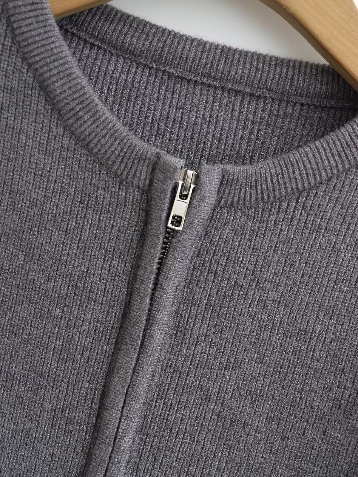Ретро лонгслив с круглым воротником с молнией, трикотажный свитер, европейский стиль