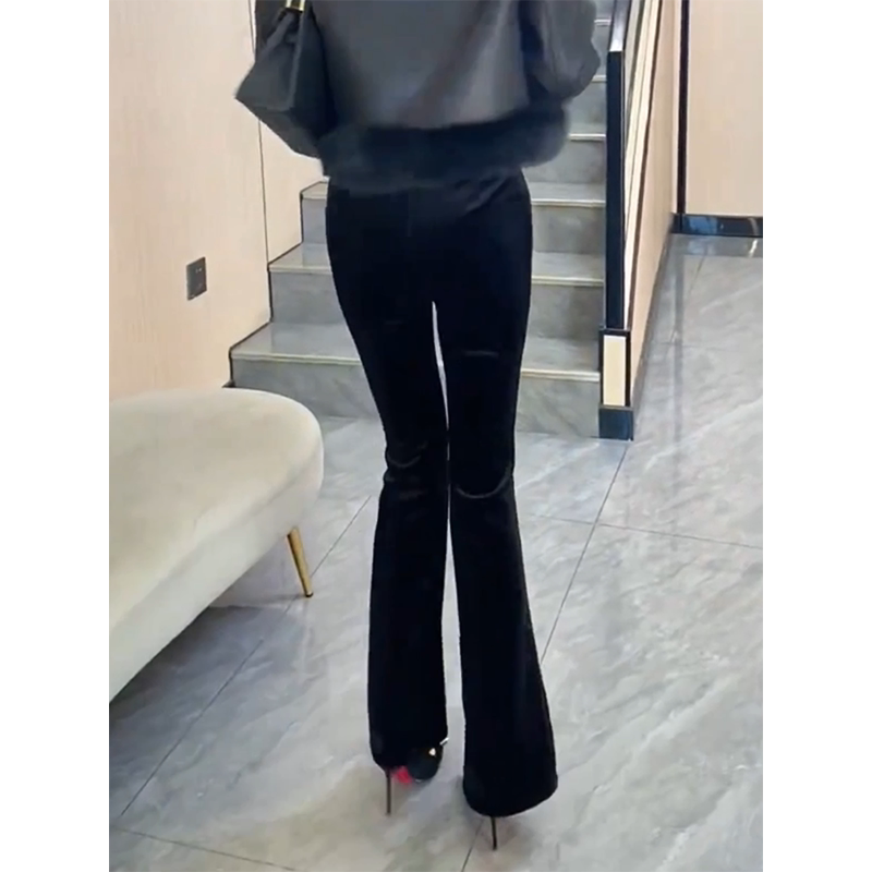 Дизайнерские черные блестки для ногтей, бархатные демисезонные штаны, тренд сезона, высокая талия, новая коллекция, по фигуре