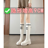 Белые демисезонные утепленные высокие эластичные высокие сапоги на платформе, подходит для подростков