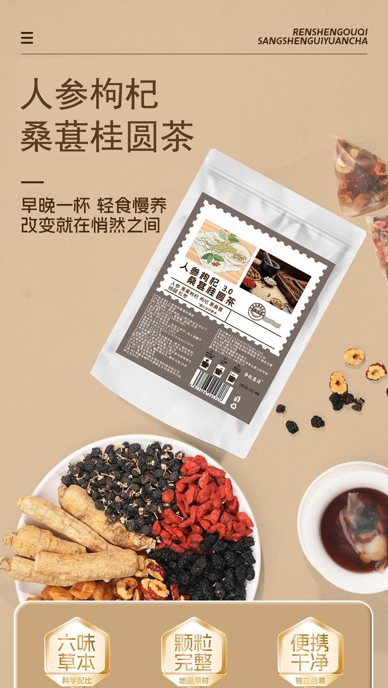 Малберри Волфберри Коричный чай с женьшень Группа чайный пакет Красный черный волчья варошка