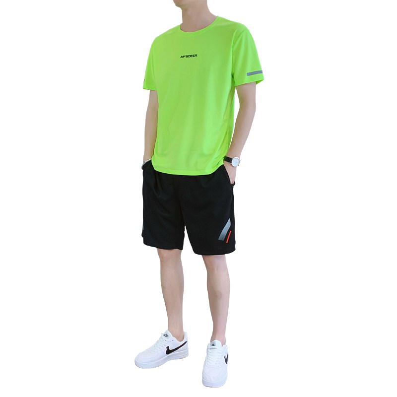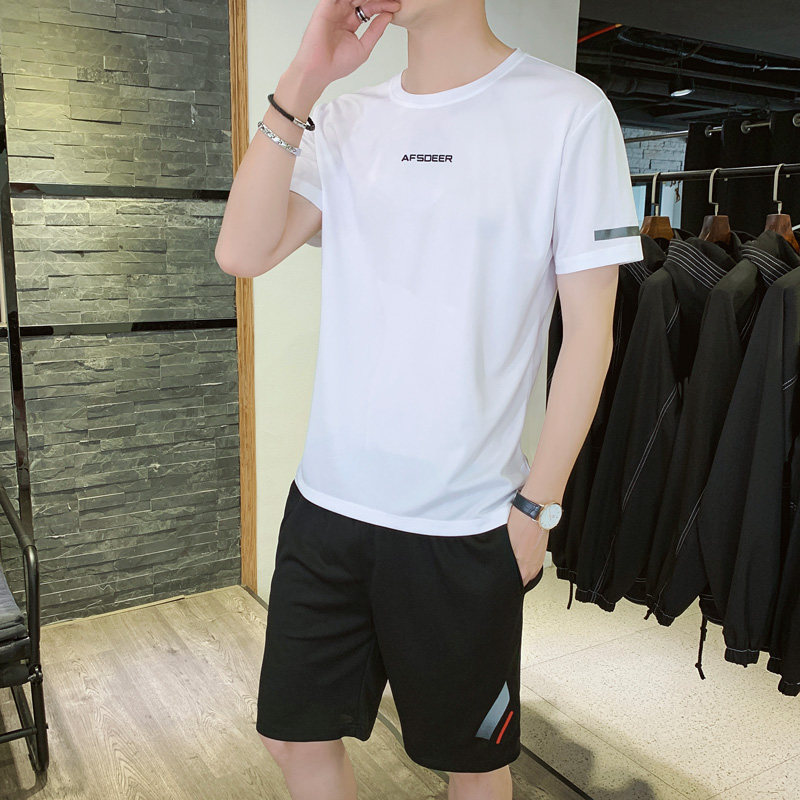 Мужской летний быстросохнущий трендовый спортивный костюм, тонкие шелковые шорты для отдыха, короткий рукав