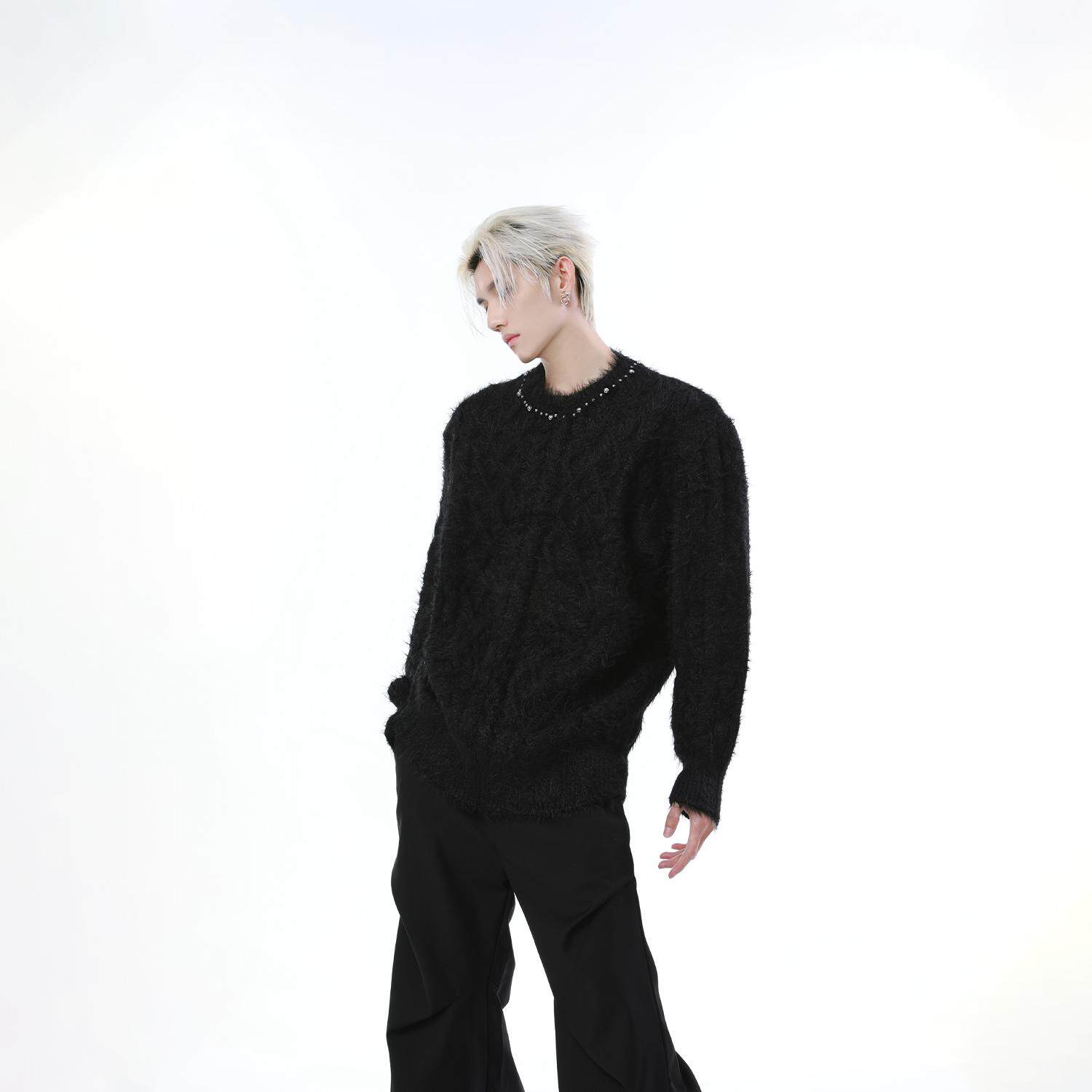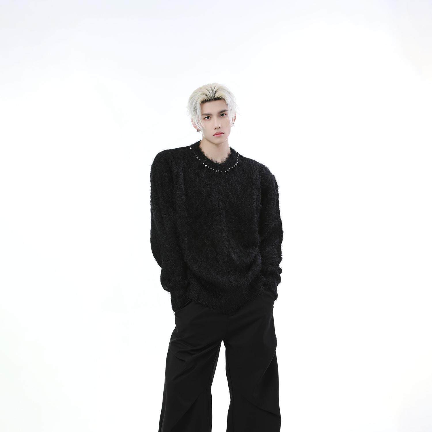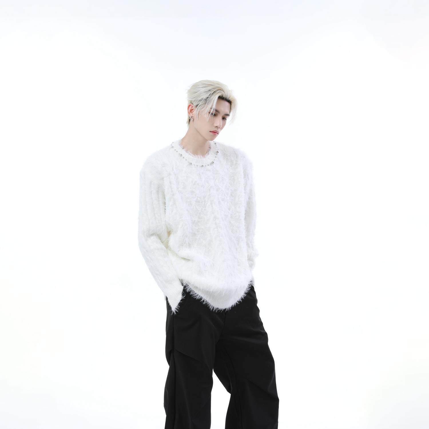 Металлический дизайнерский свитер с круглым воротником, трикотажная рубашка, тренд сезона, оверсайз