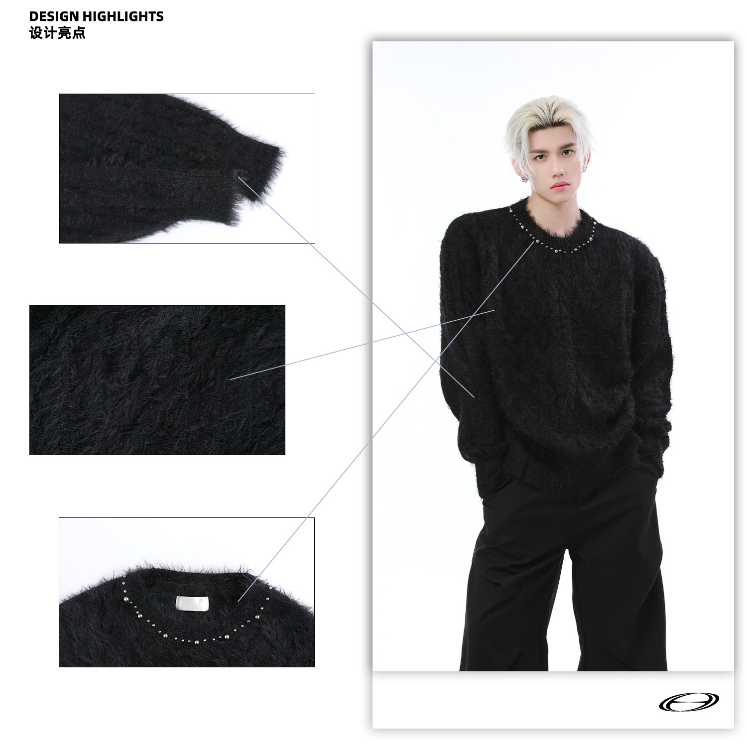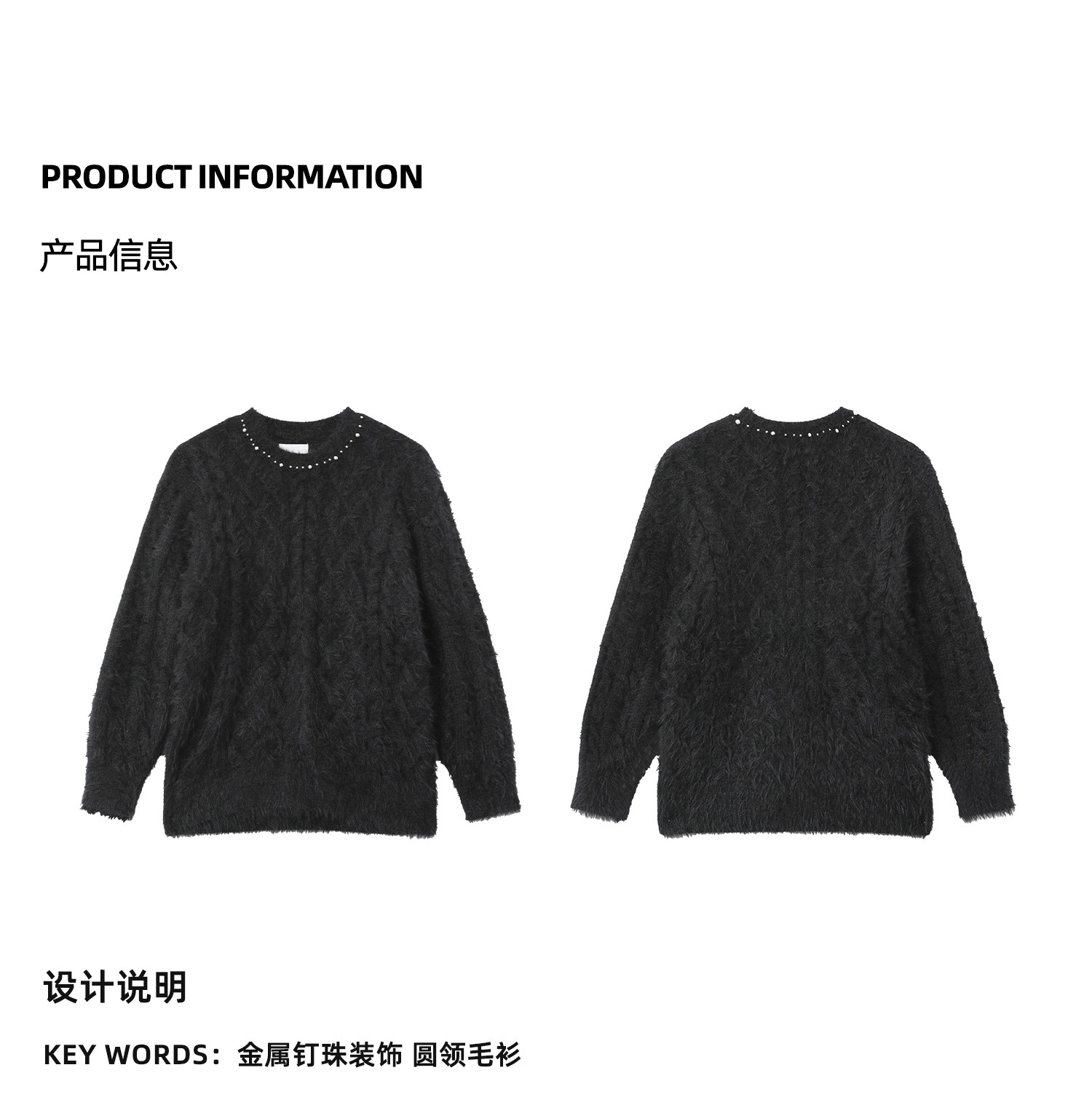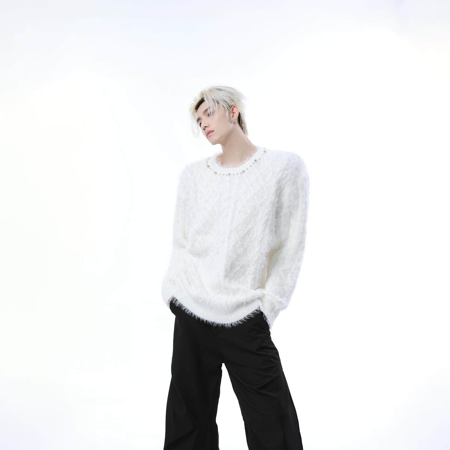 Металлический дизайнерский свитер с круглым воротником, трикотажная рубашка, тренд сезона, оверсайз