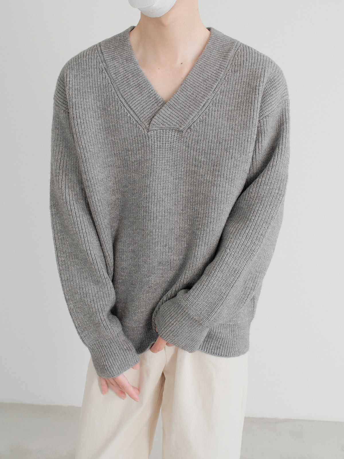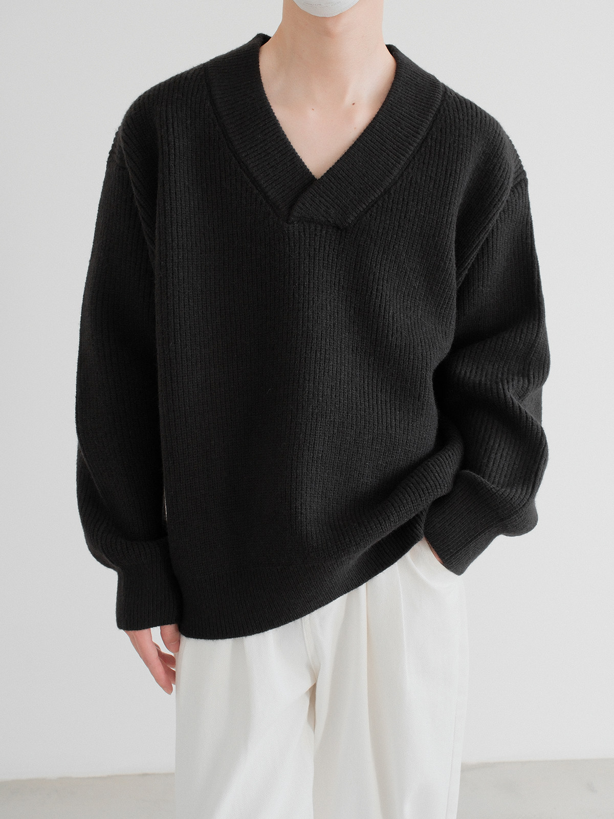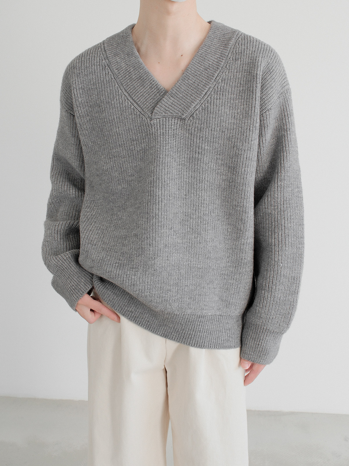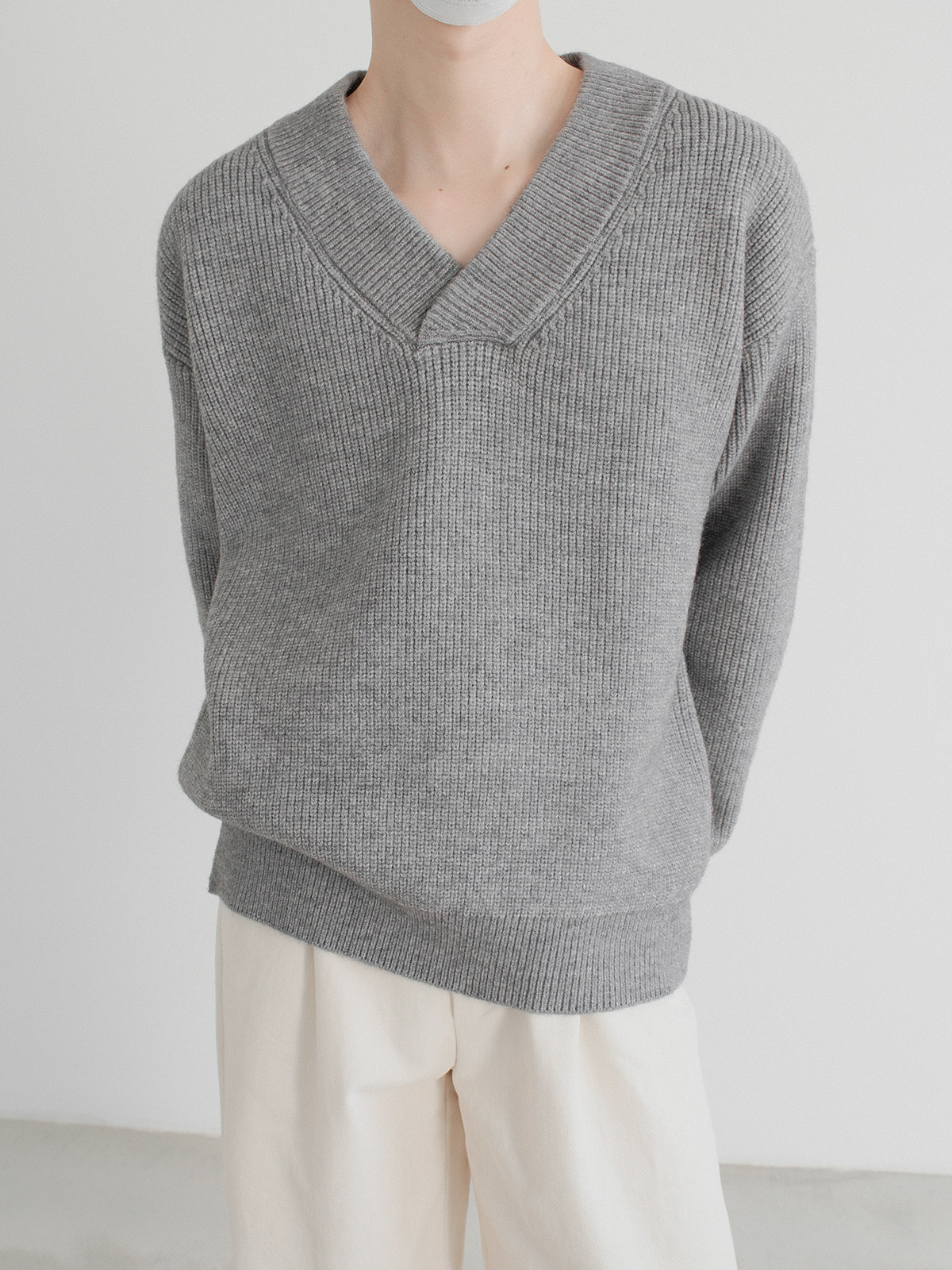 Небольшой дизайнерский свитер, трикотажная демисезонная утепленный лонгслив, V-образный вырез, оверсайз, изысканный стиль