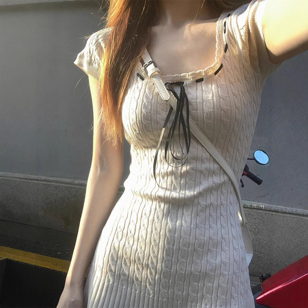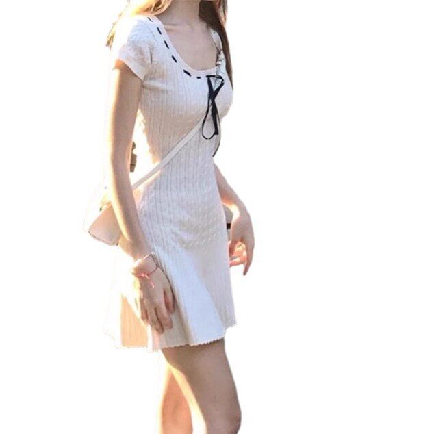 Милое летнее платье, приталенная юбка, квадратный вырез, яркий броский стиль