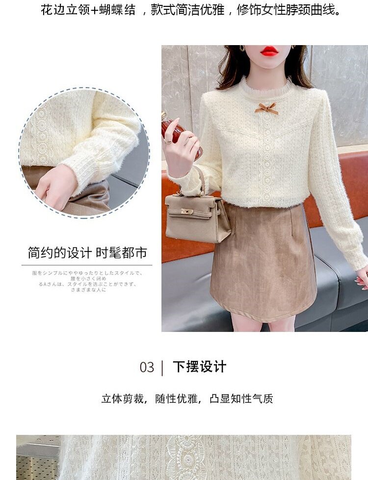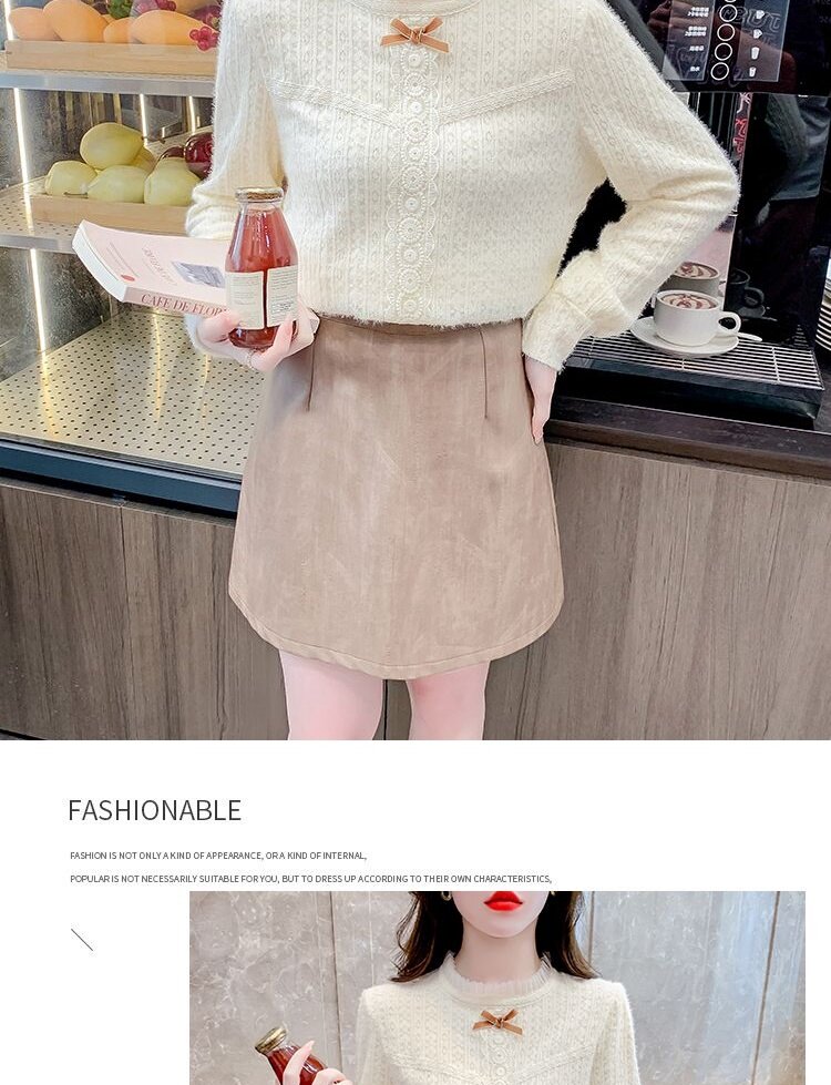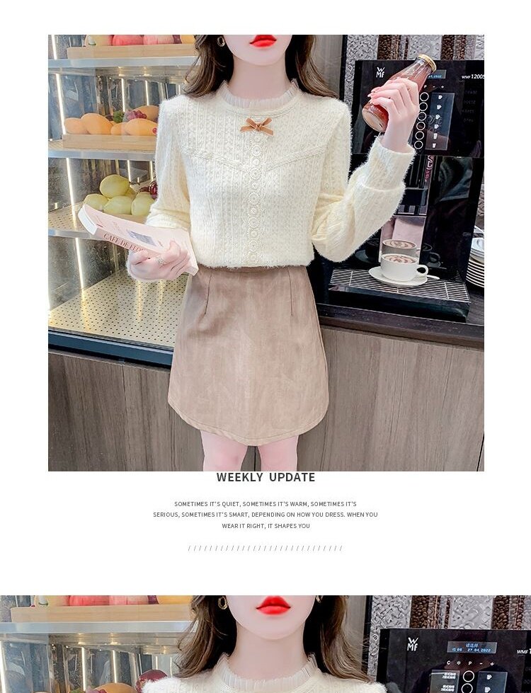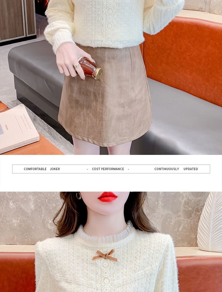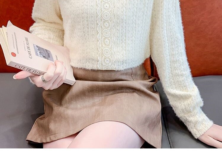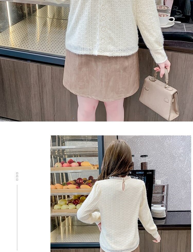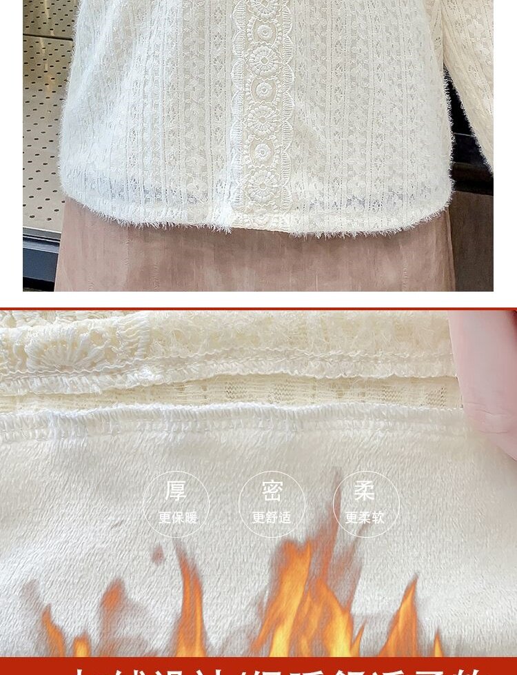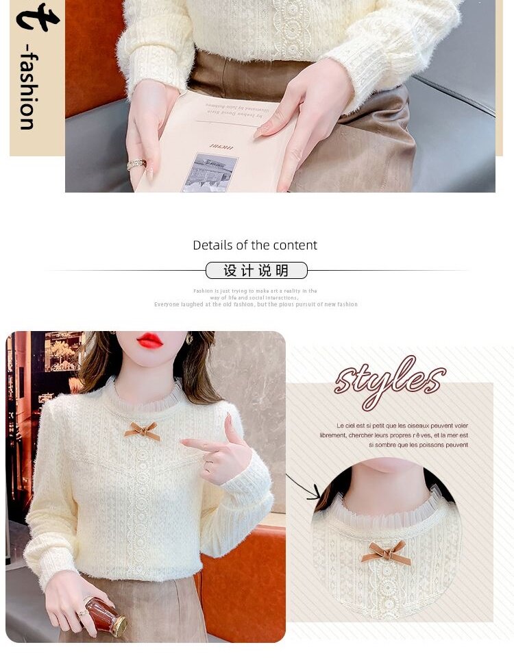 Утепленный демисезонный кружевной лонгслив с бантиком, в корейском стиле